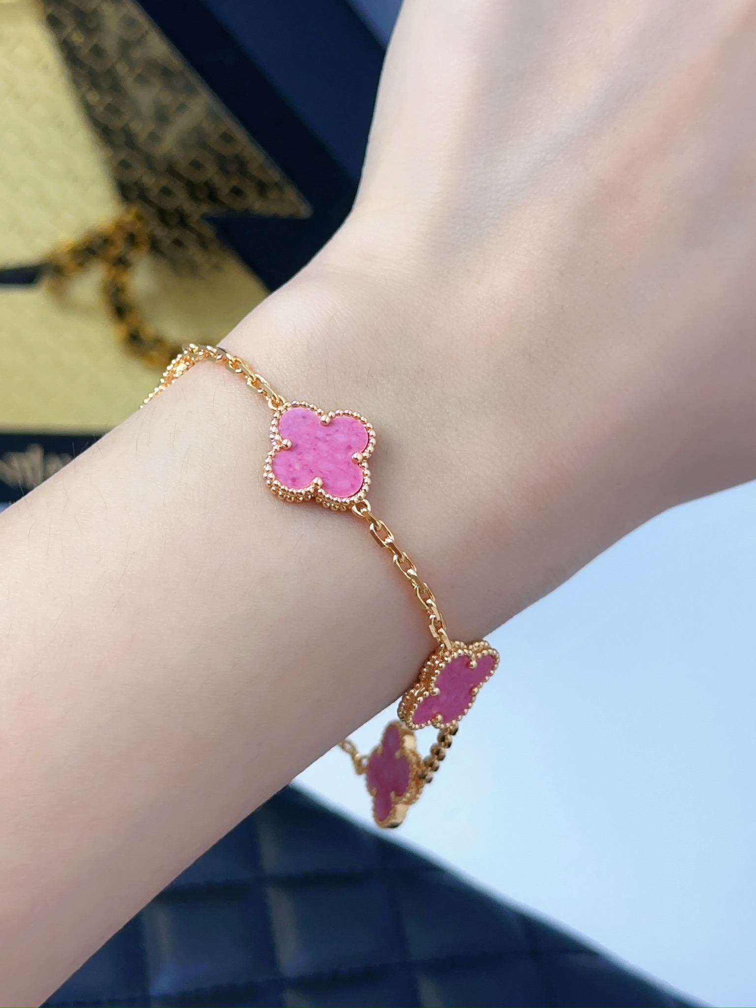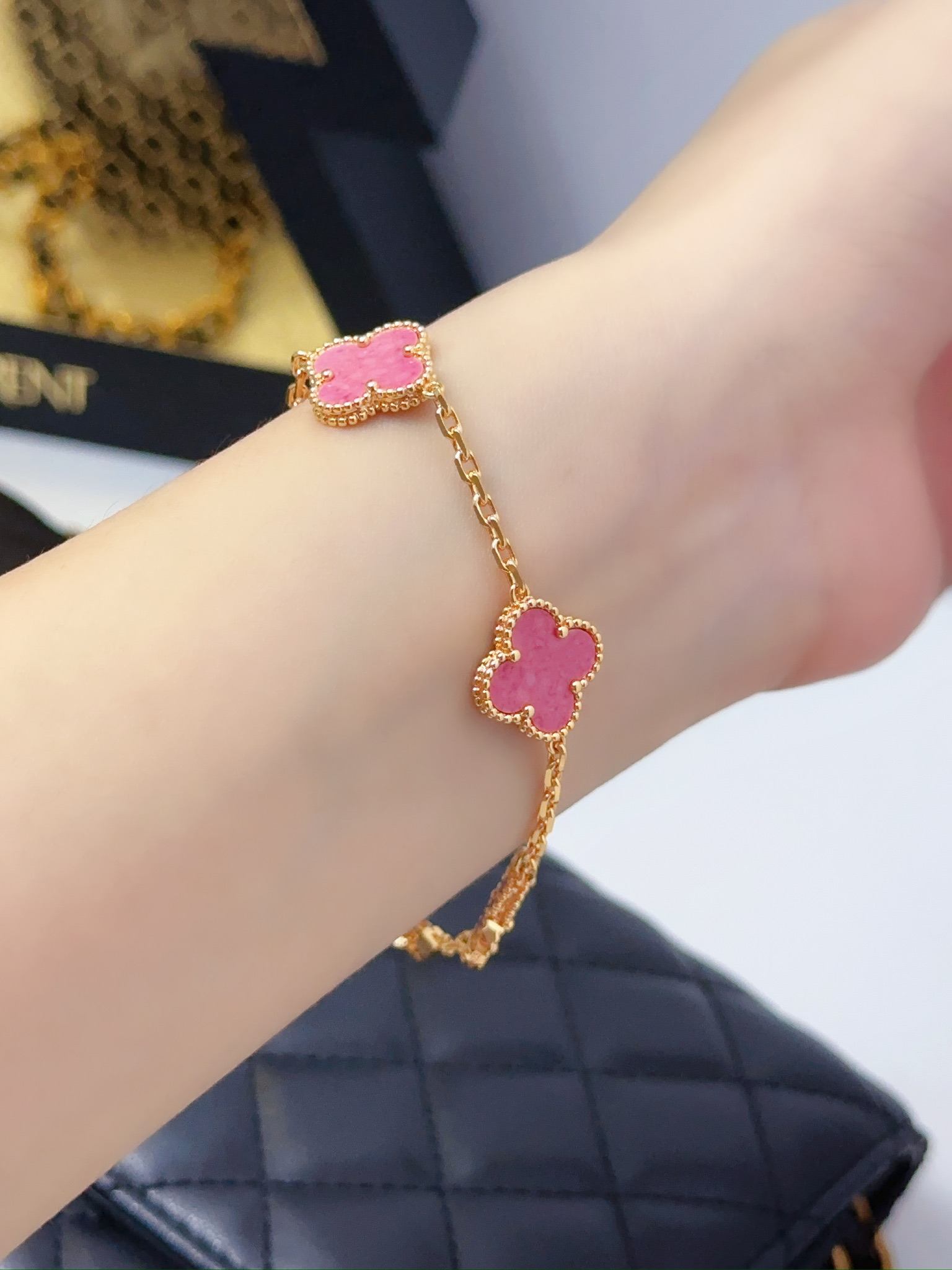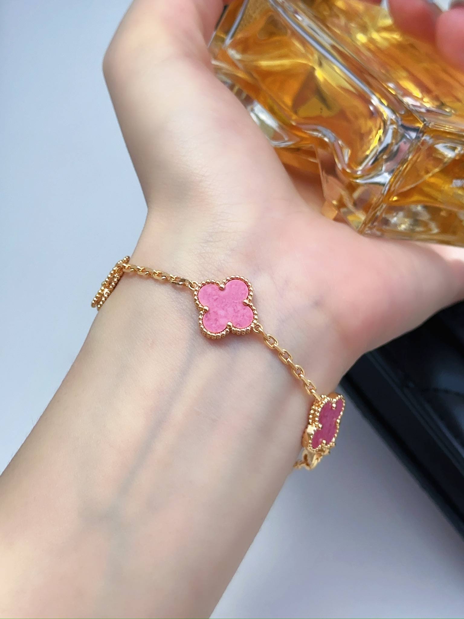 Rose Stone Diamond Rose Gold Five Flower Bracelet