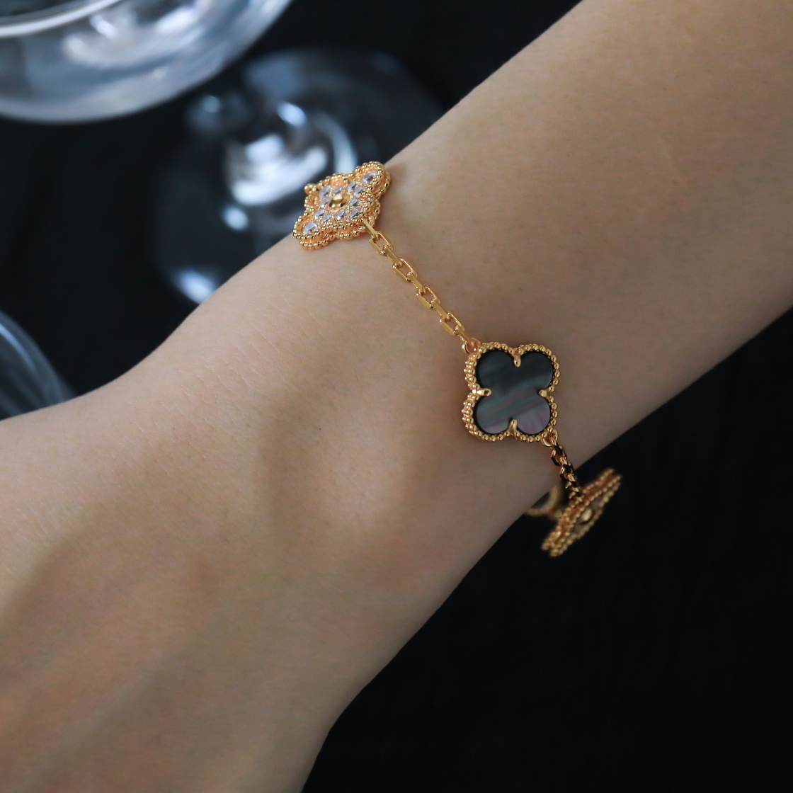 Vintage Alhambra bracelet with diamond gray between