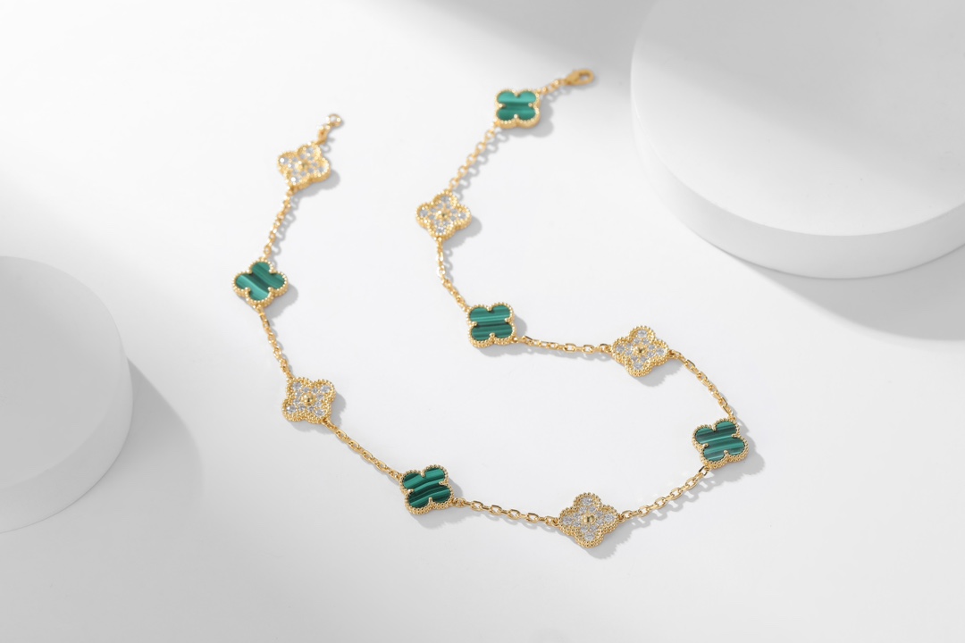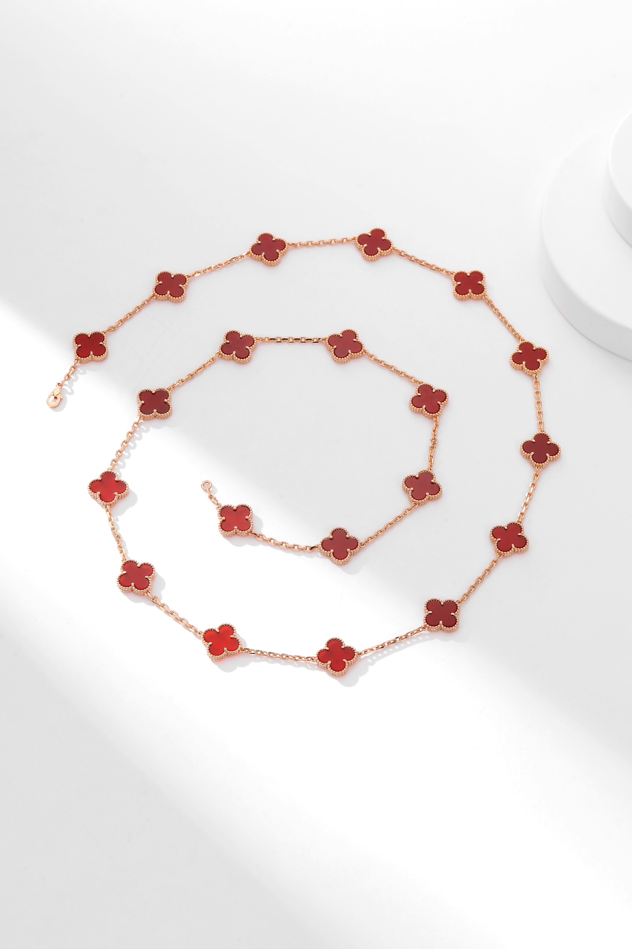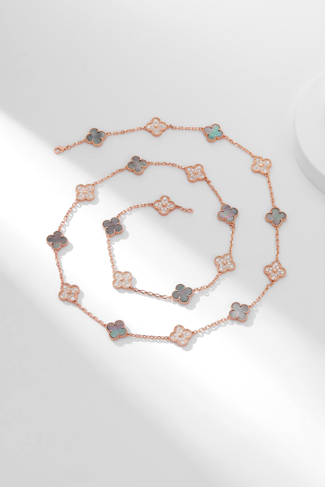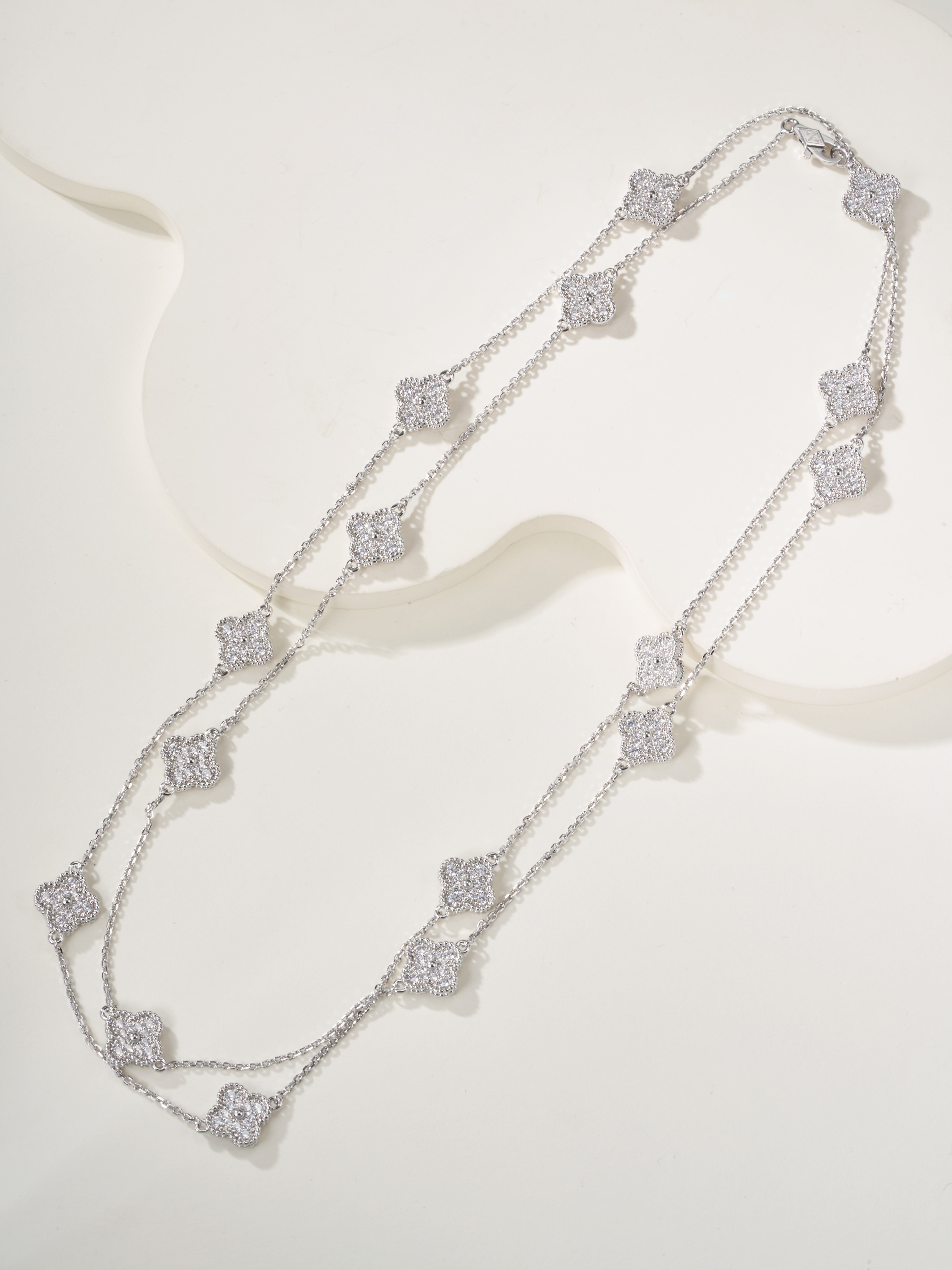 16 pattern diamond studded white gold Sweet Alhambra long necklace