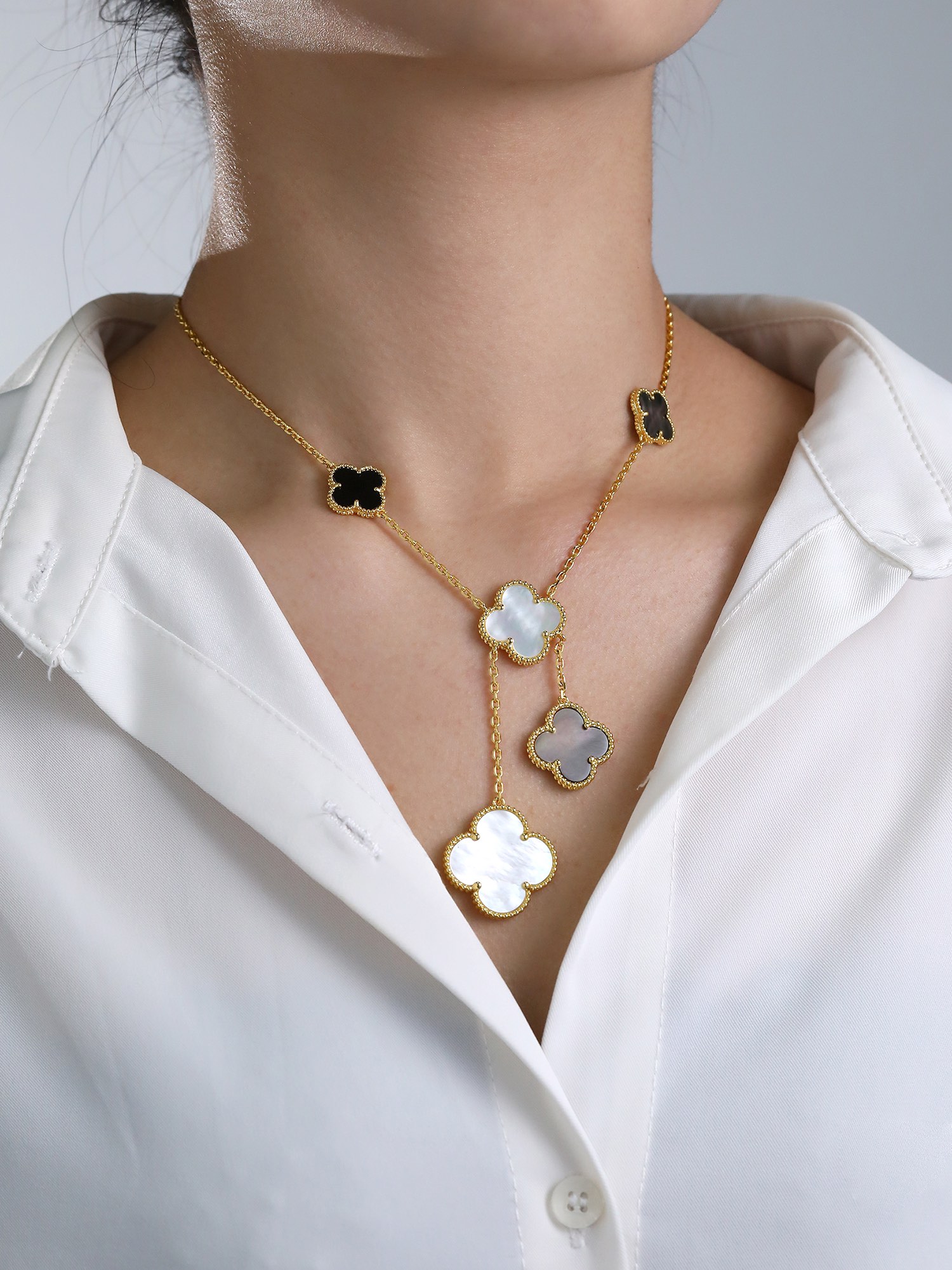 Magic Alhambra Six Flower White Grey Black Shell Irregular Necklace