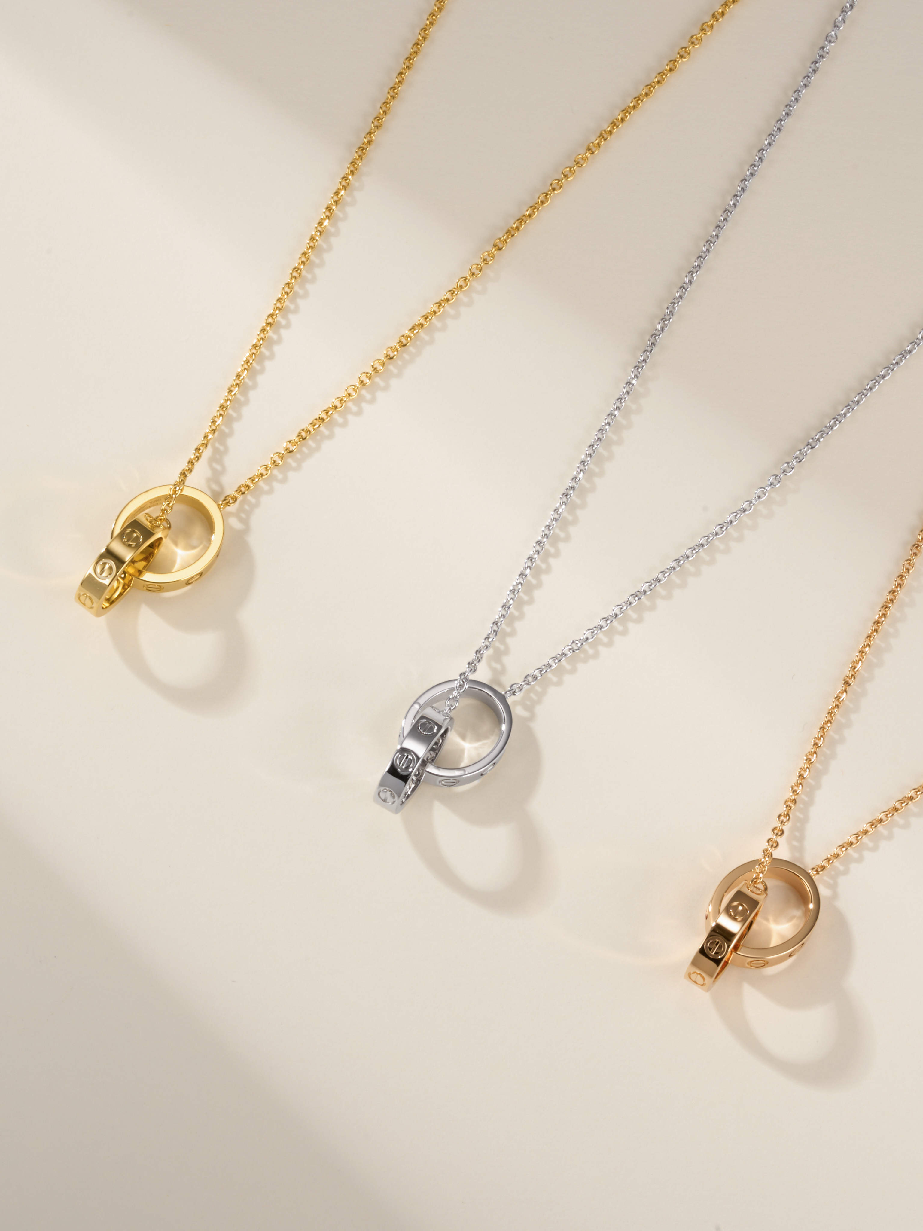 Double ring diamond free necklace