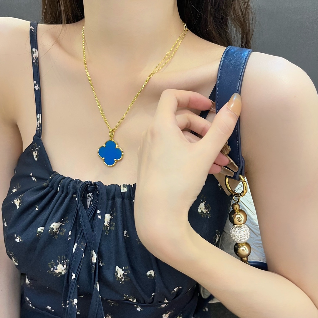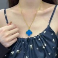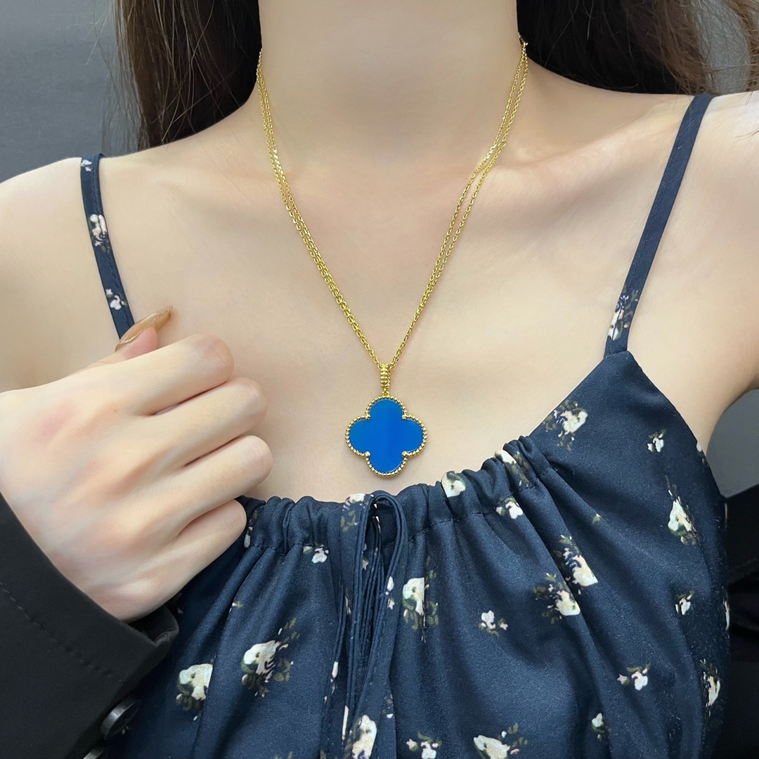 Alhambra Four Leaf Clover Blue Jadeite Large Necklace