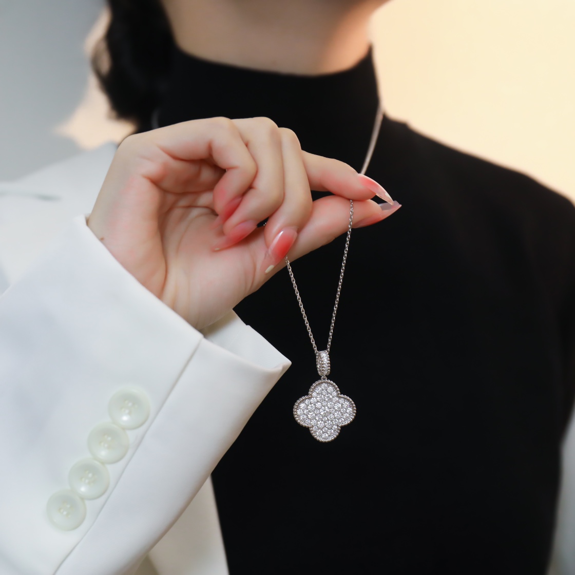 Alhambra Large Clover Full Diamond Necklace