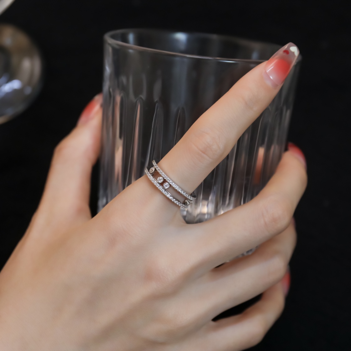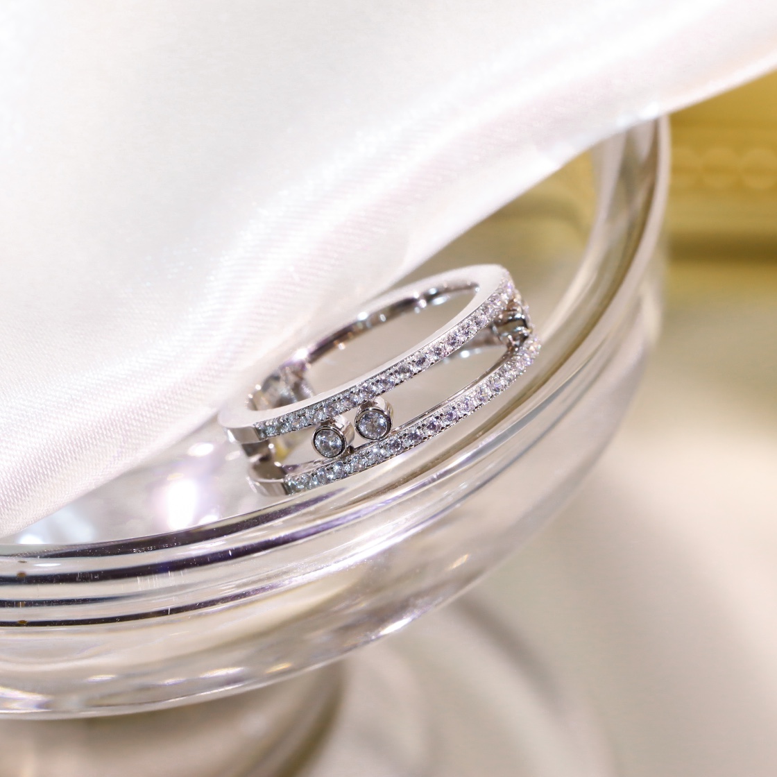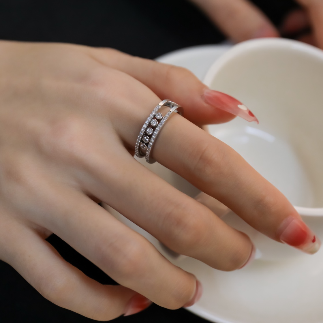 Messika 5-Diamond Sliding Wide Slot Necklace Ring (Color White)