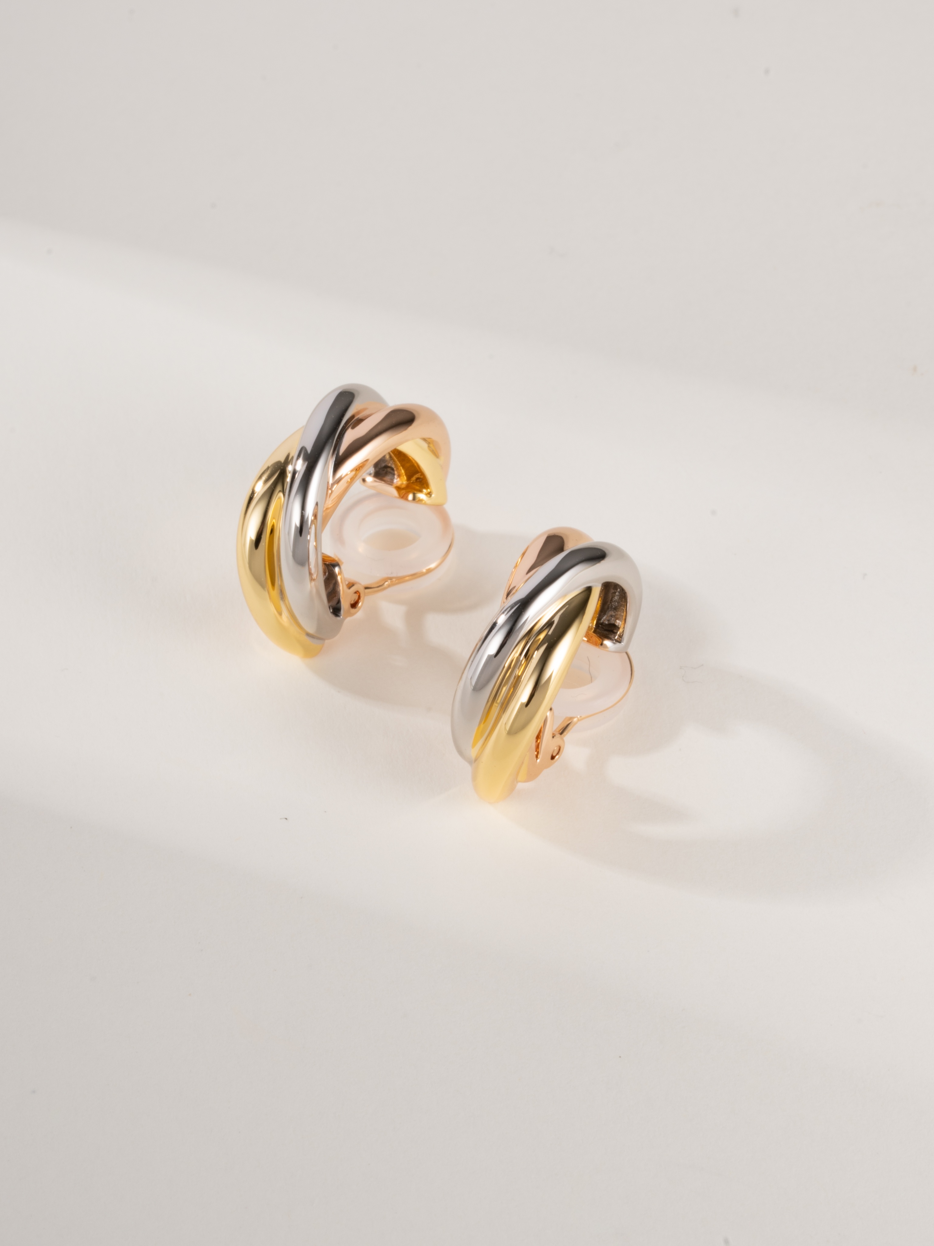 Trinity tricolor ring earrings without diamonds(Ear clip style )