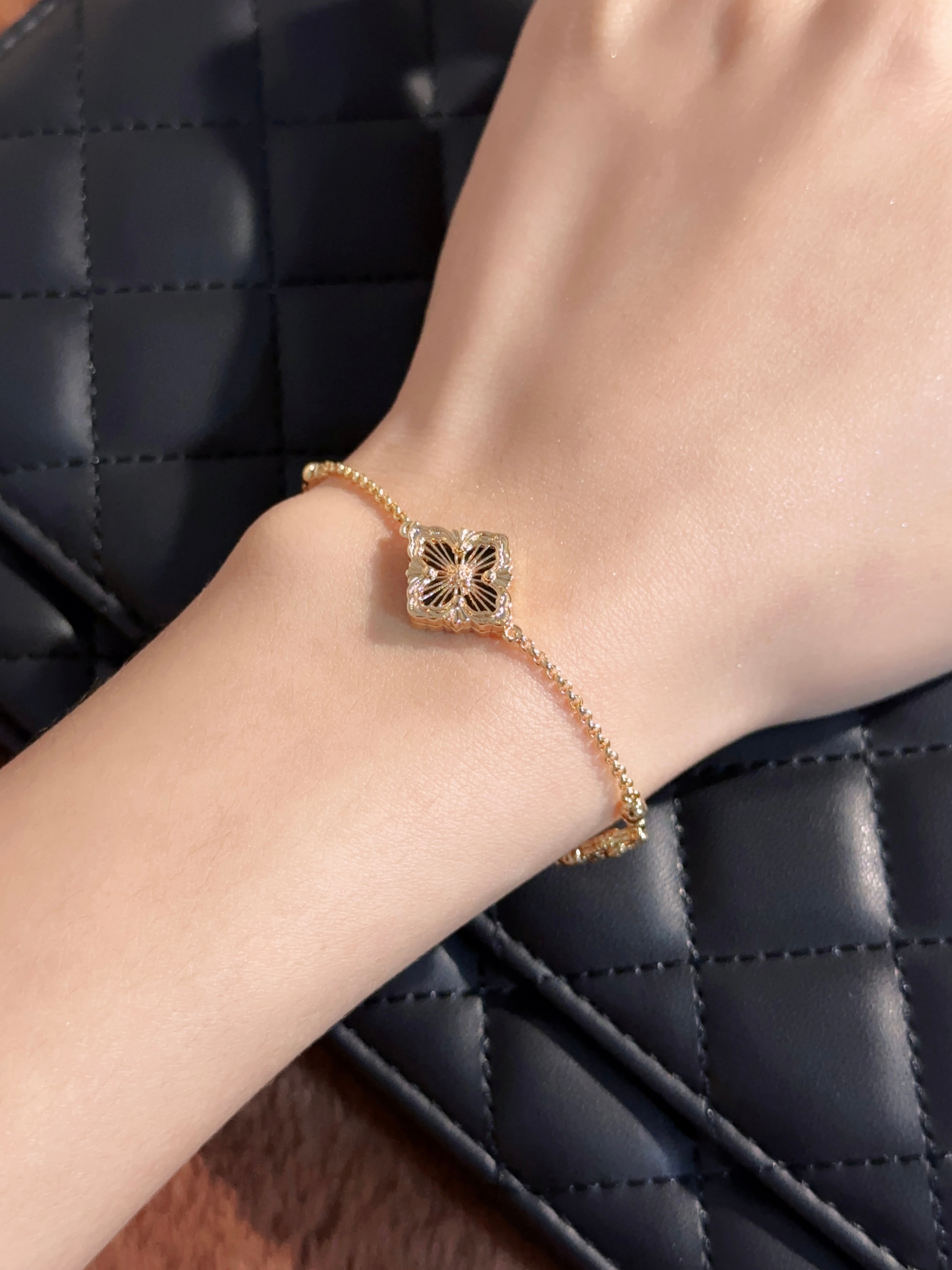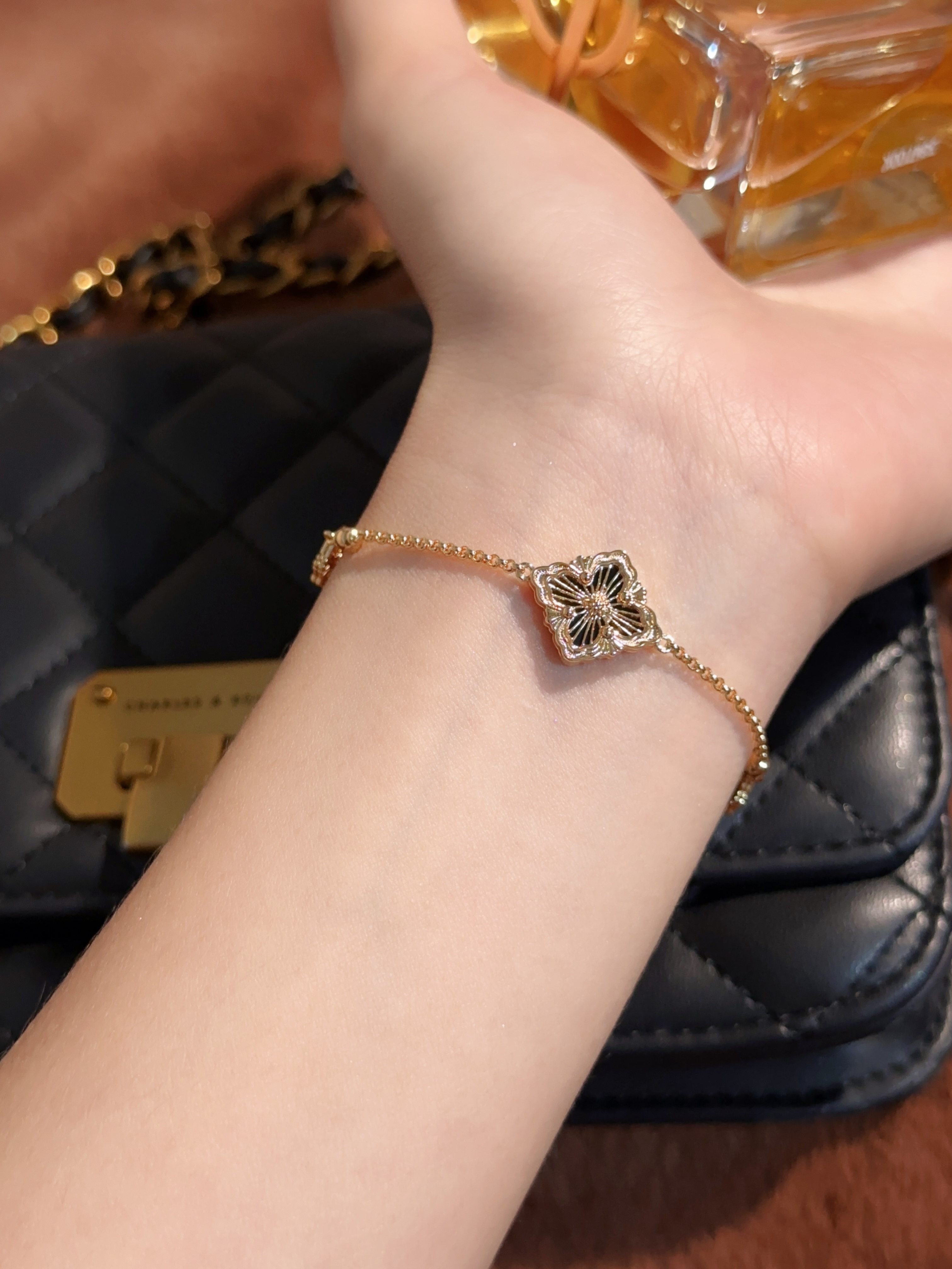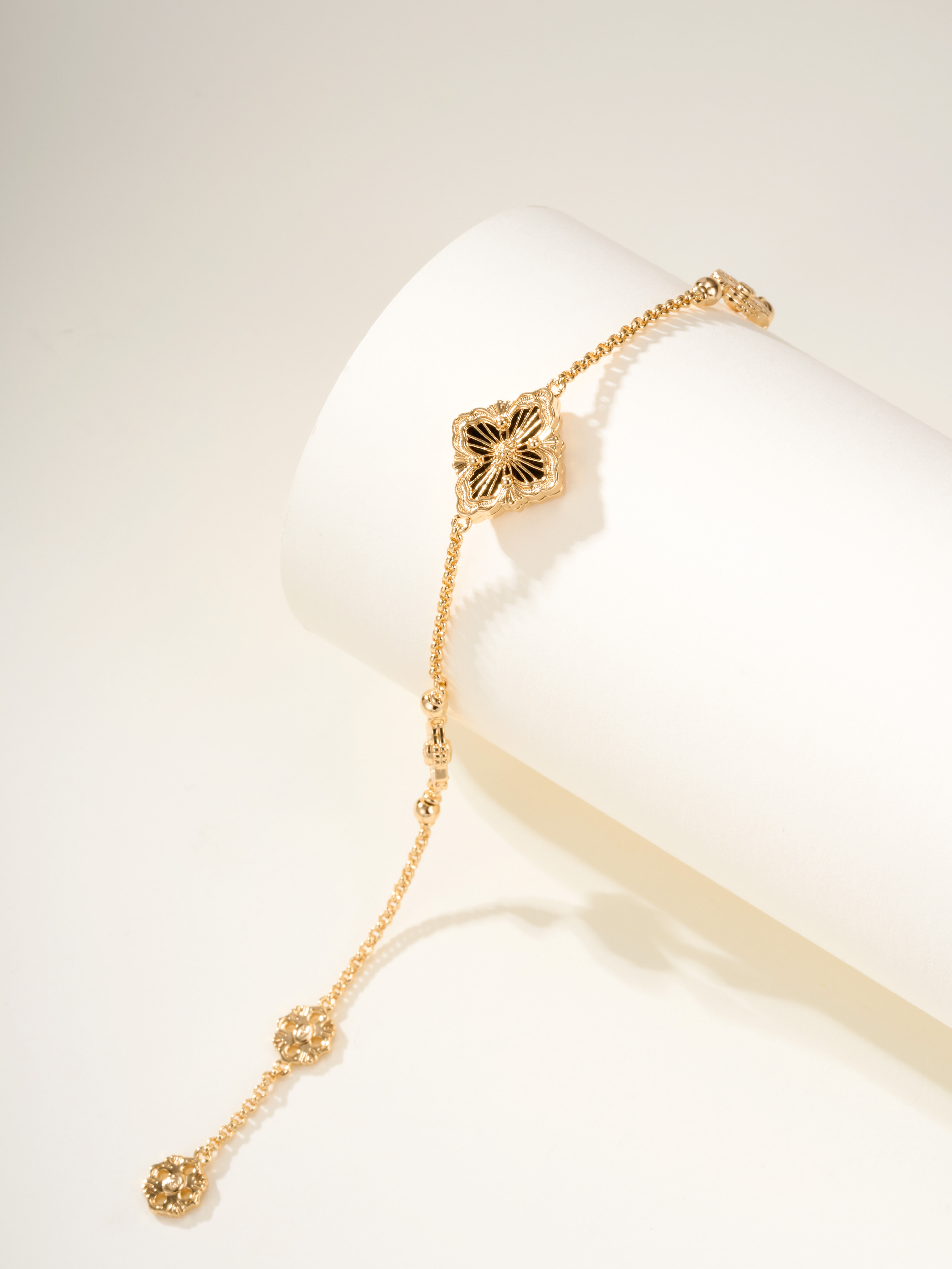 BU Opera Series Gold 3 Pattern Single Flower Agate Black Bracelet (Small)