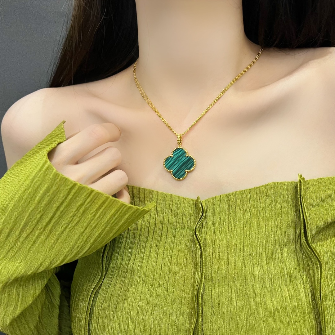 Alhambra Four Leaf Clover Peacock Stone Large Necklace