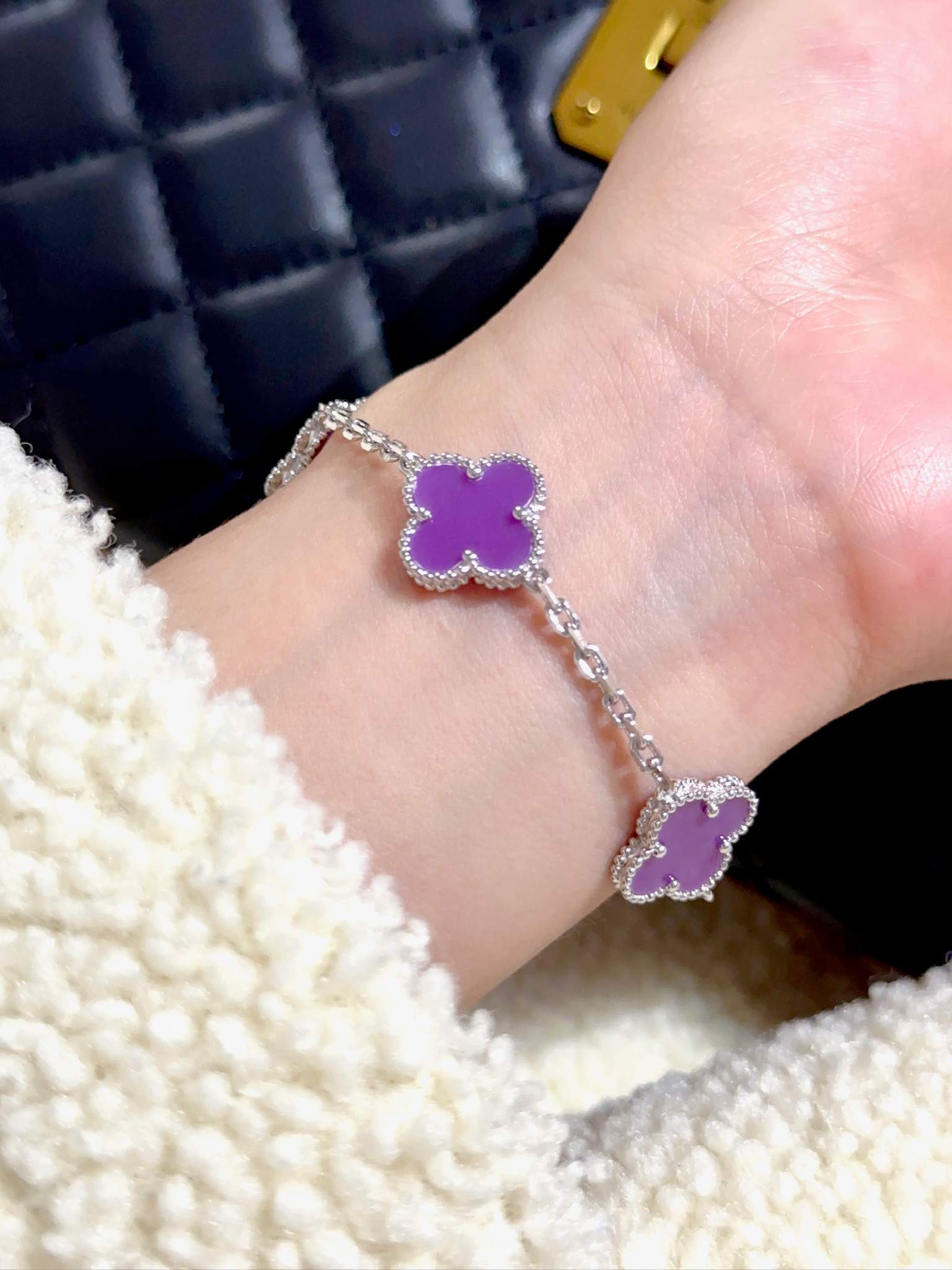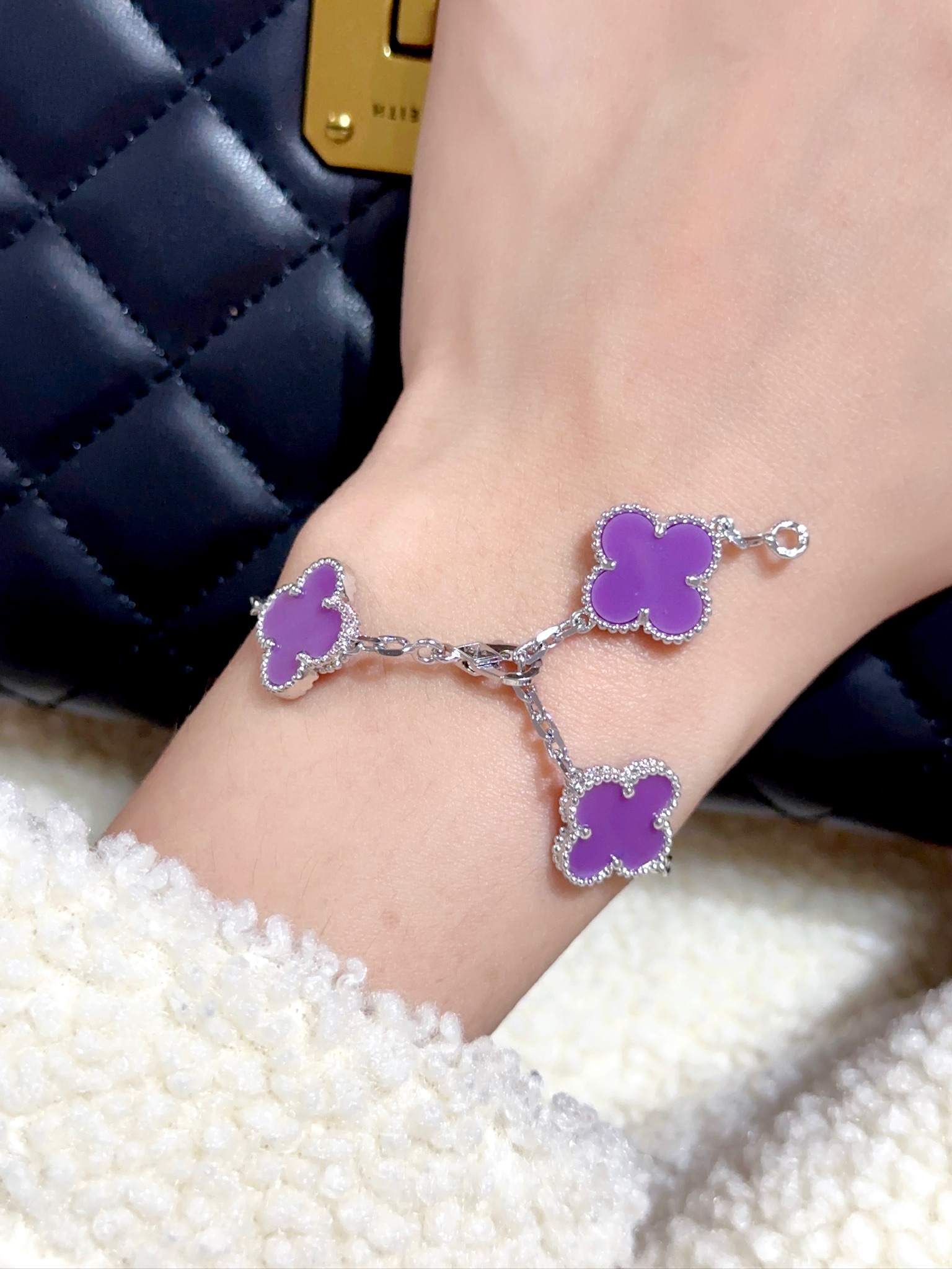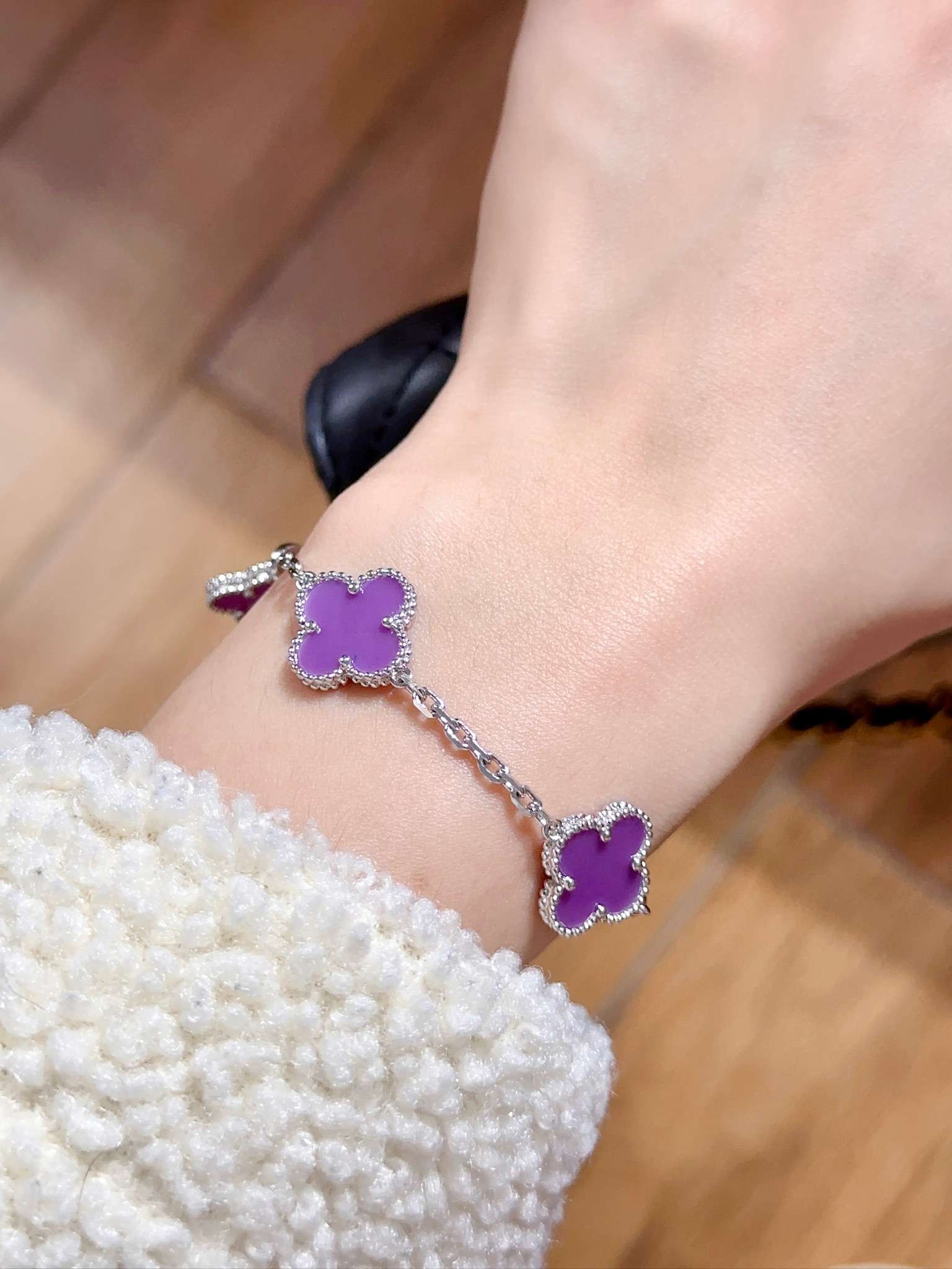 Violet stone platinum five flower bracelet