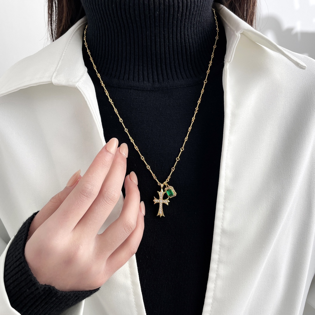 Emerald Cross Necklace