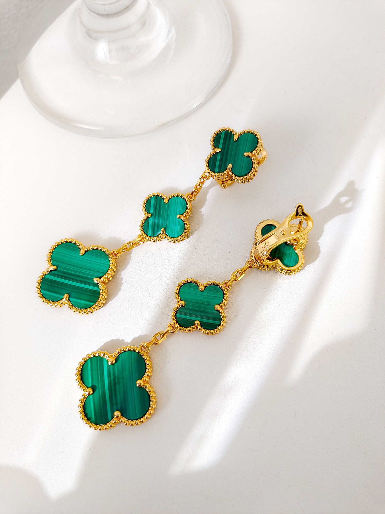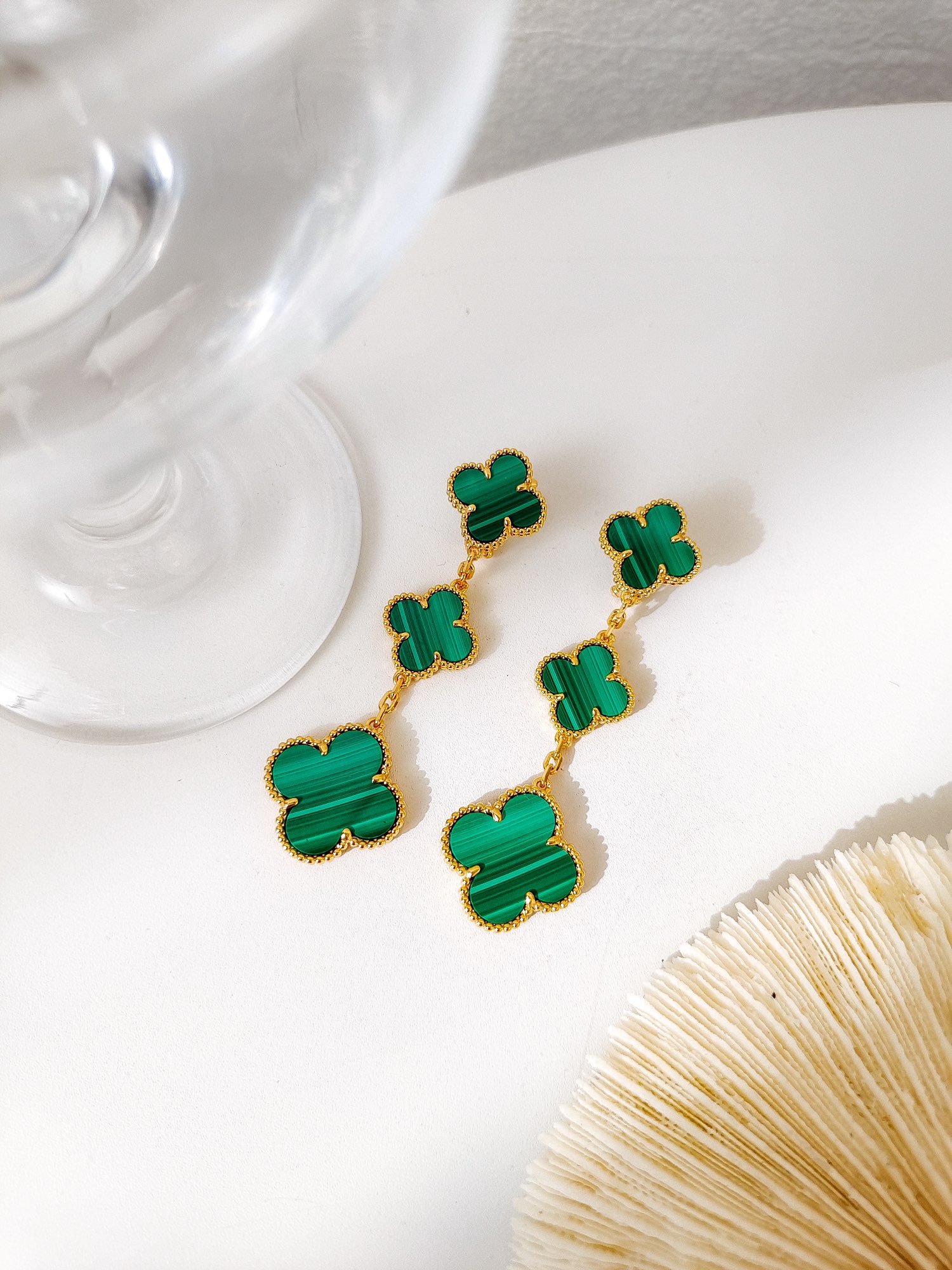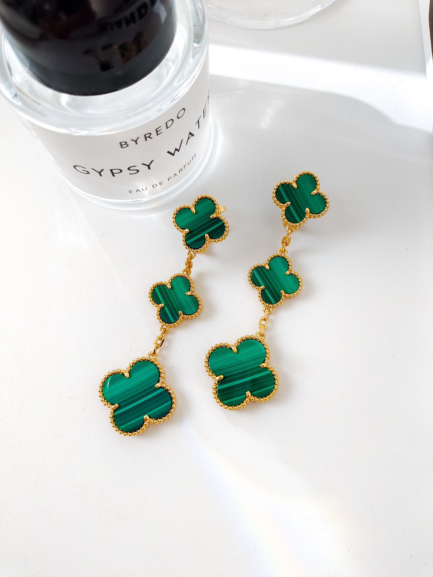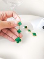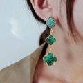 Four leaf clover peacock stone three flower earrings