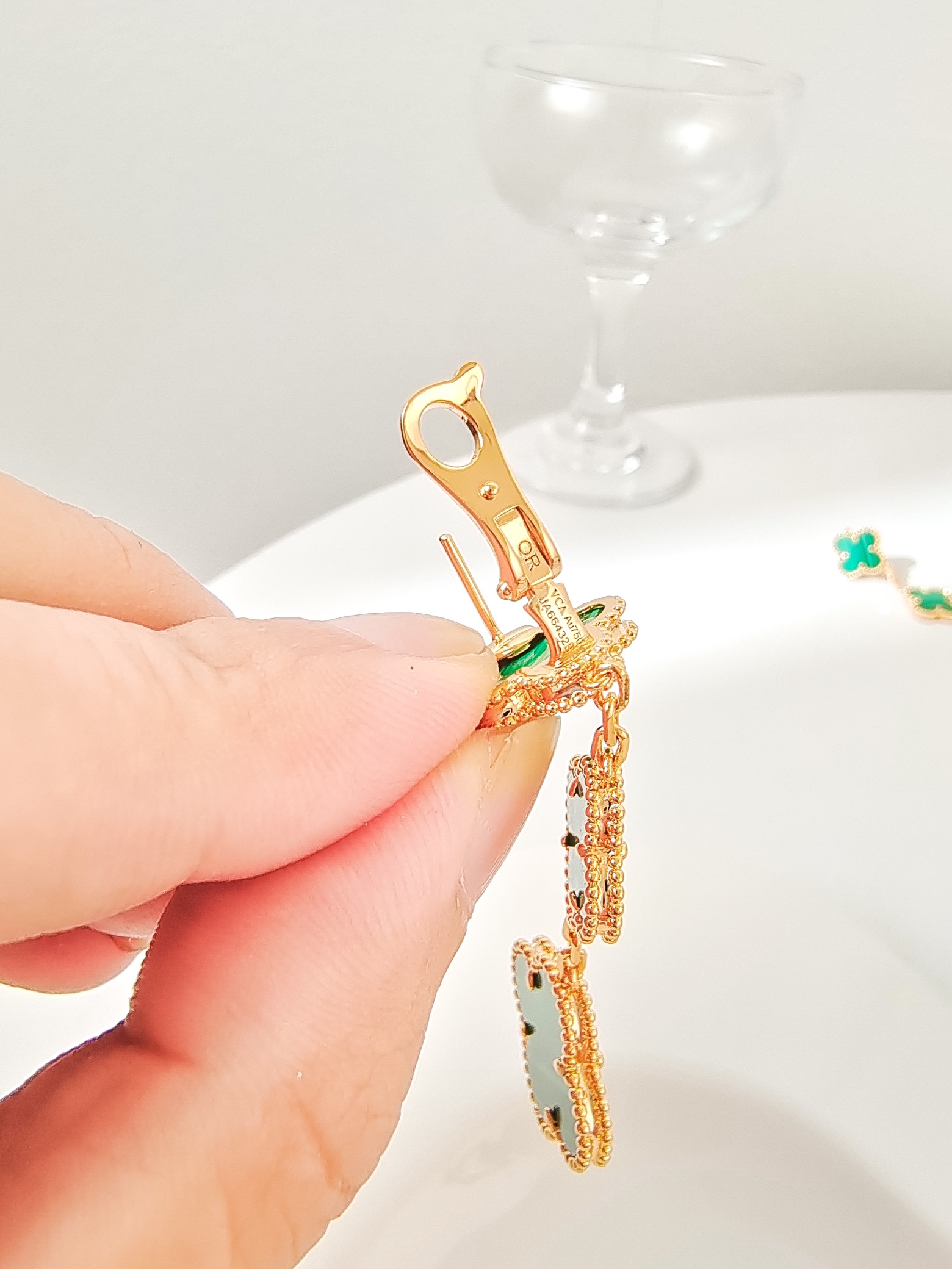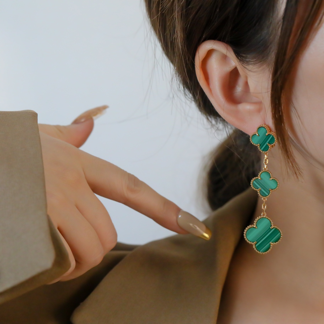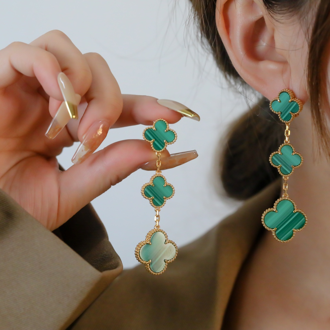 Four leaf clover peacock stone three flower earrings
