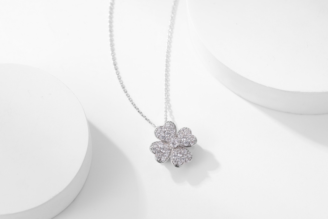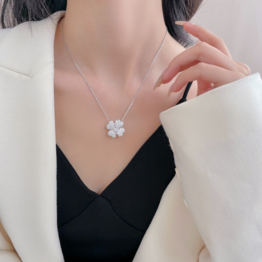 Four Seasons Heart Brooch Full Diamond Pendant Necklace