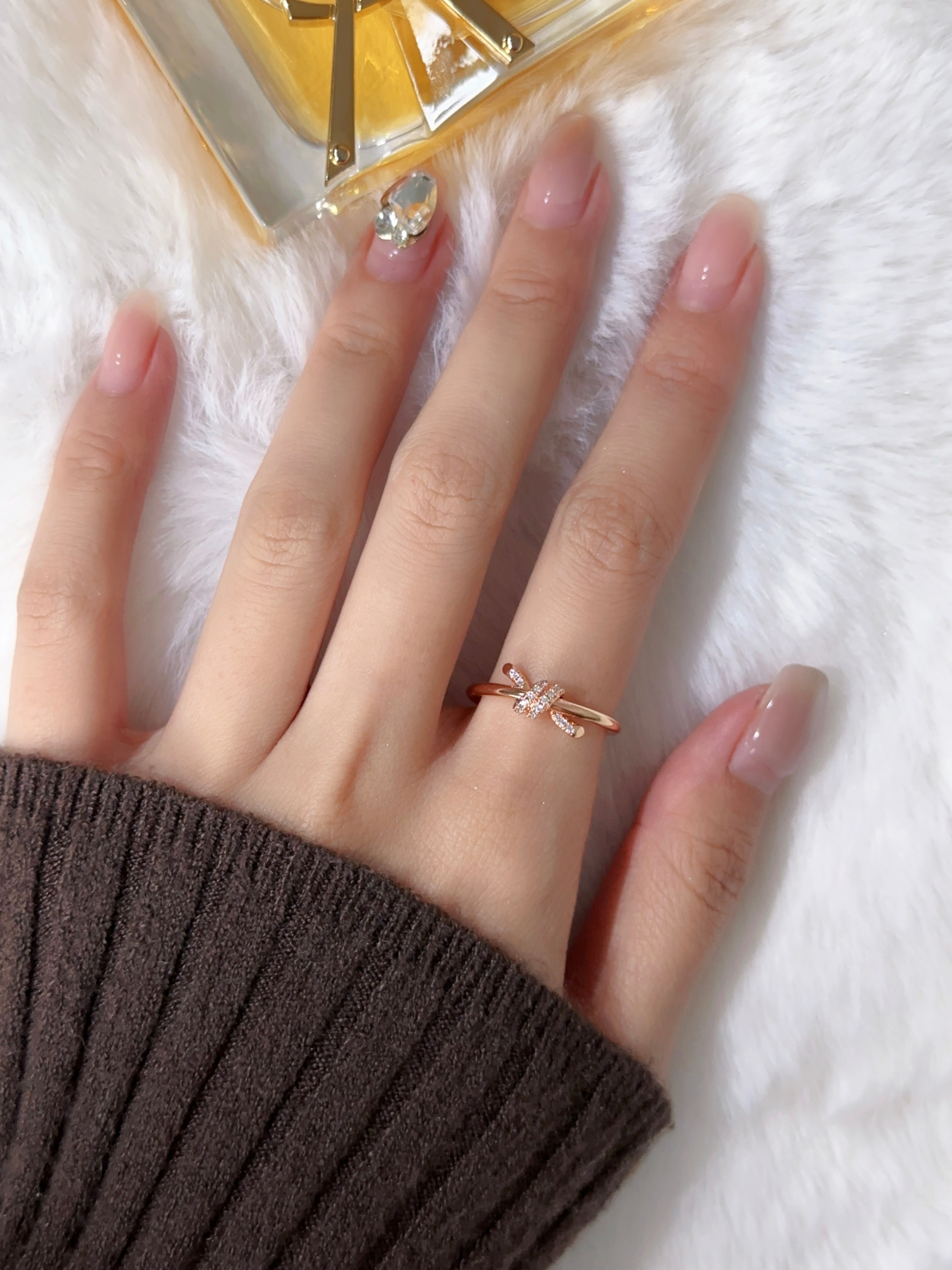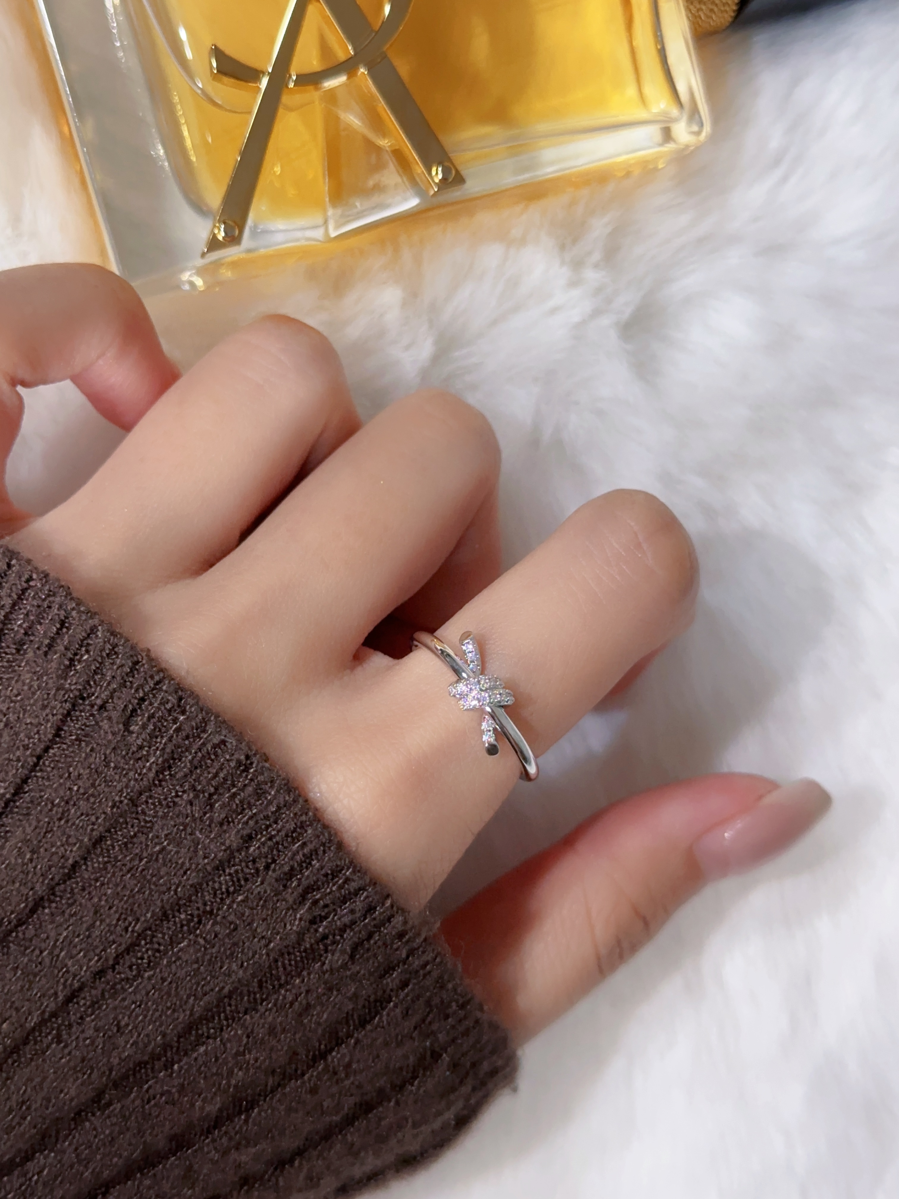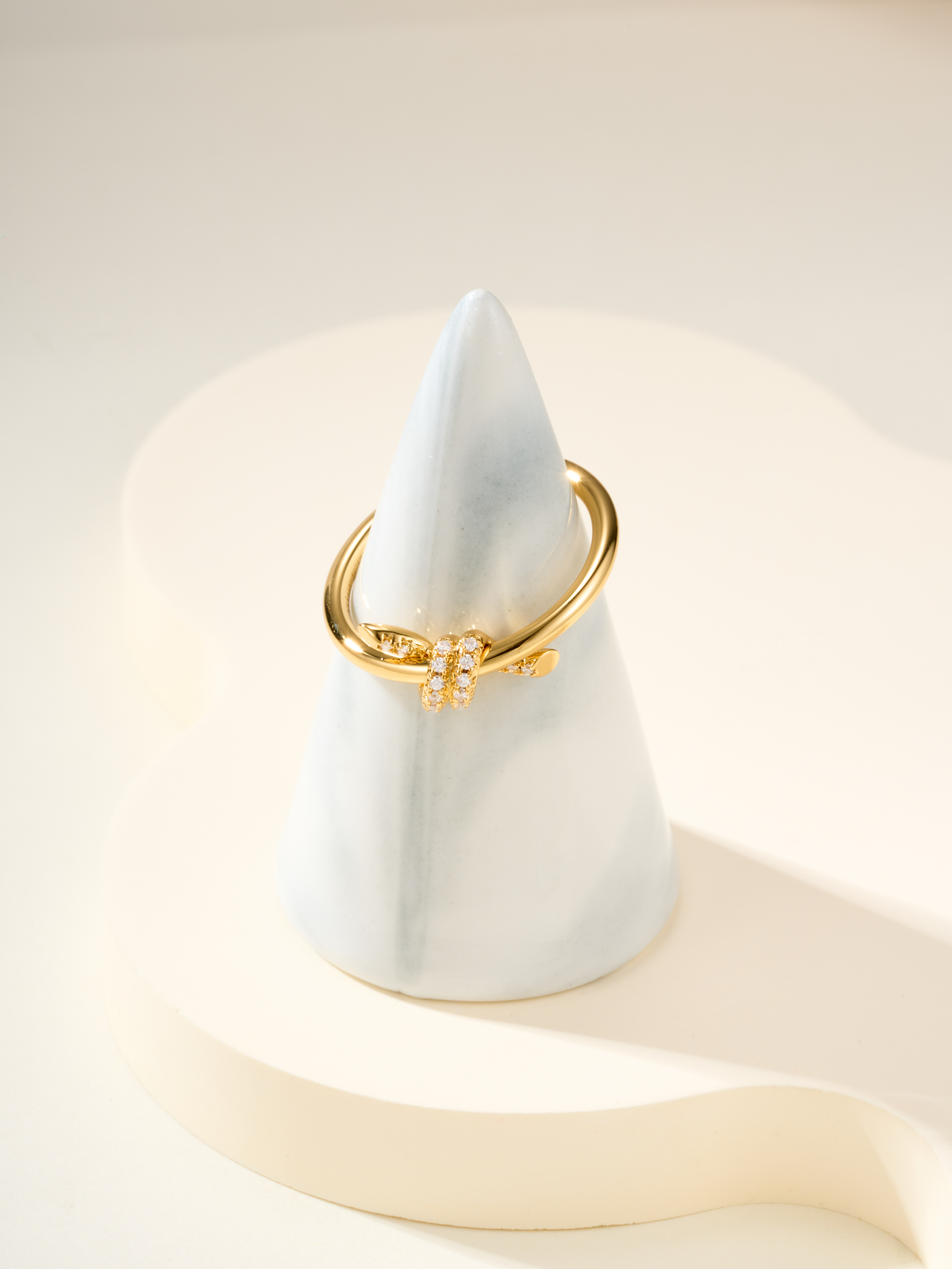 T knot diamond studded ring