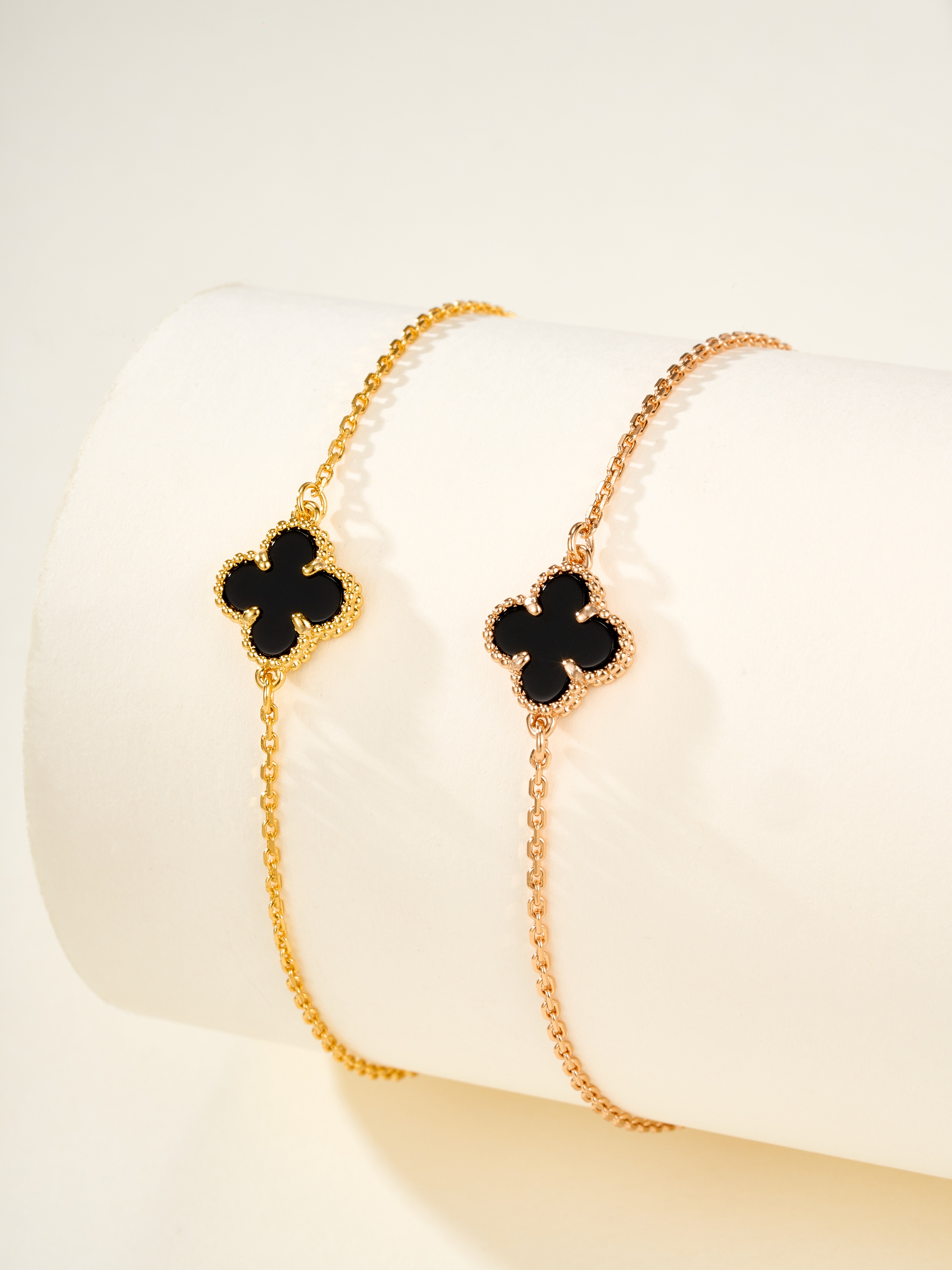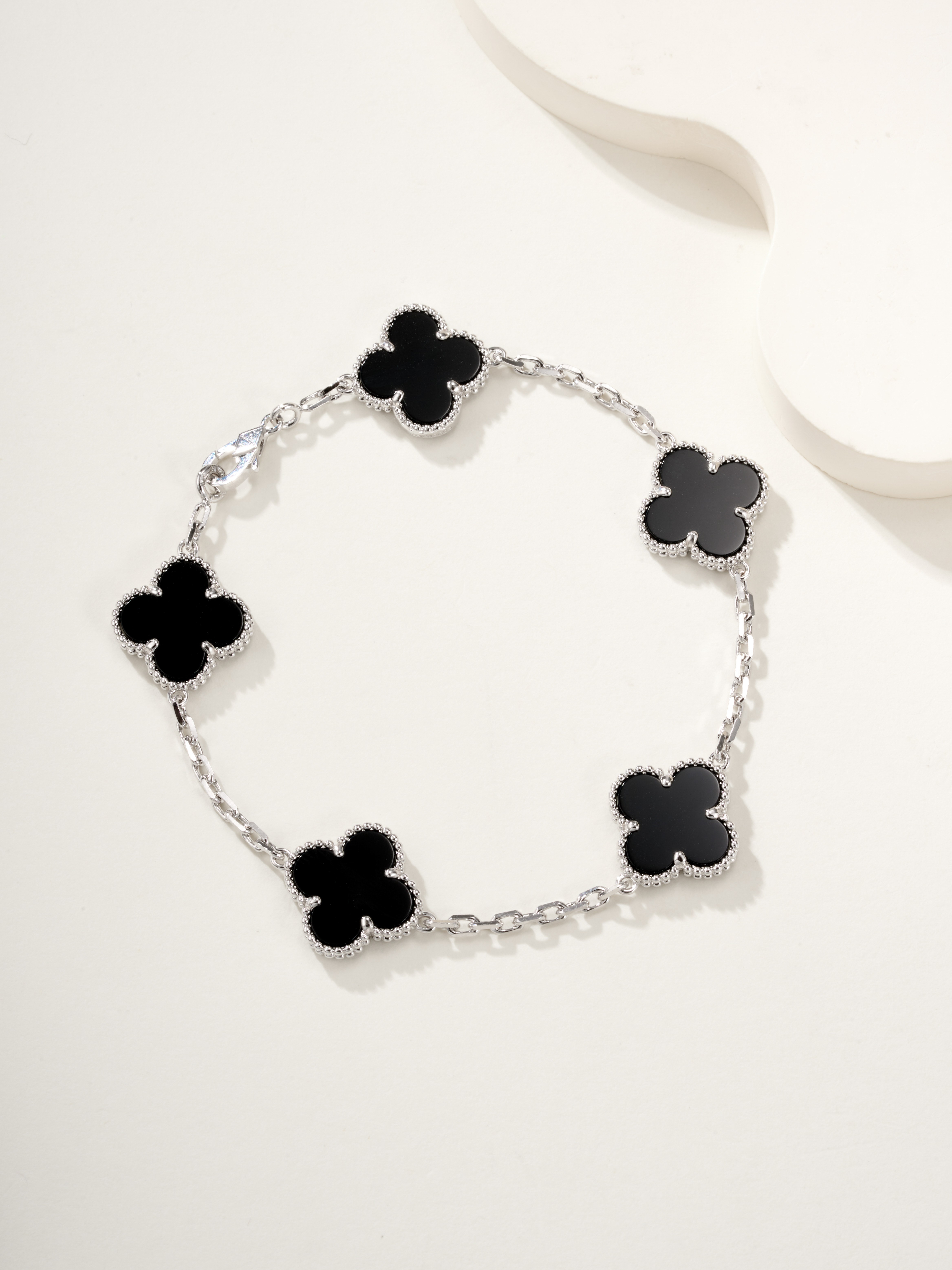 Ji Diao Diao Hua Pian White Gold Black Agate Five Flower Bracelet