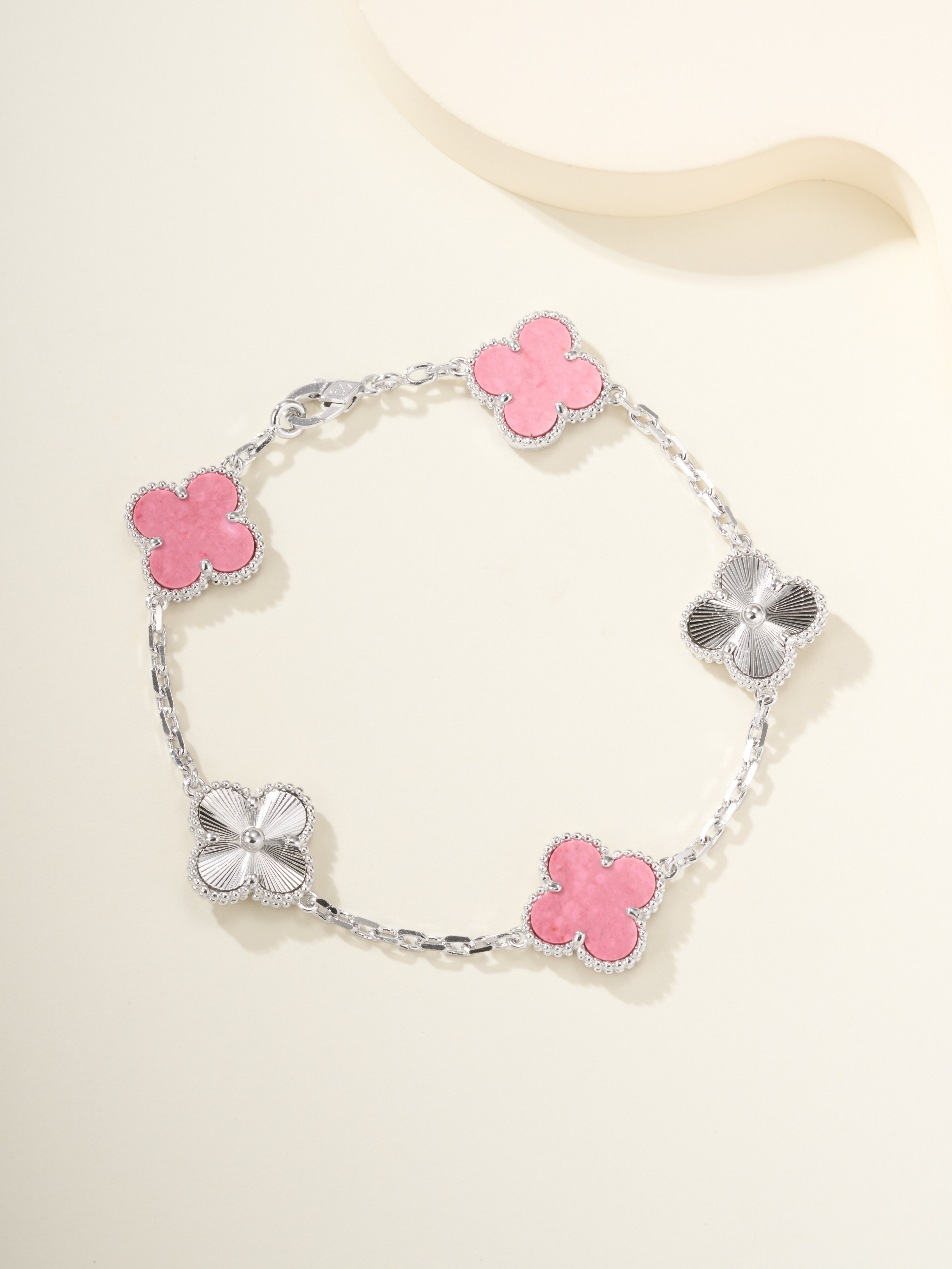 Ji Diao Diao Hua Pian White Gold Rose Stone Five Flower Bracelet