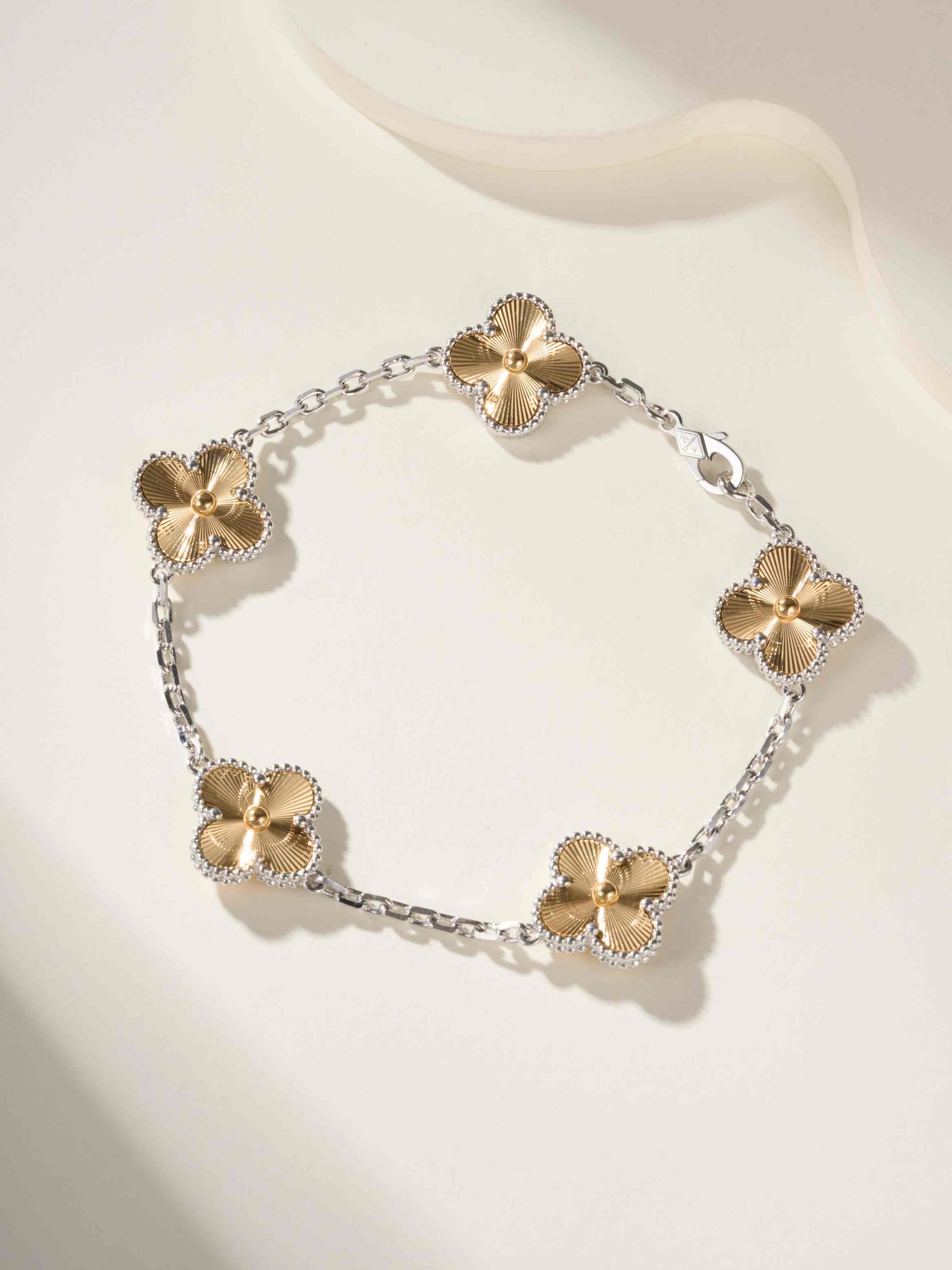 2024 Limited Edition Laser Rose Gold Platinum Mixed Color Five Flower Bracelet