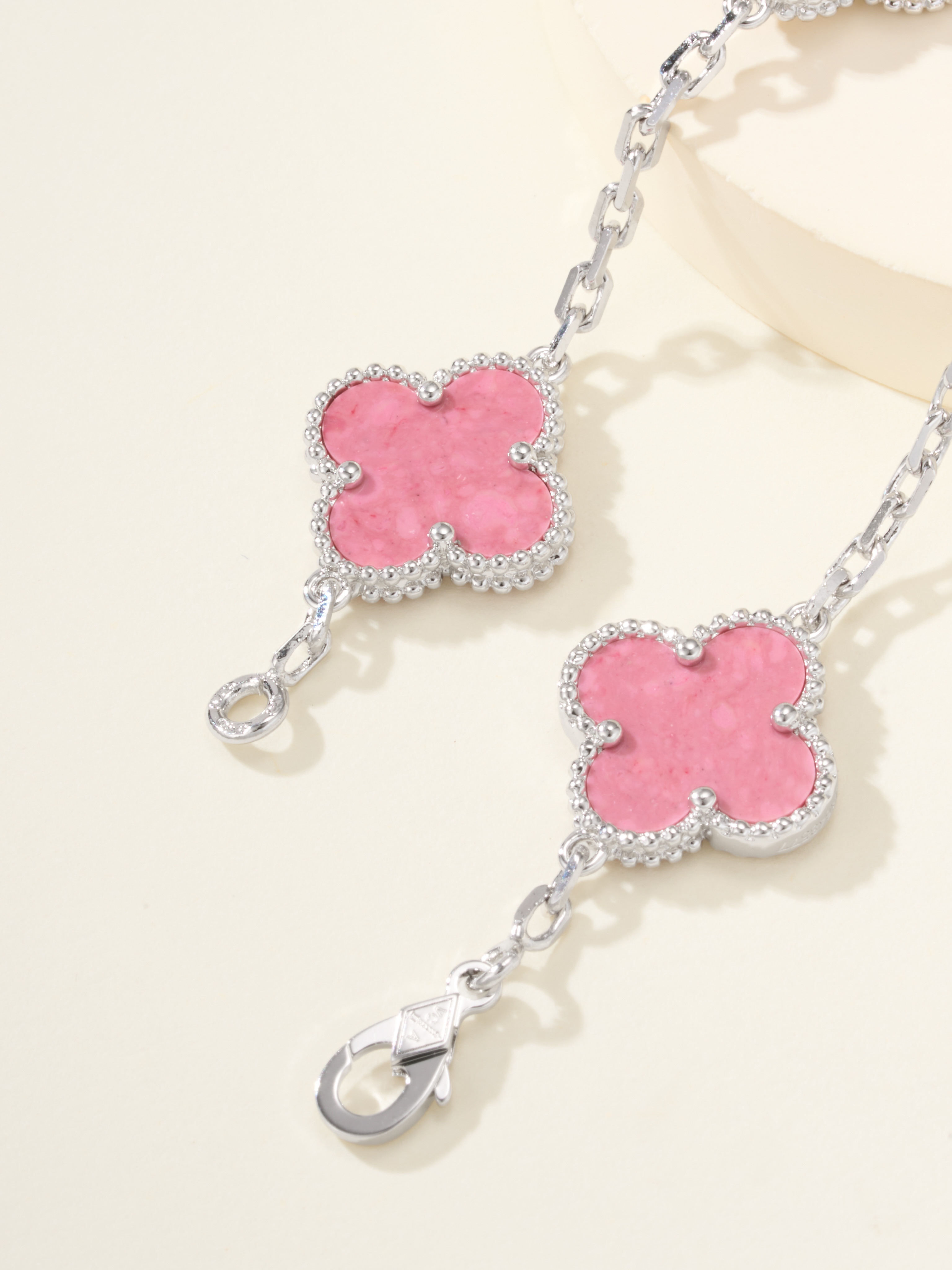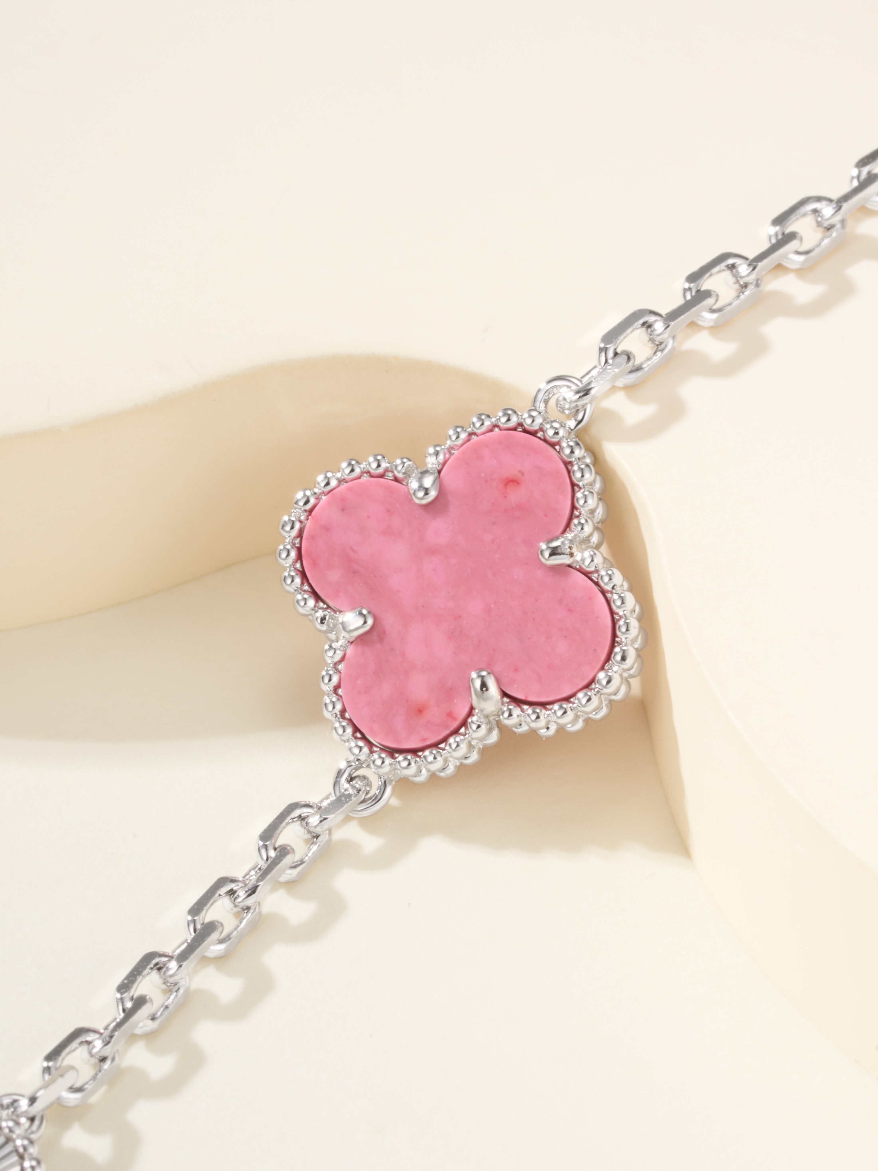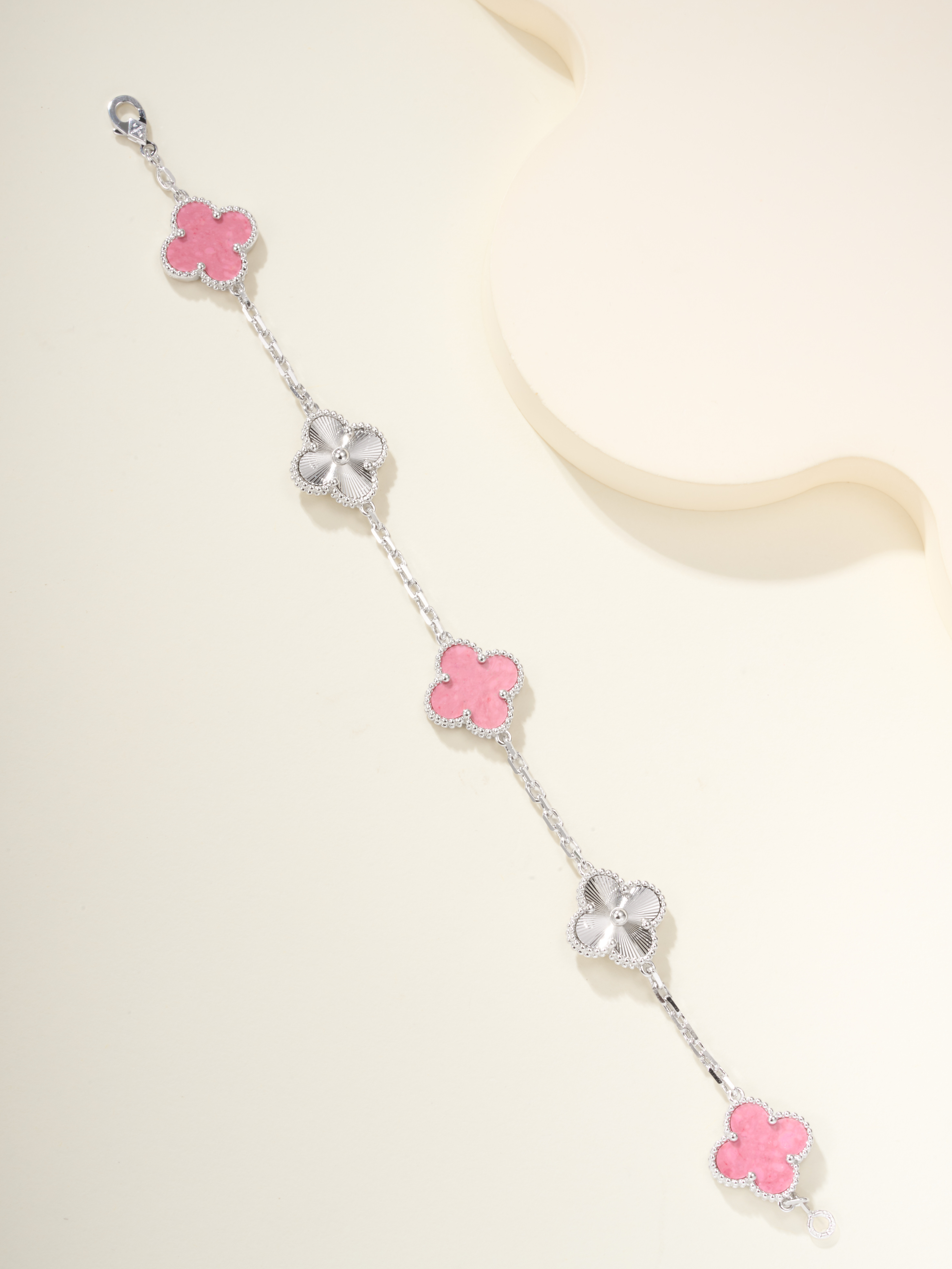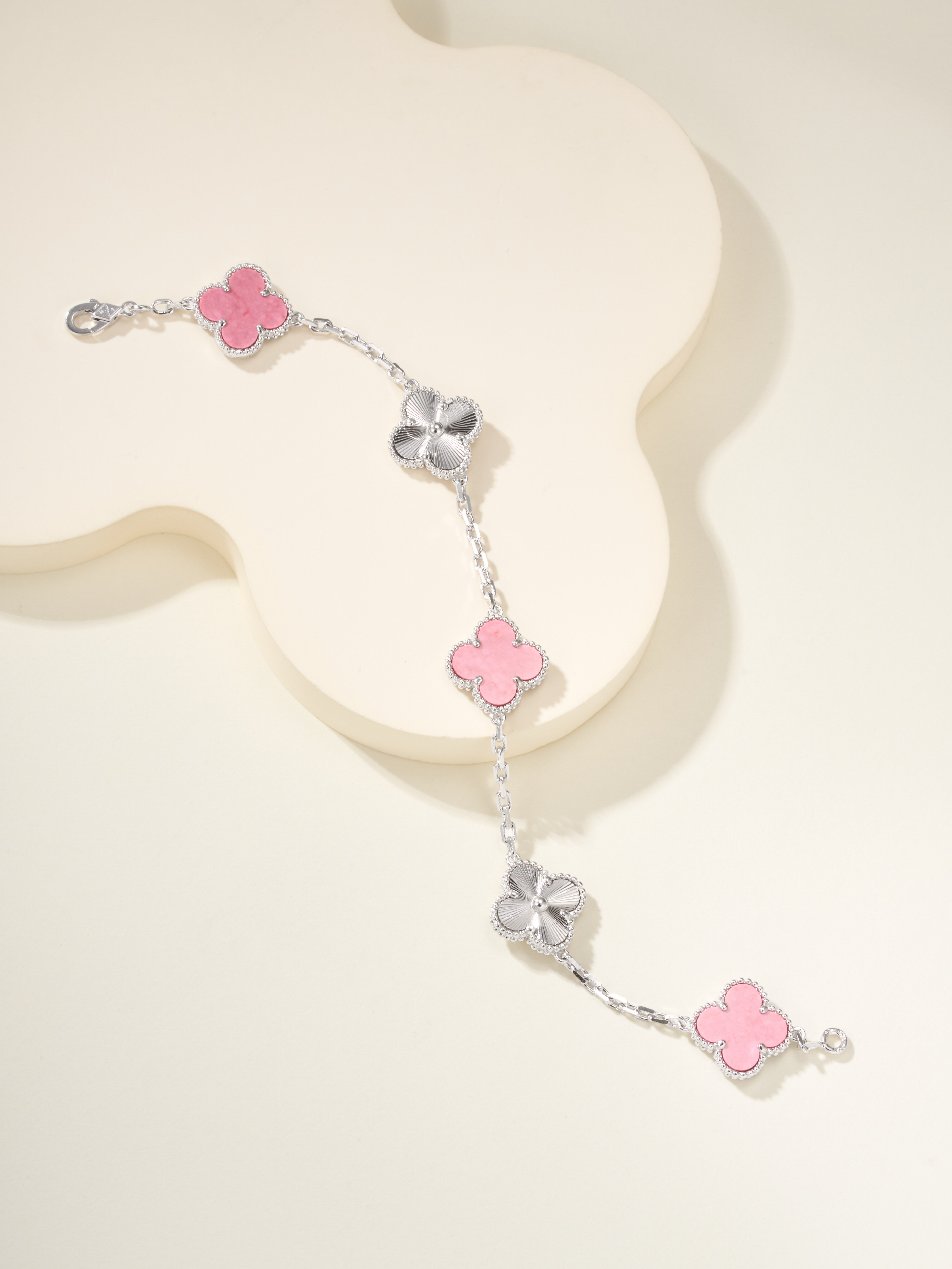 Ji Diao Diao Hua Pian White Gold Rose Stone Five Flower Bracelet