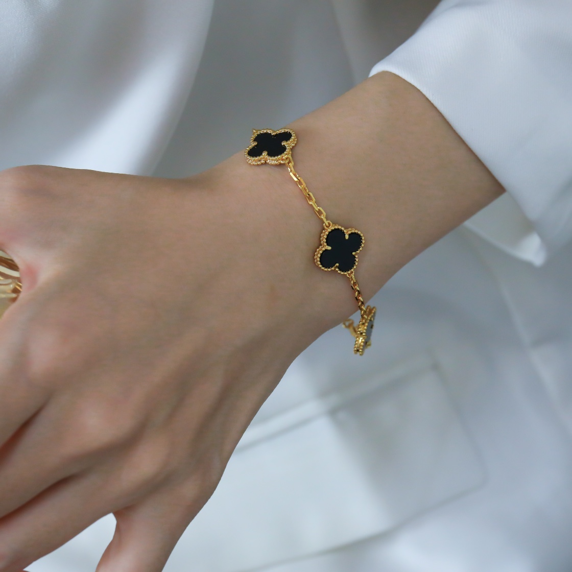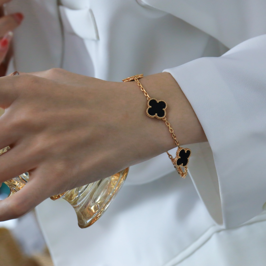 Vintage Alhambra Bracelet with 5 Flower Black Agate