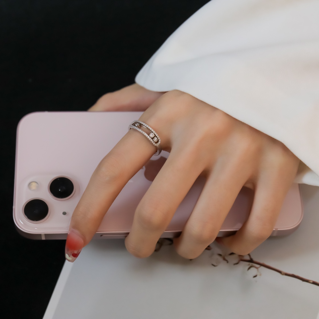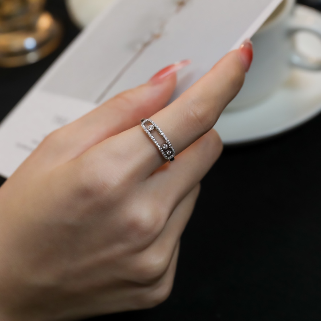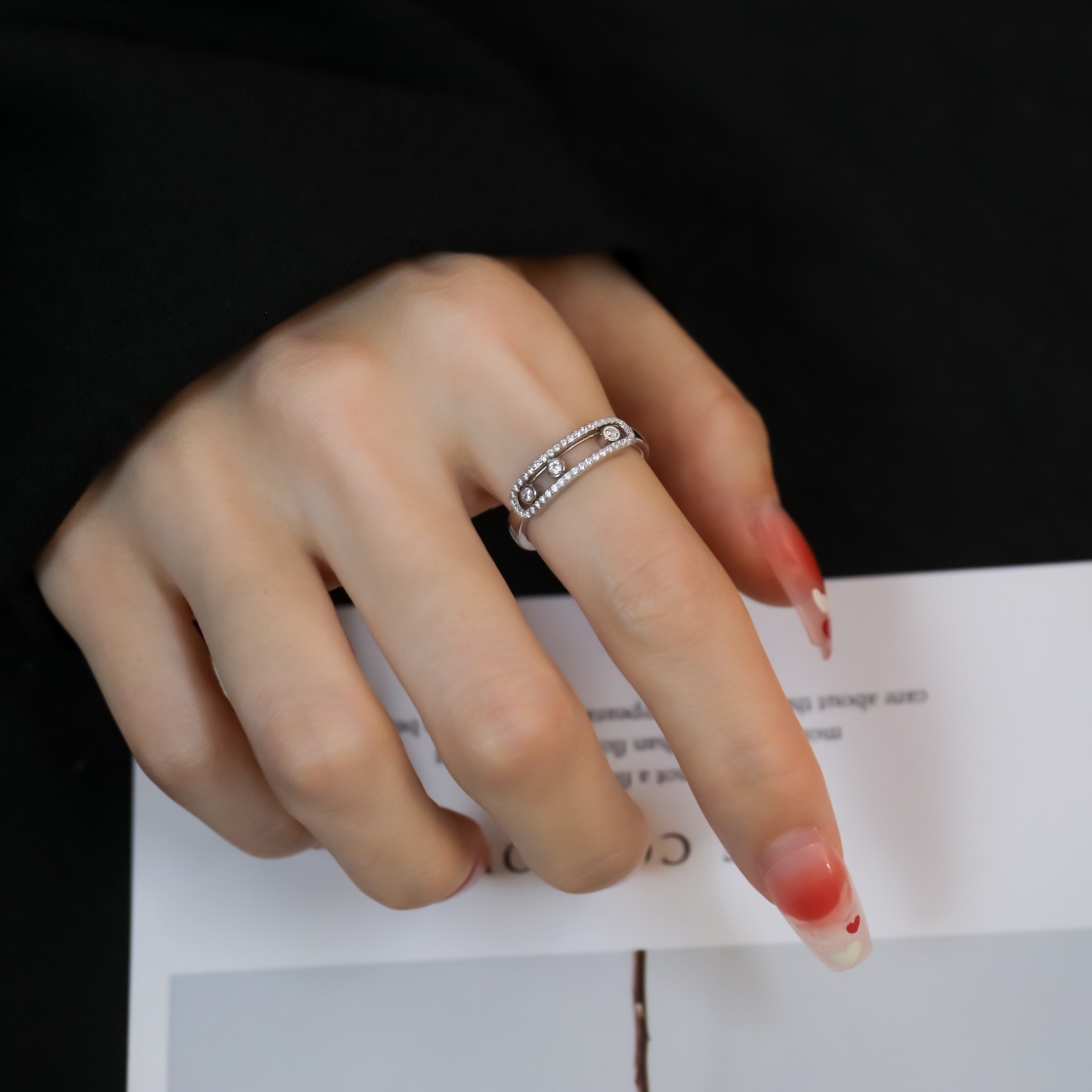 Meisika 3 Diamond Sliding Ring (Color White)