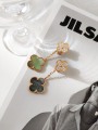Clover Double Flower Diamond Set Rose Gold Grey Earrings