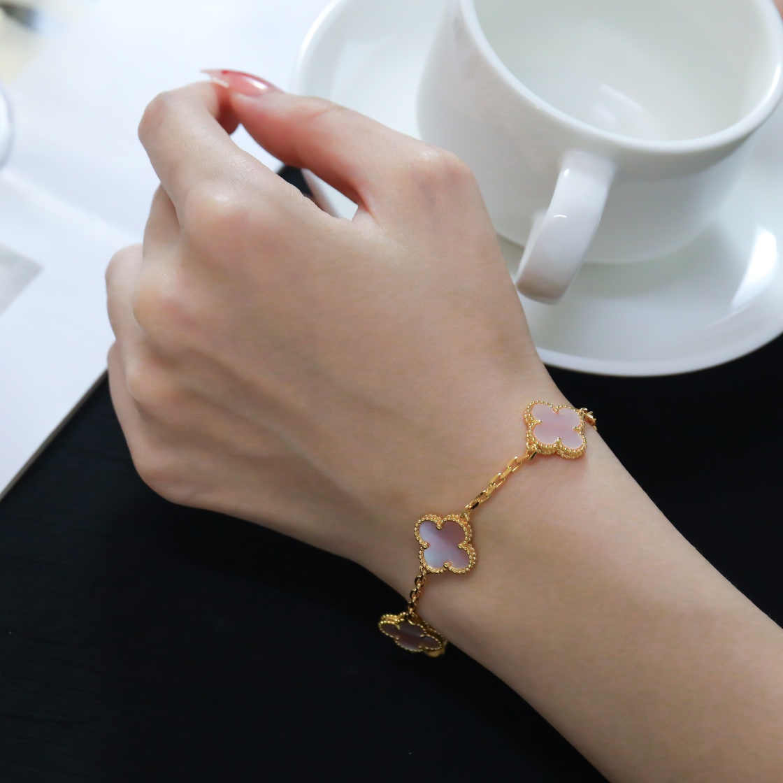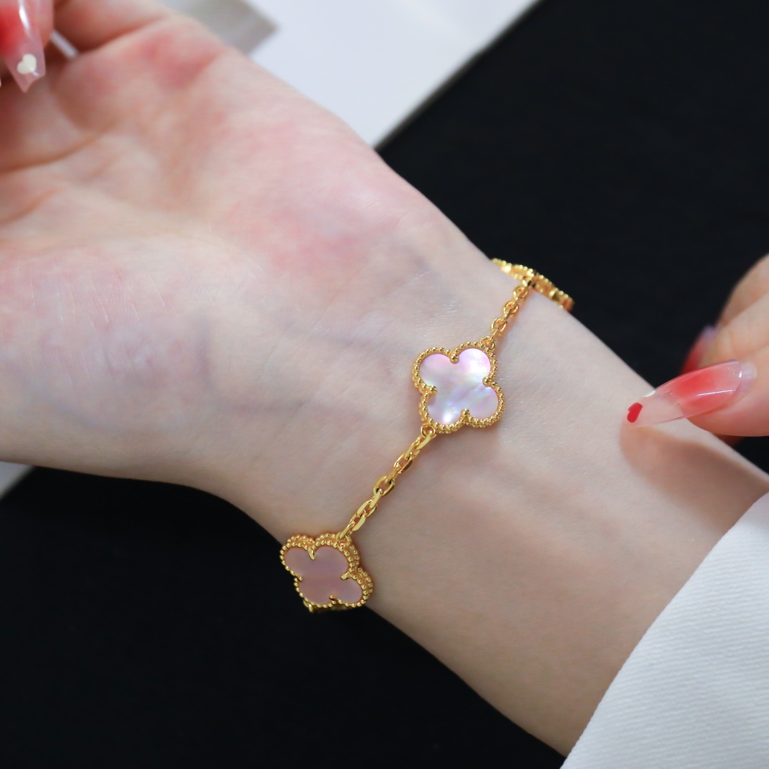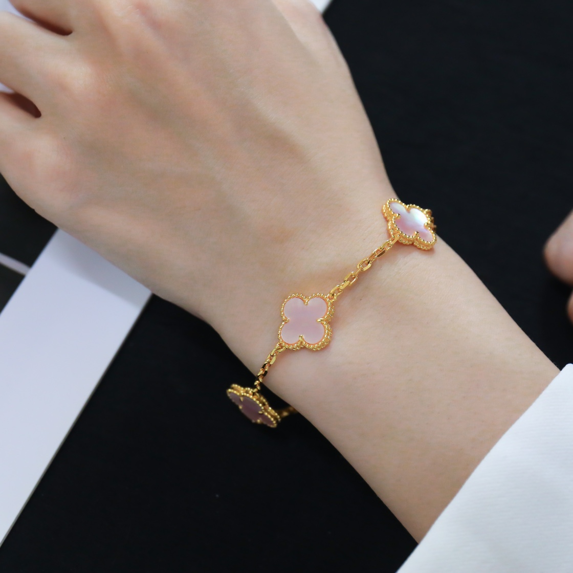 Five Flower Gold Pink Shell Bracelet