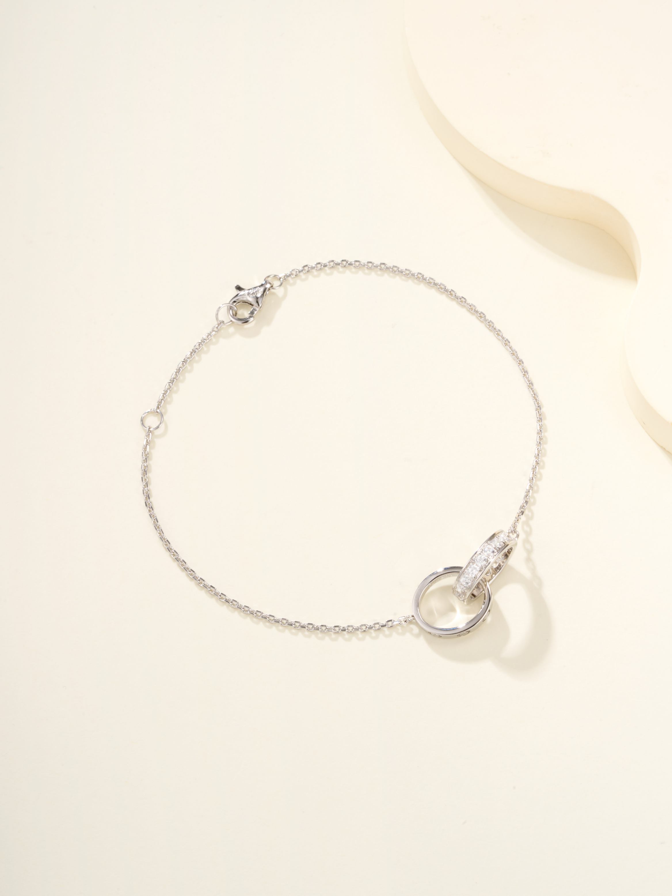 Love Half Circle Diamond Inlaid Double Ring Bracelet