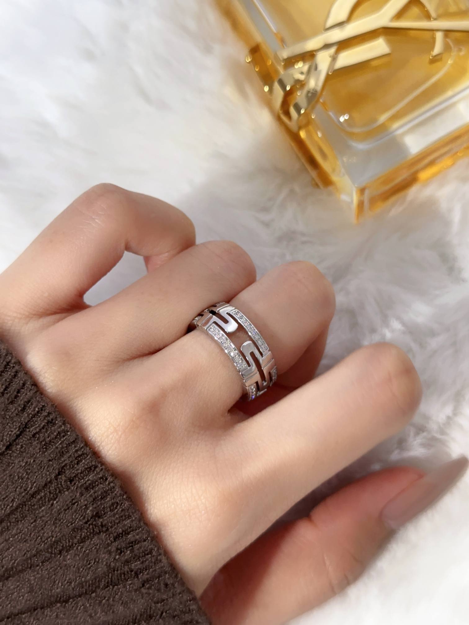 Parentesi paperclip studded diamond ring