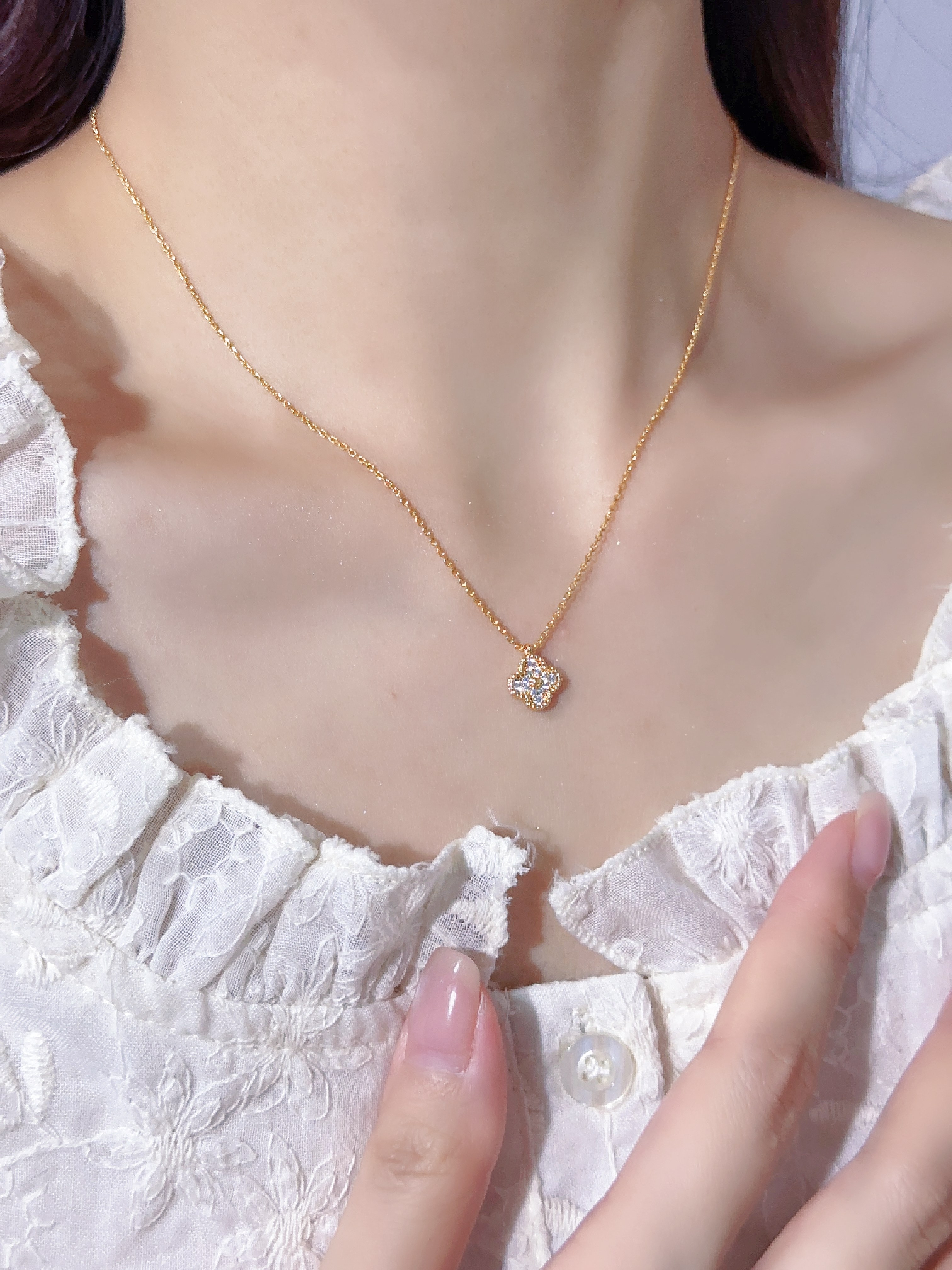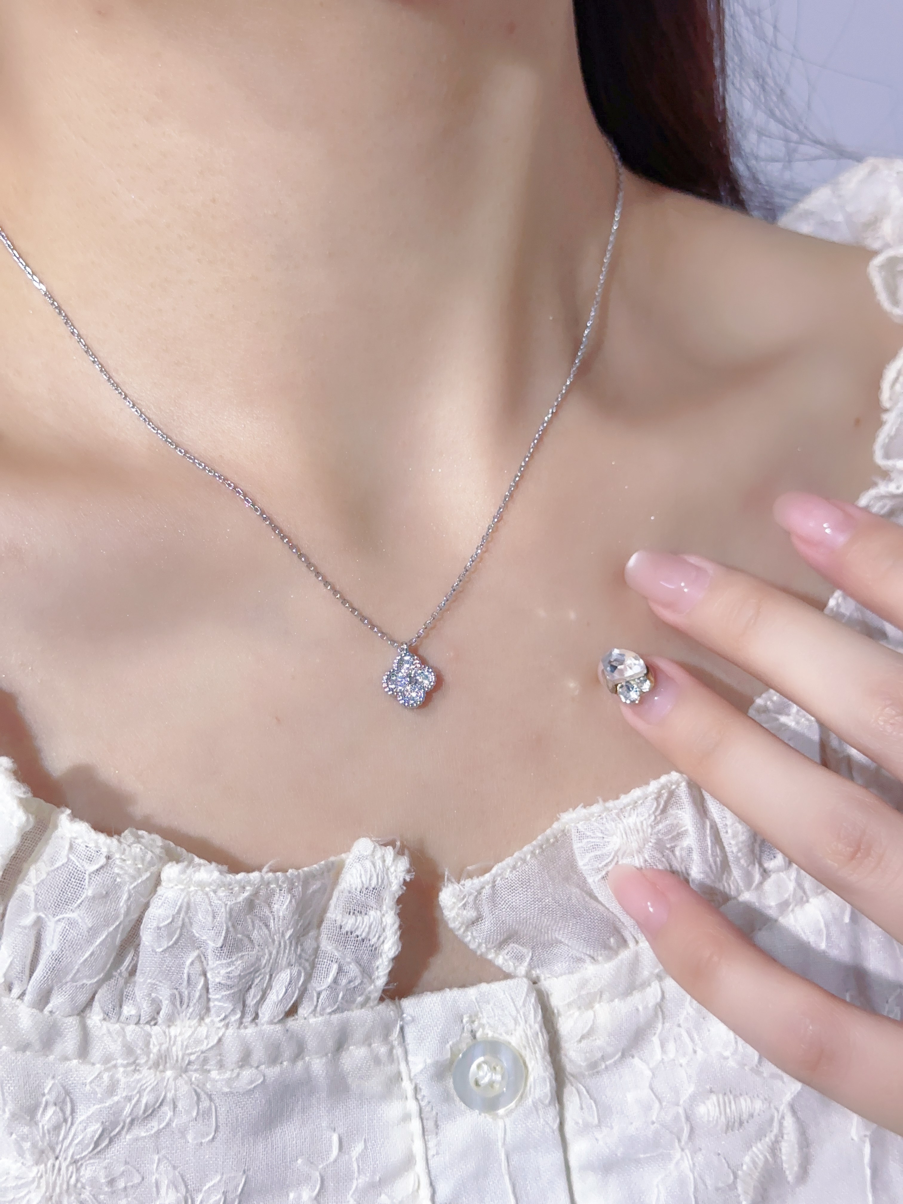 VCA Full Diamond Mini Single Flower Necklace