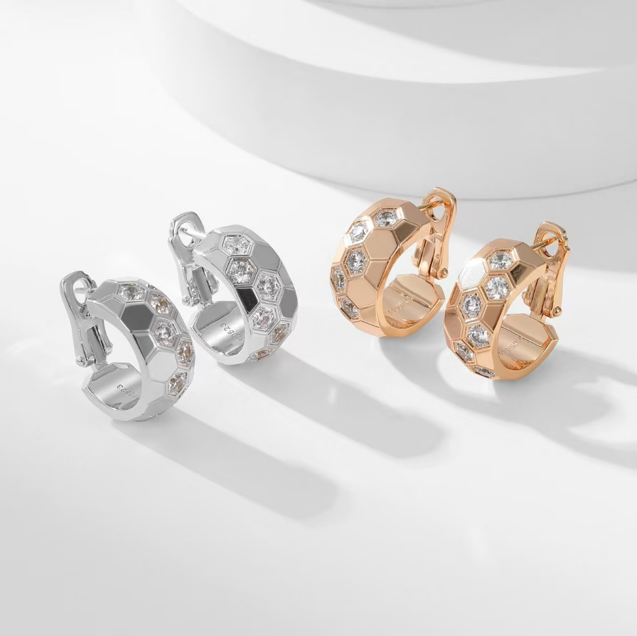 Wide ring diamond studded earrings