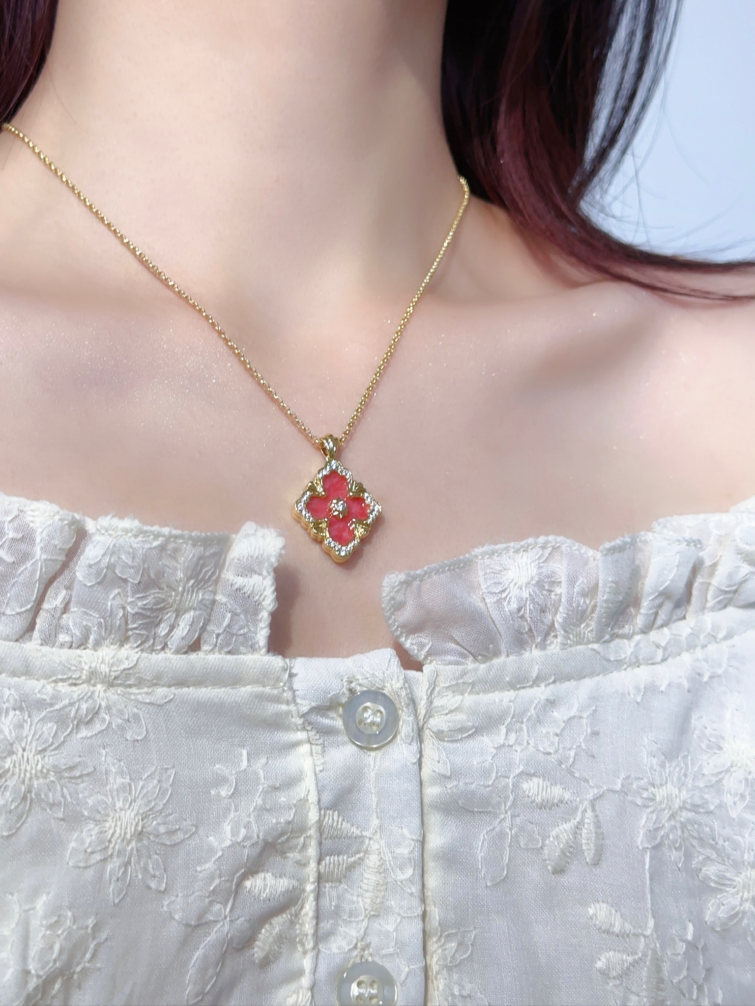 BU Buccellati Opera Red Stone Necklace (Large 22.7 * 20.4mm)