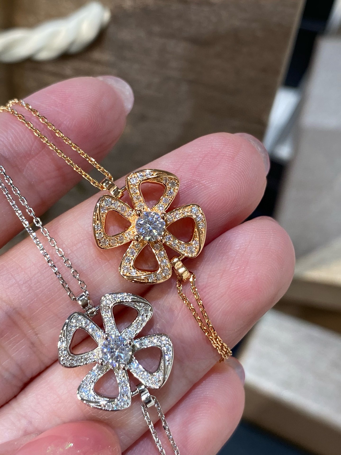 Divas Four Flower White Beimu Bracelet (925 Silver Chain)