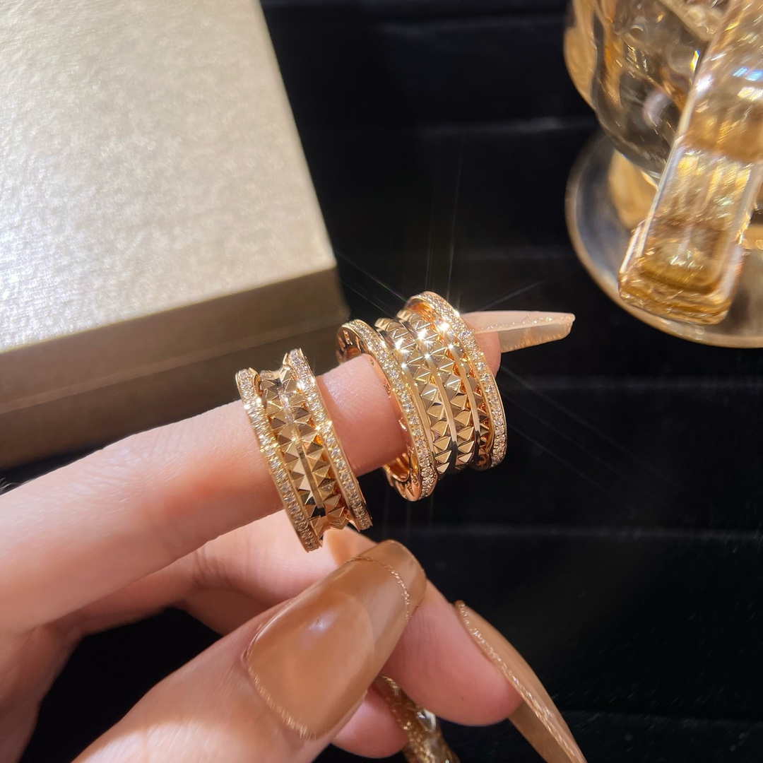 Asymmetric edge diamond ring with spring (CNC handmade diamond inlay)