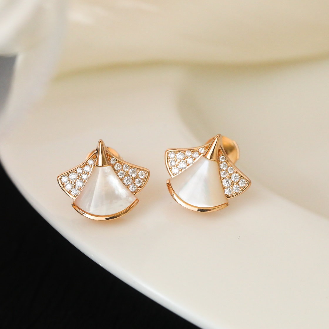 Fan shaped diamond studded earrings