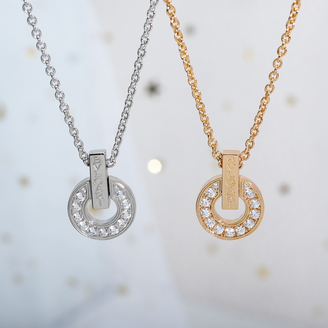 BV Small Circular Needle Single Chain Diamond Set Necklace