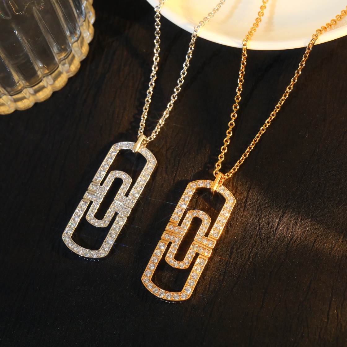 BV large needle shaped artificial chain with diamond inlay necklace