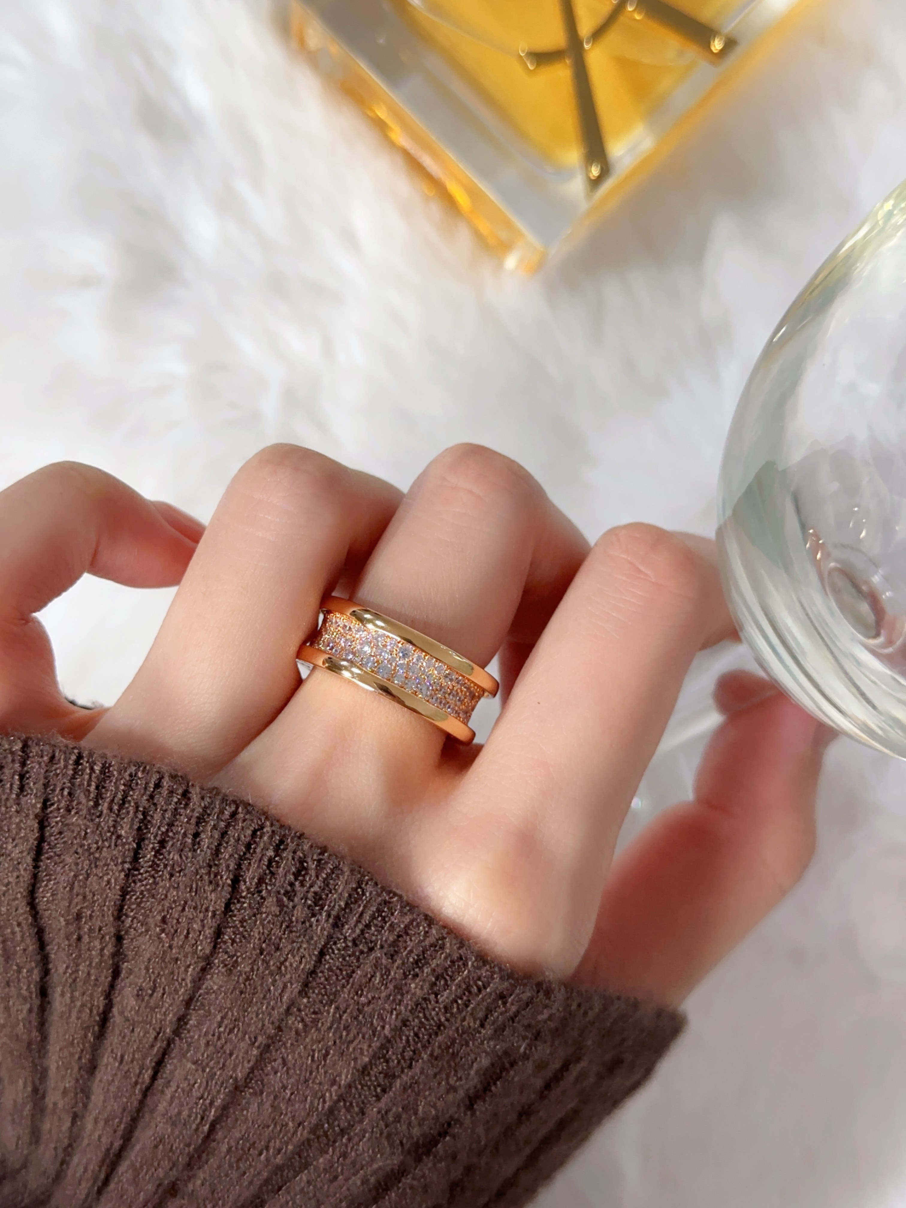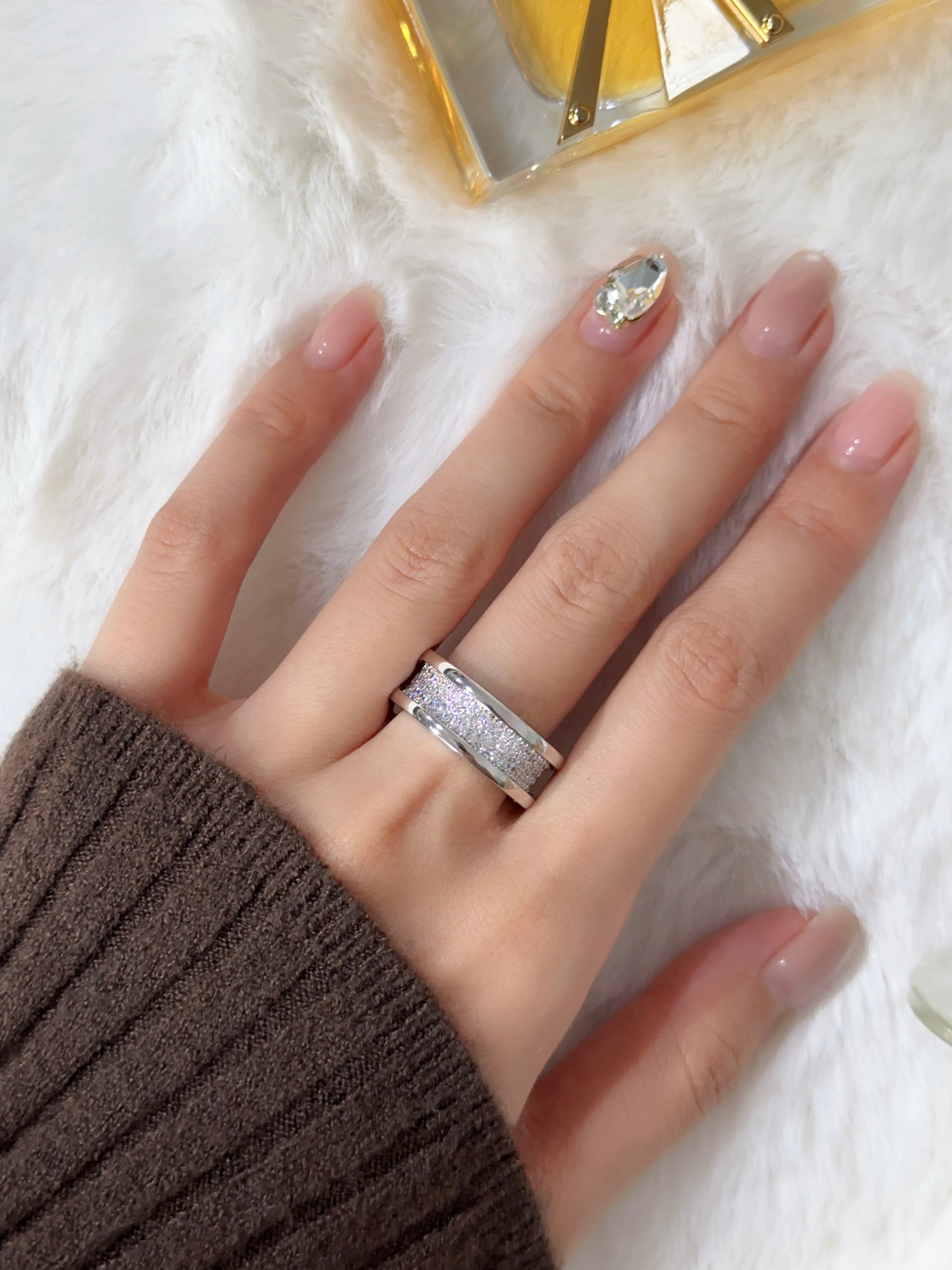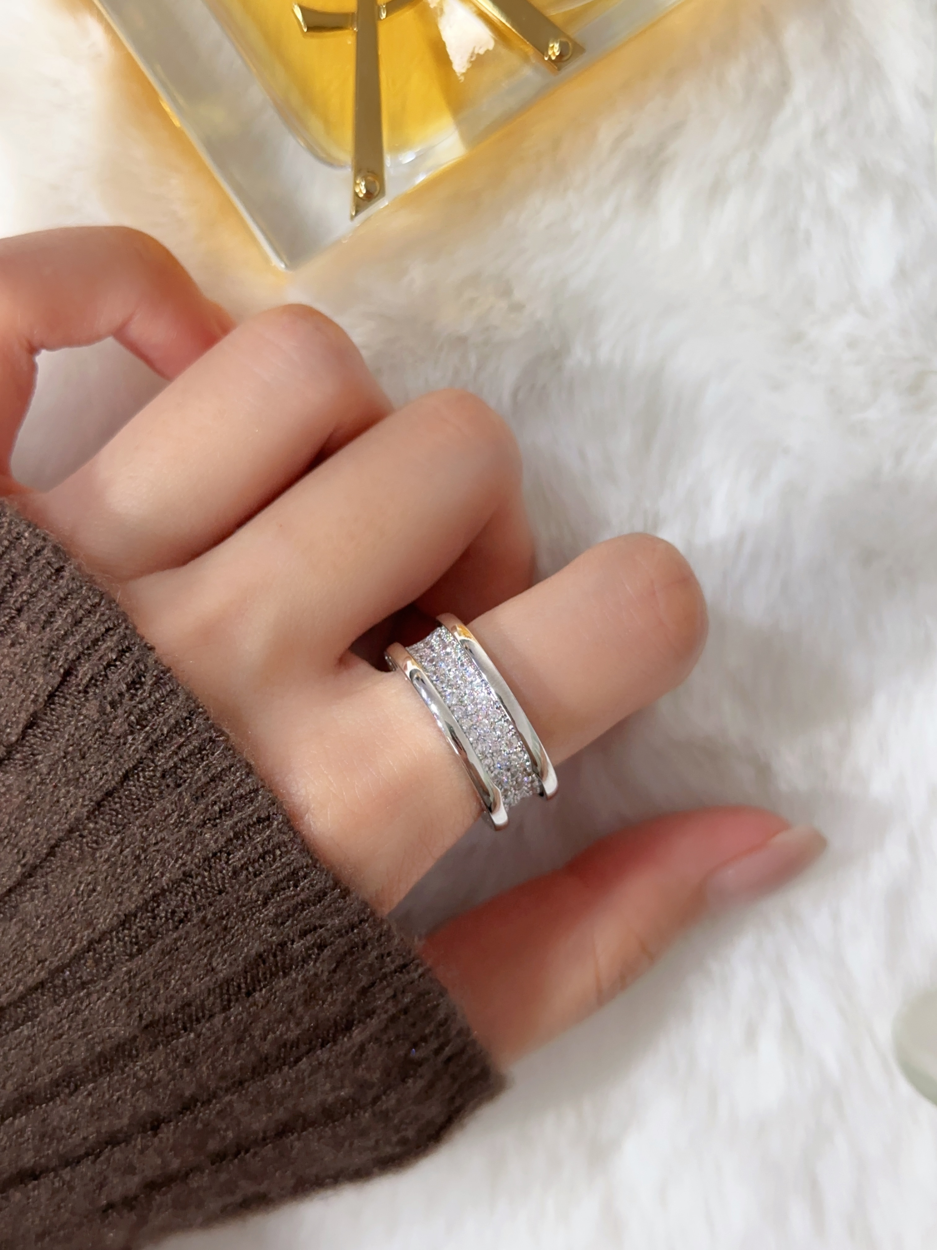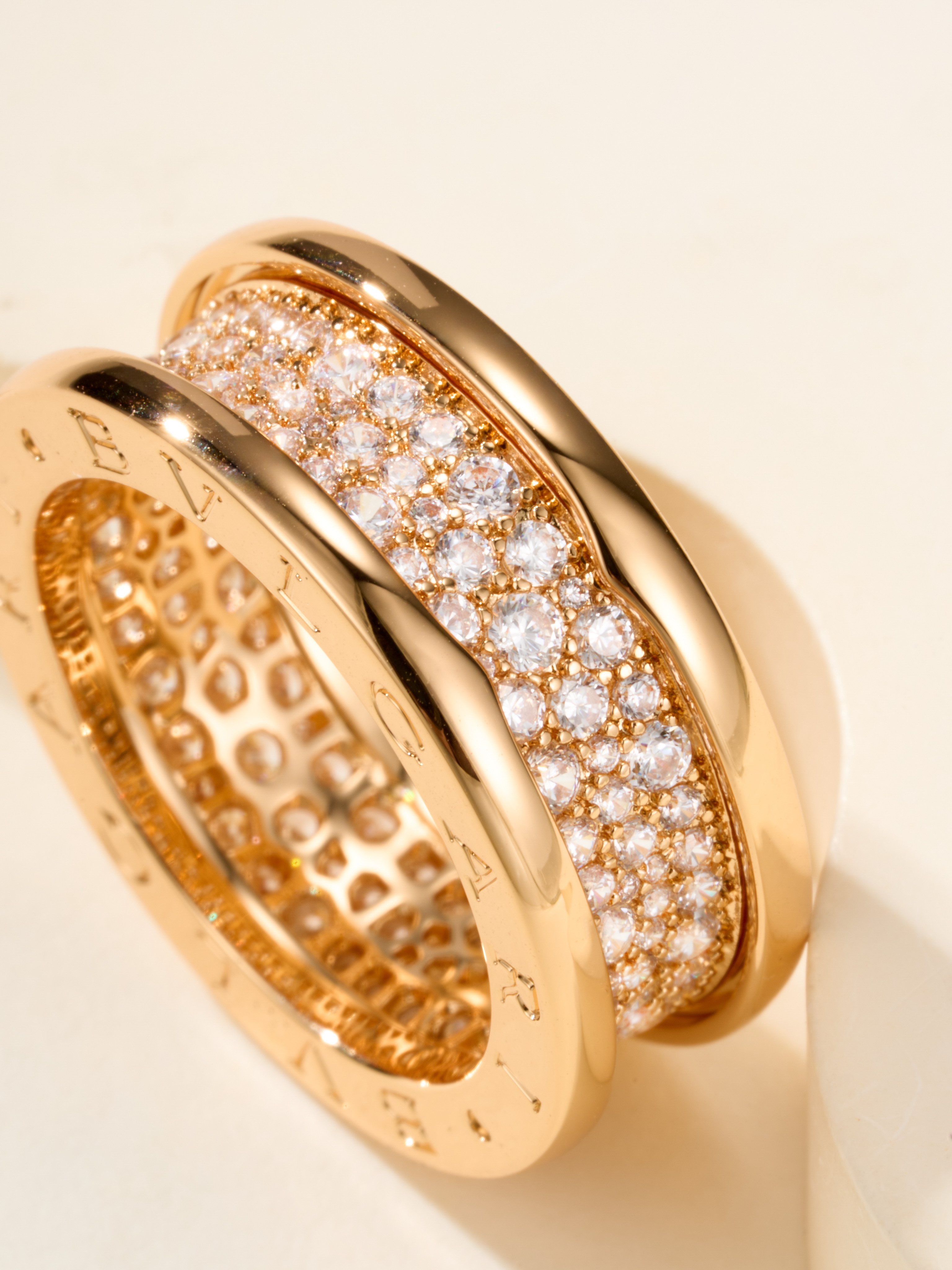 B. Zero1 Medium Wide Three Rows Diamond Set Small Man Waist Full Diamond Ring