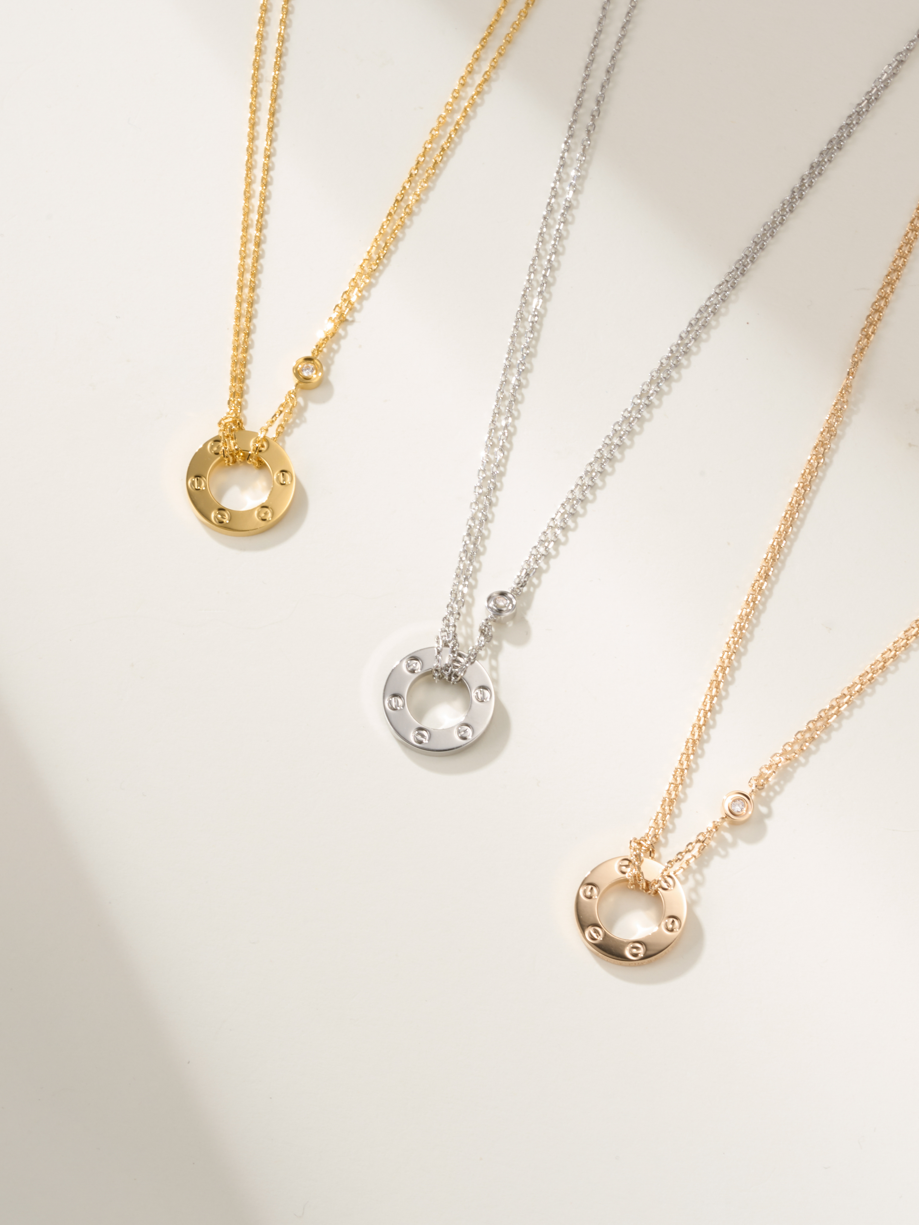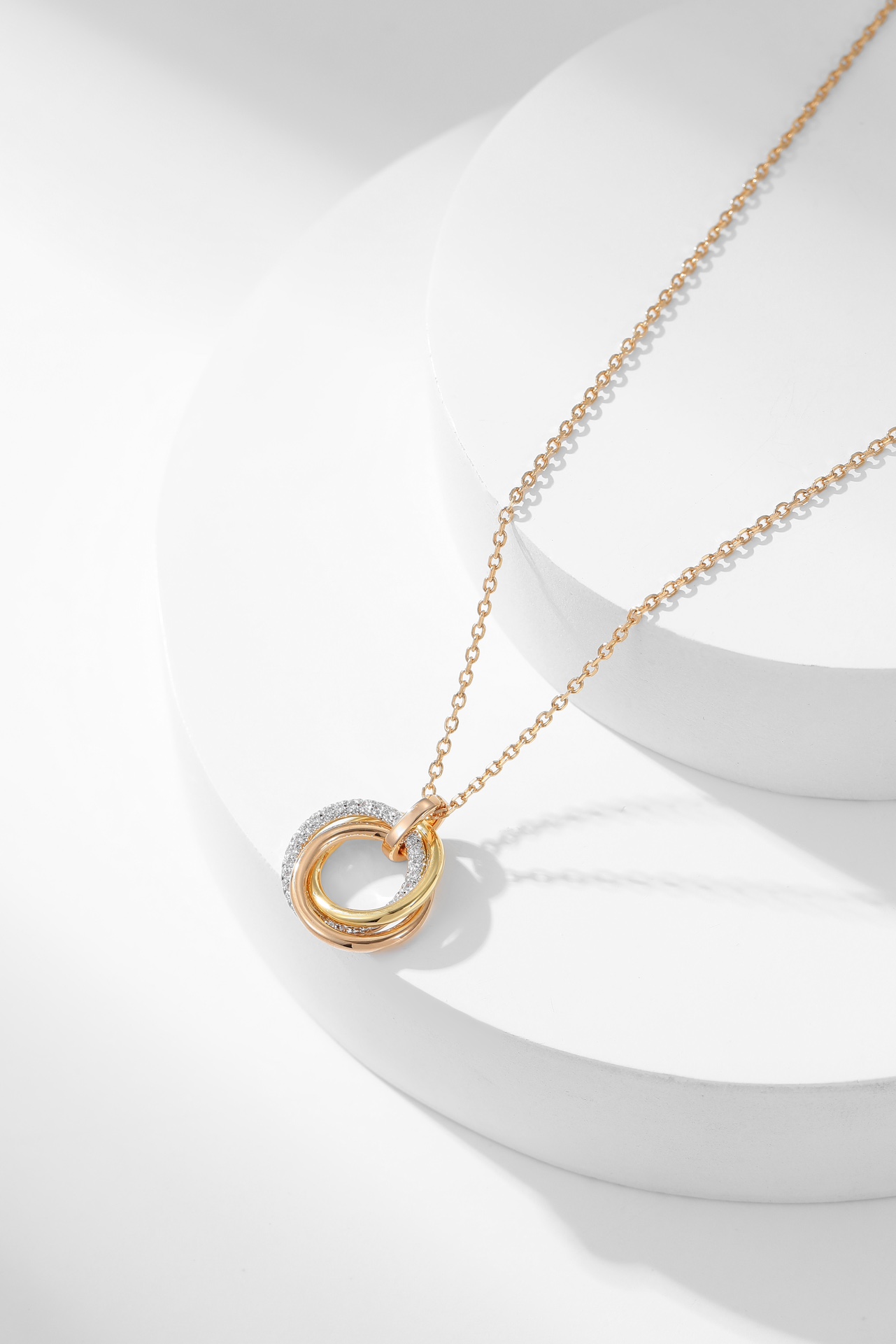 Trinity Pillow Shaped 3-Color Ring Necklace