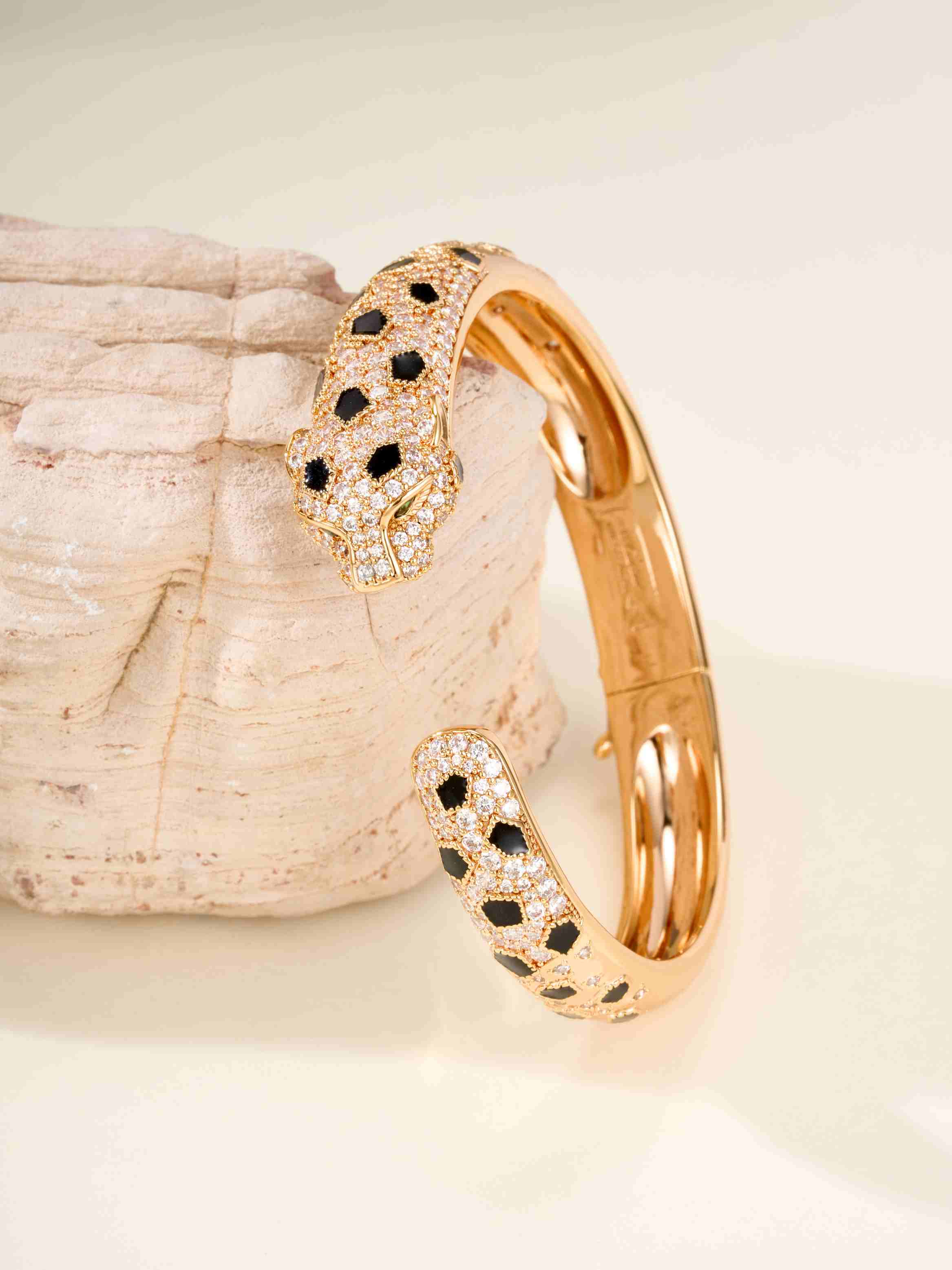 New Leopard Head Wide Edition Diamond Set Open Bracelet