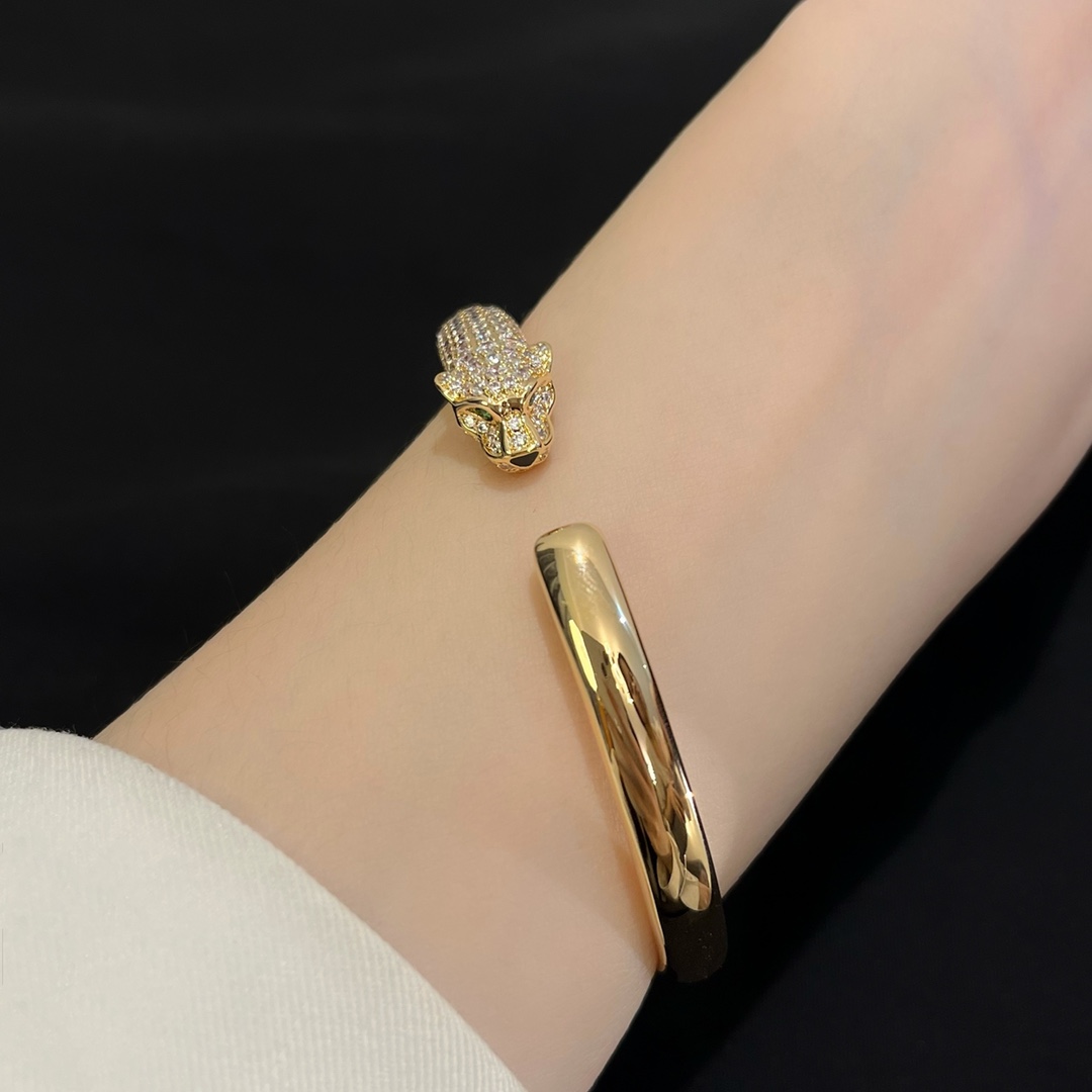 Cheetah Opening Head Diamond Set Elastic Bracelet