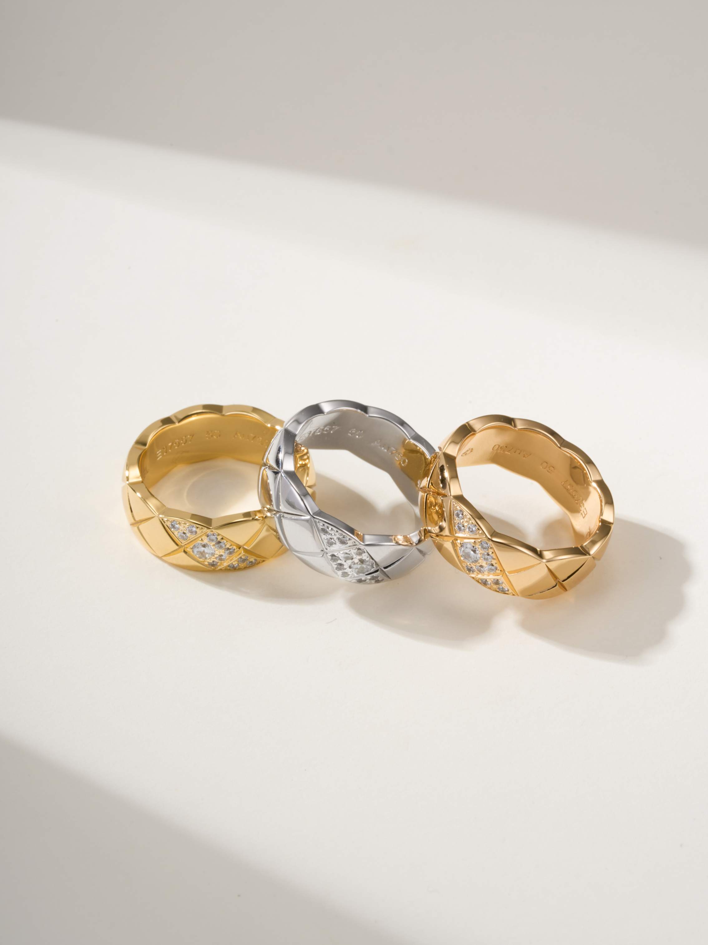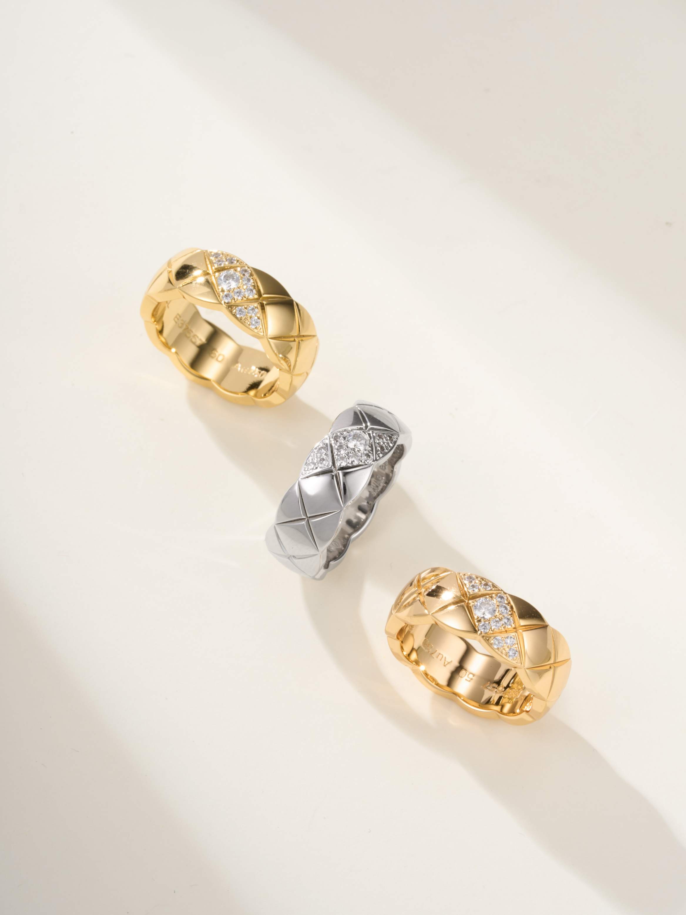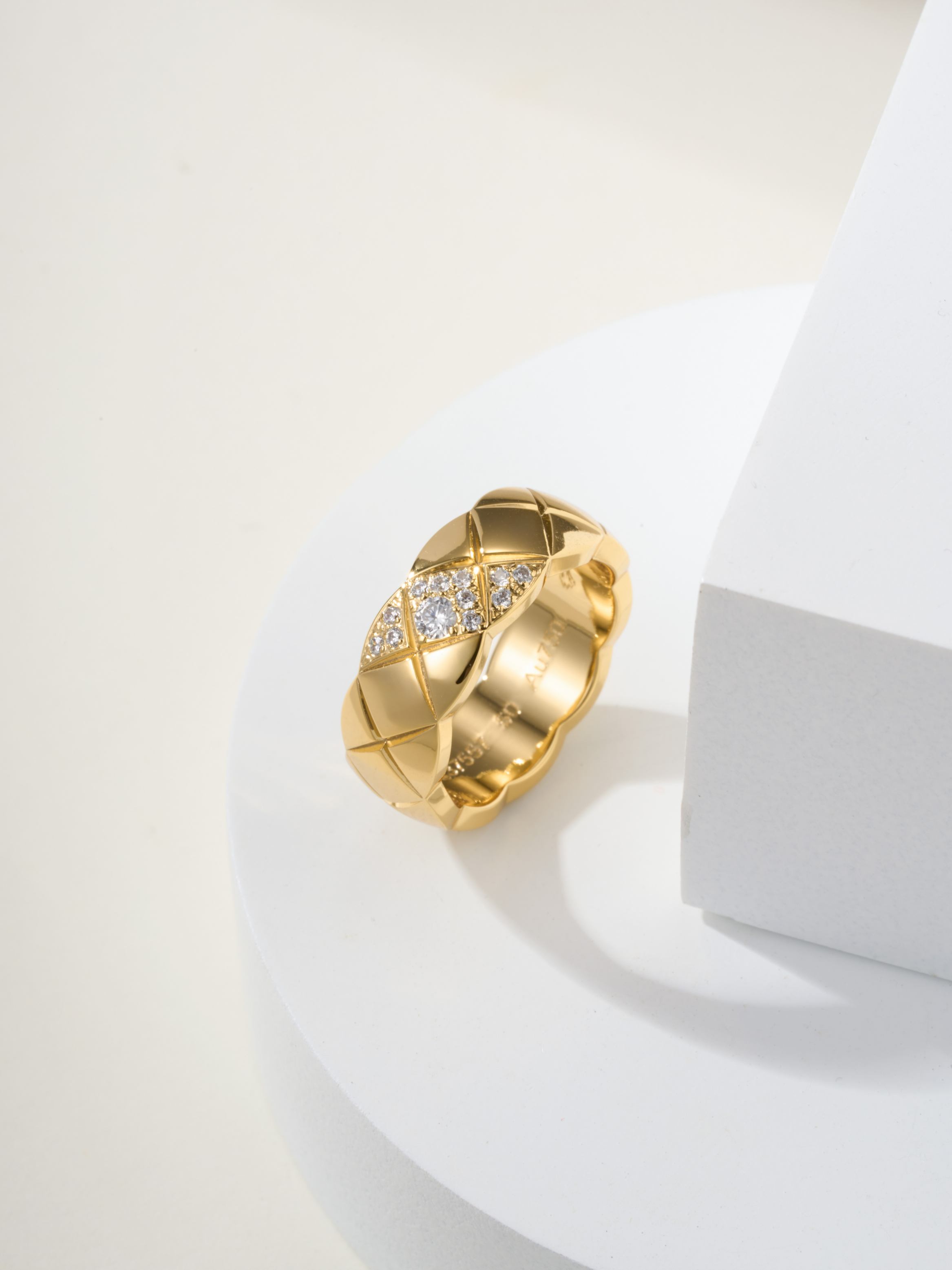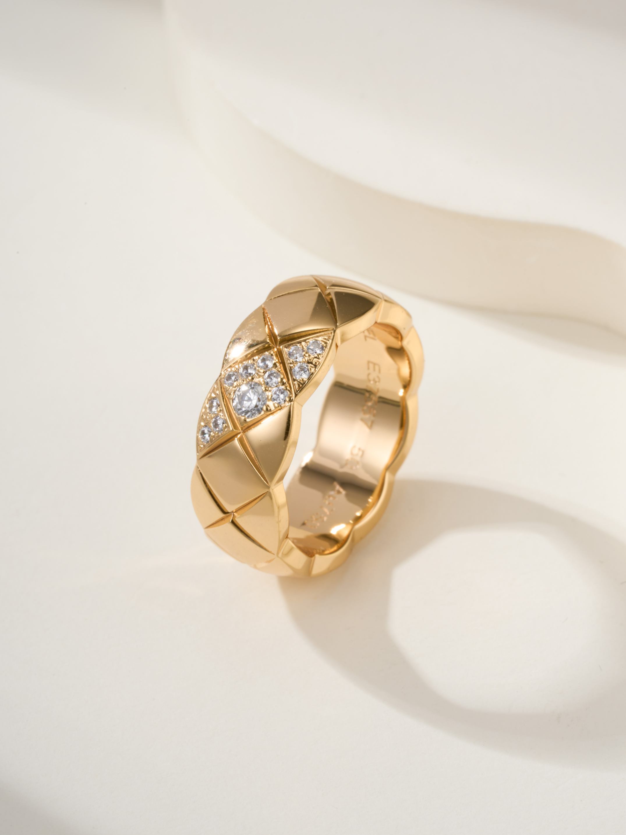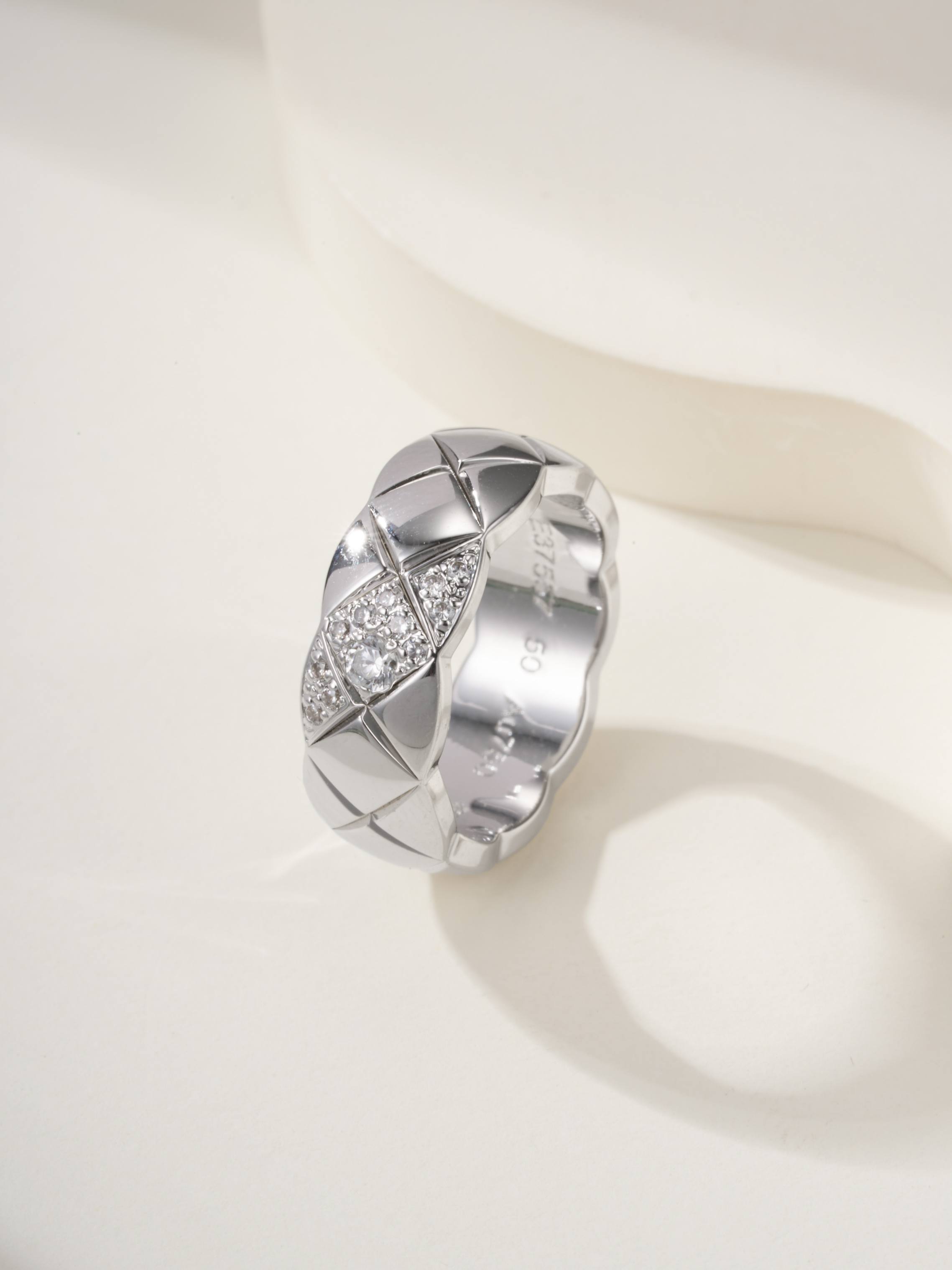 Coco standard oblique handmade diamond inlaid diamond grid ring (CNC process)