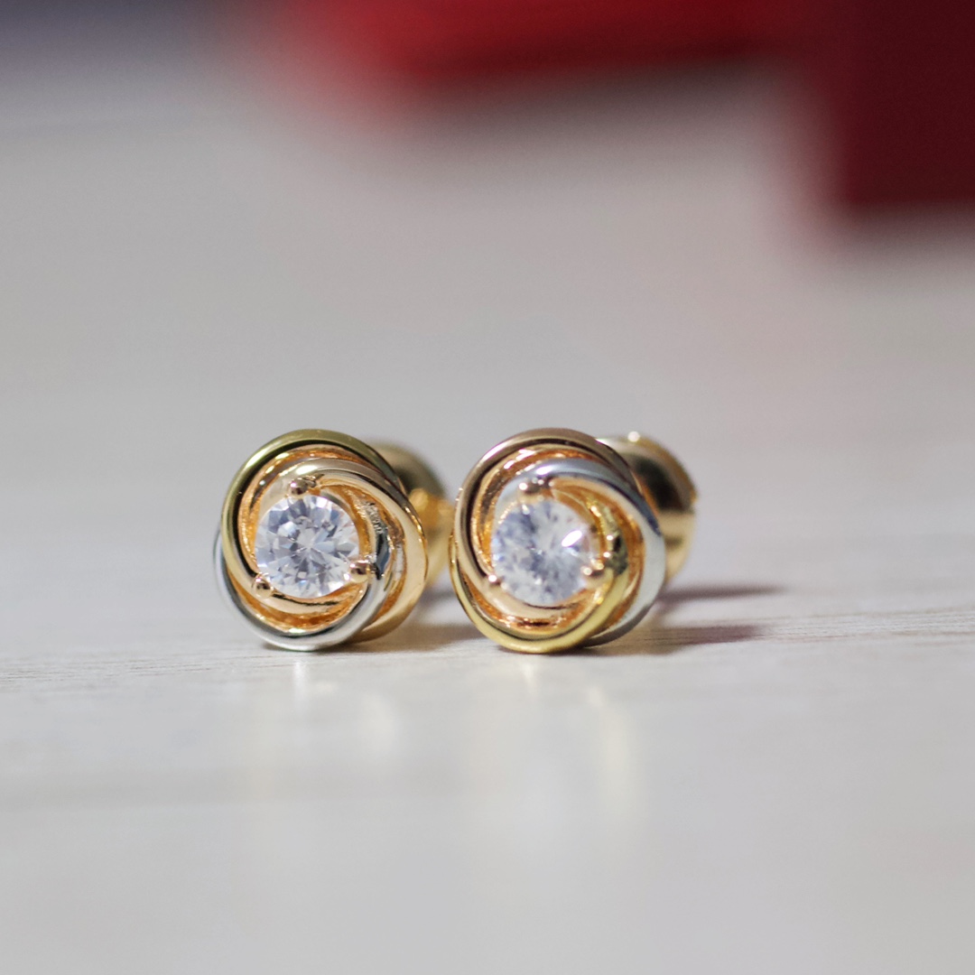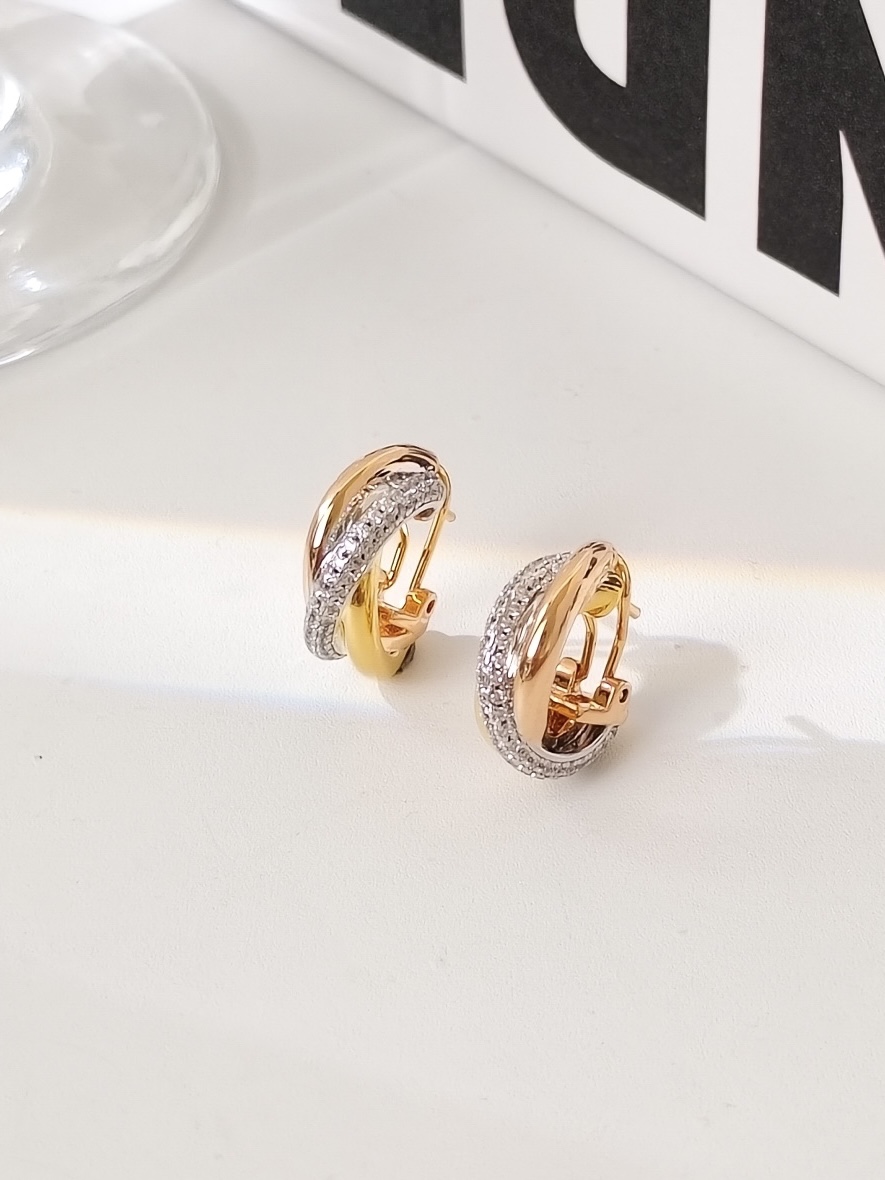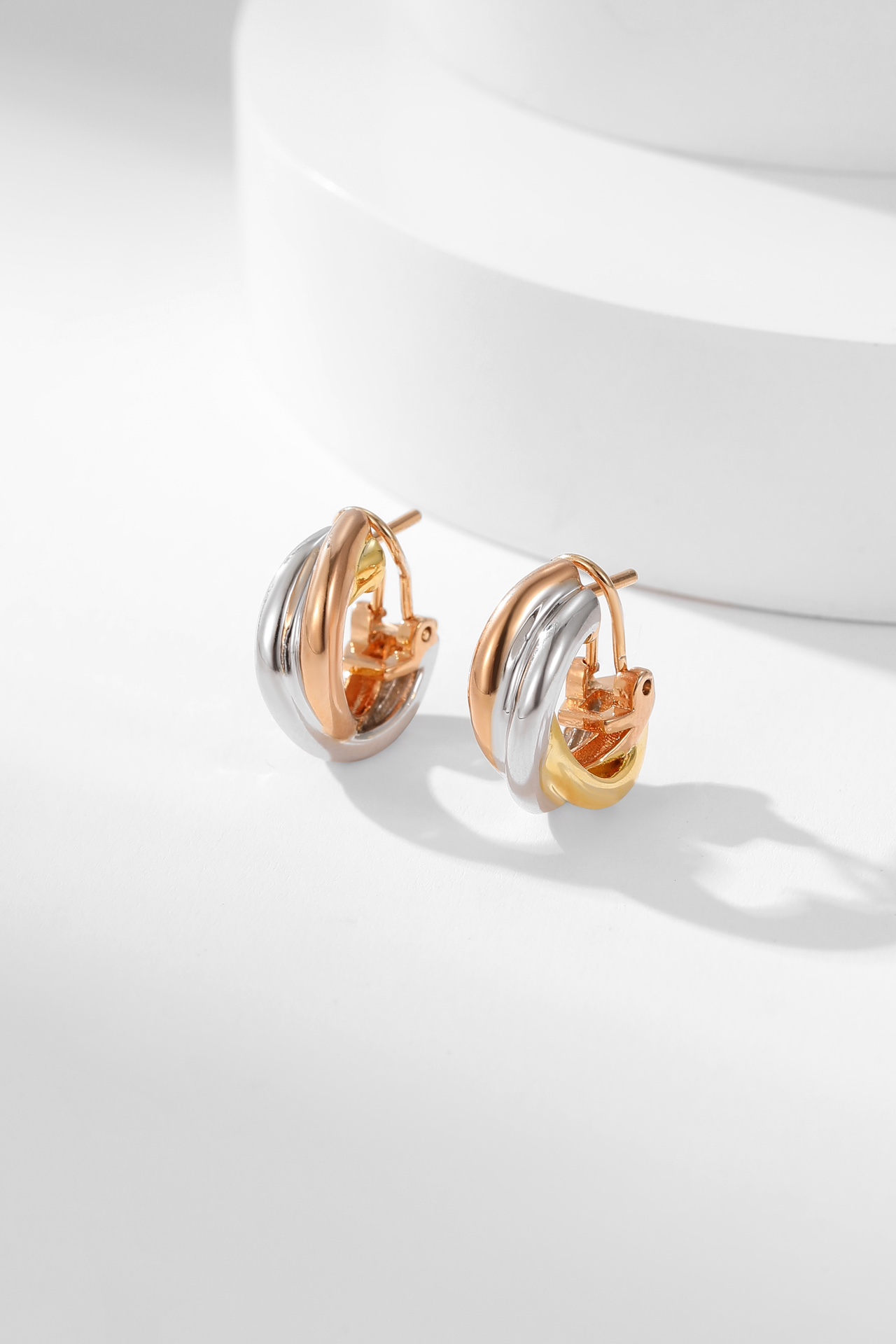 Trinity tricolor ring earrings without diamonds (ear needle style)