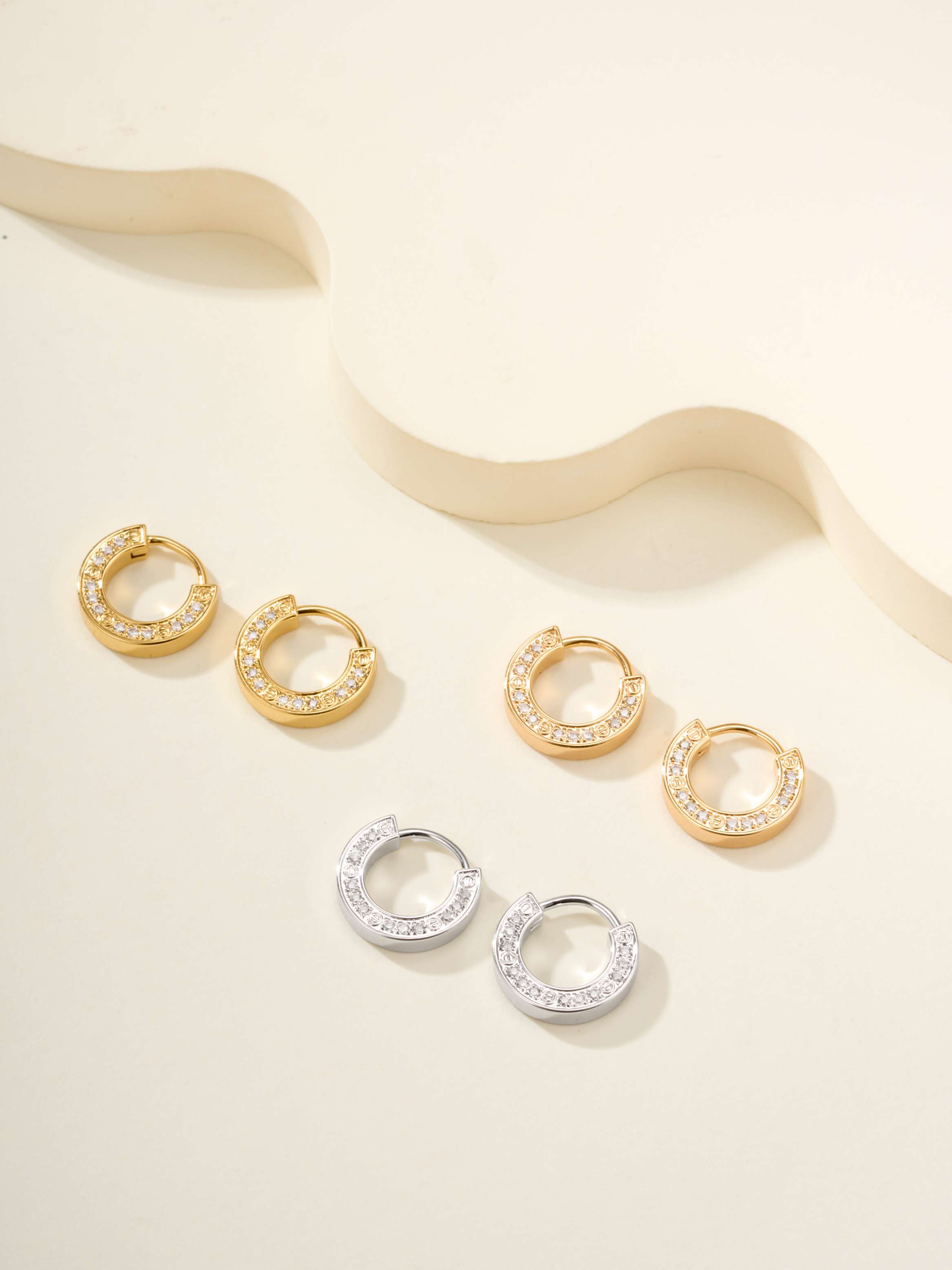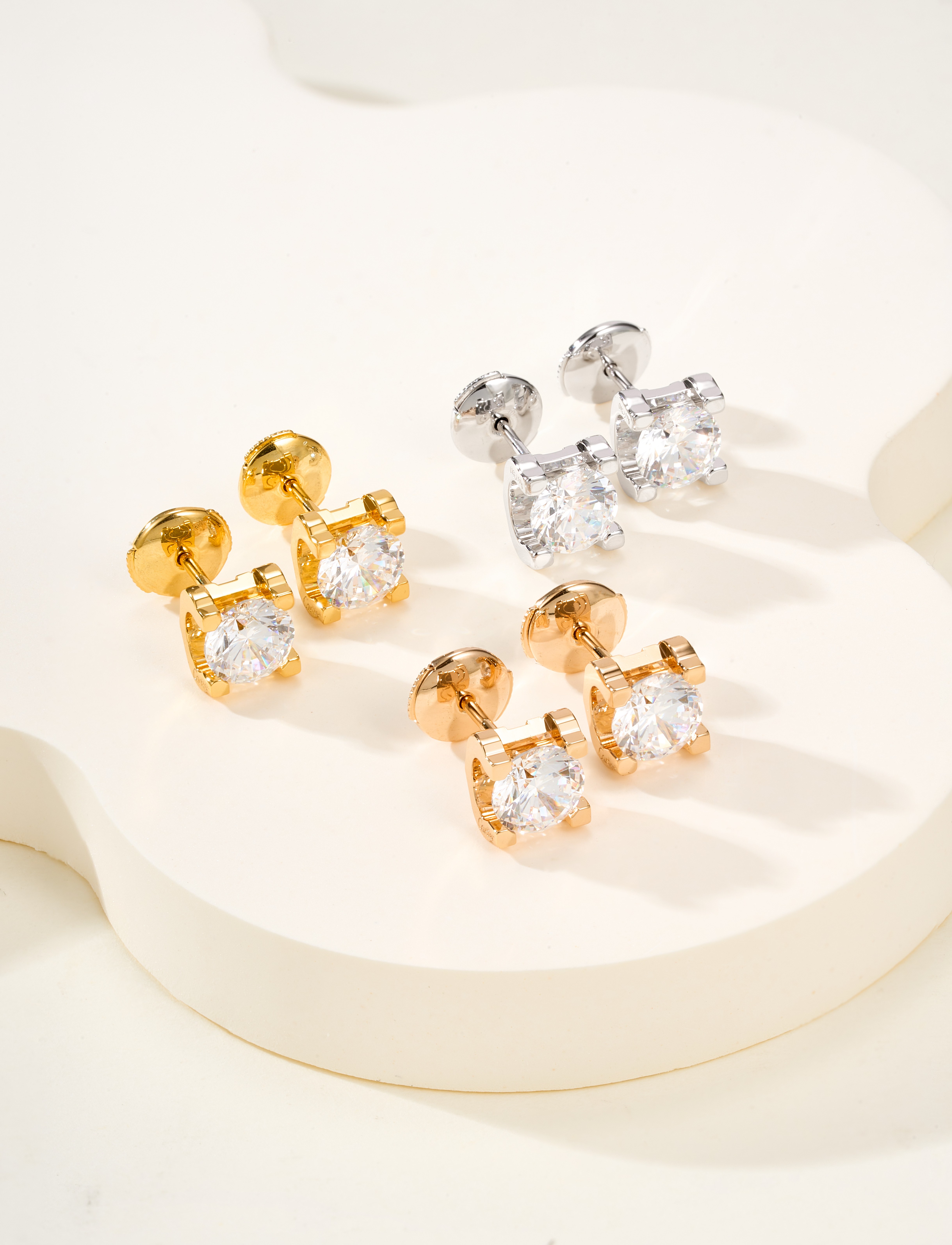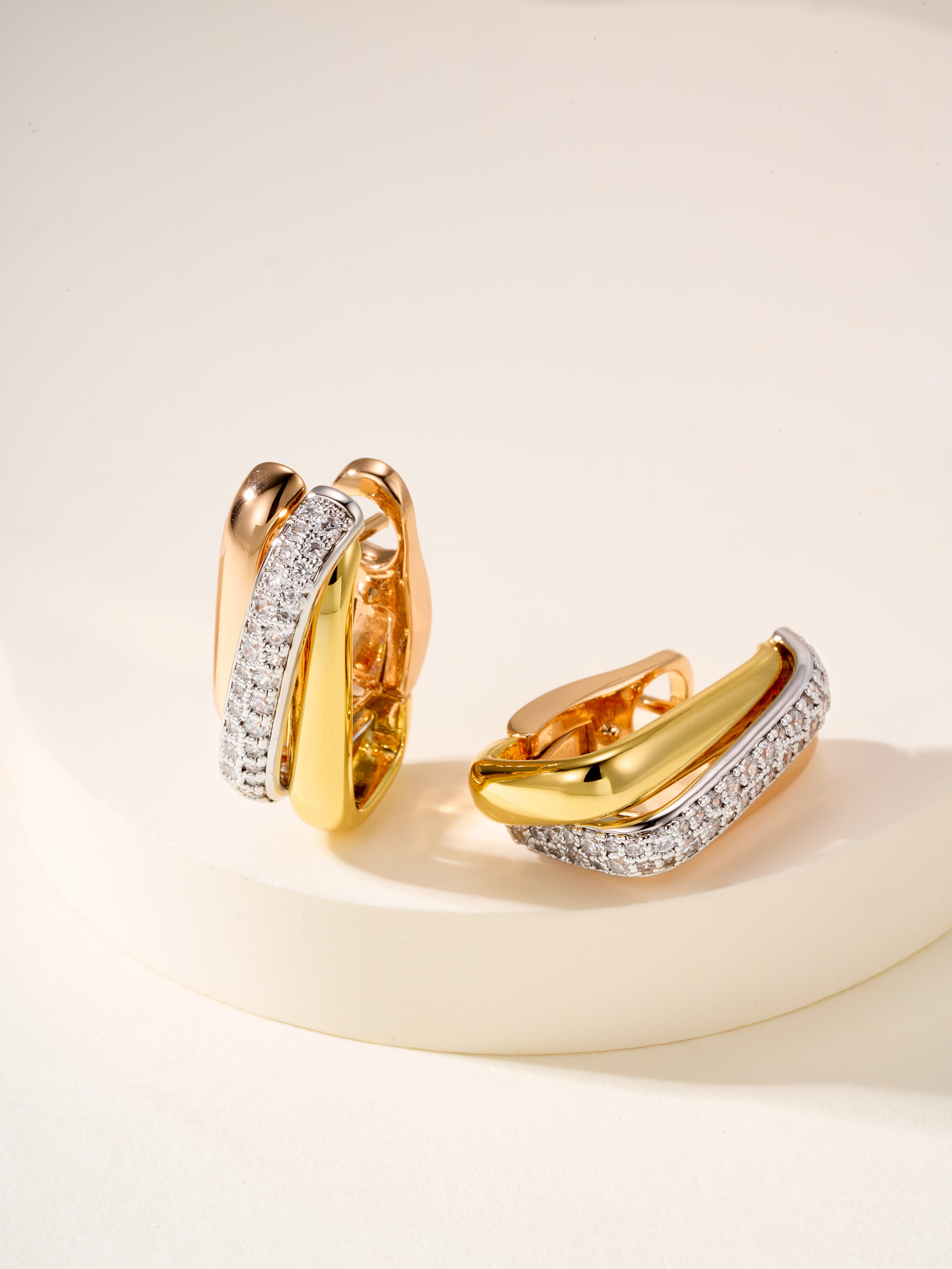 Trinity tricolor ring earrings without diamonds (ear needle style)