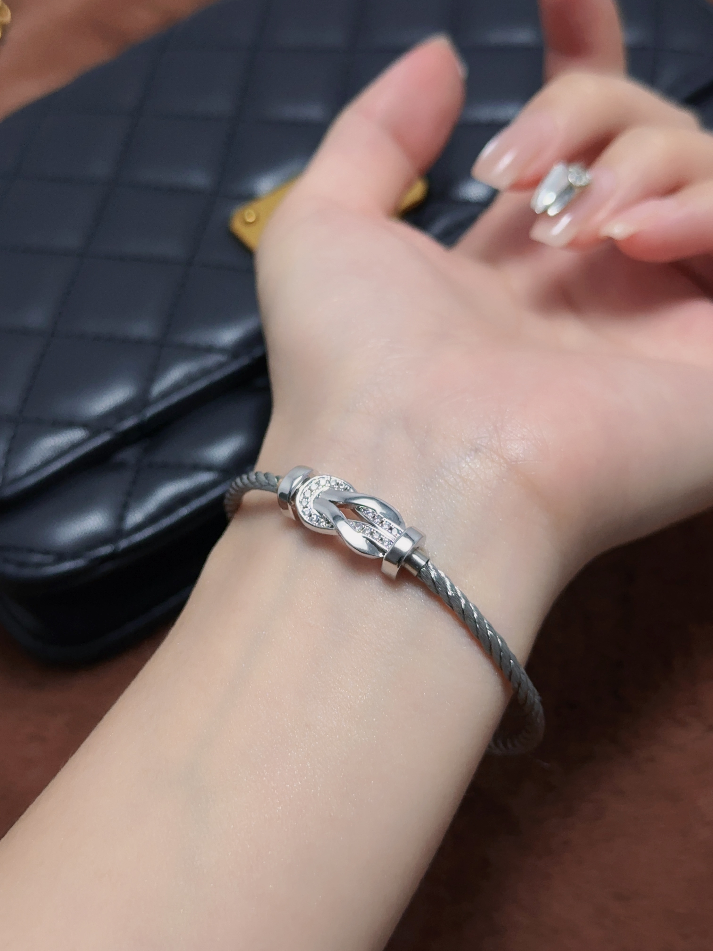 8-degree diamond twisted flower buckle bracelet (small size)