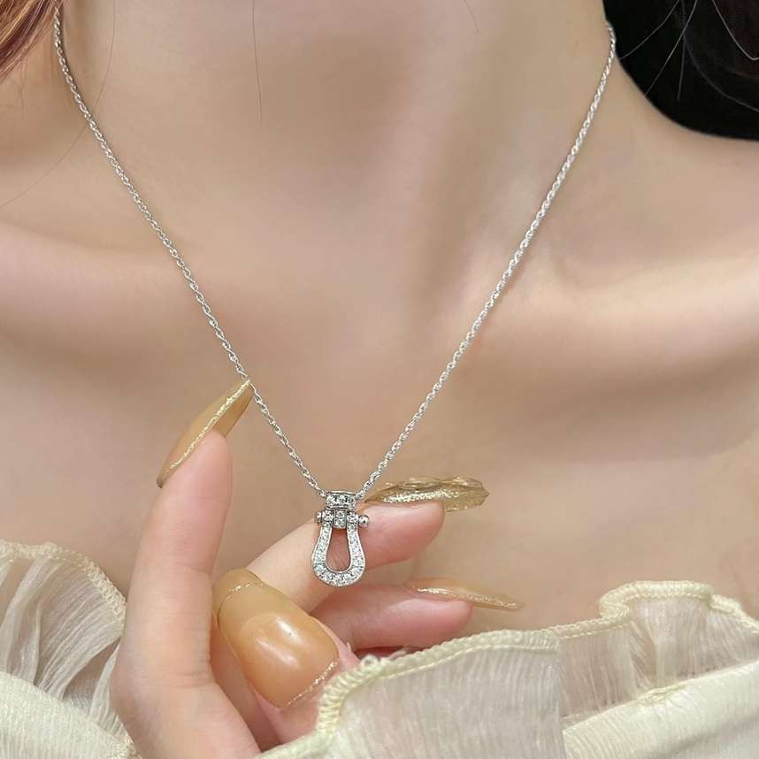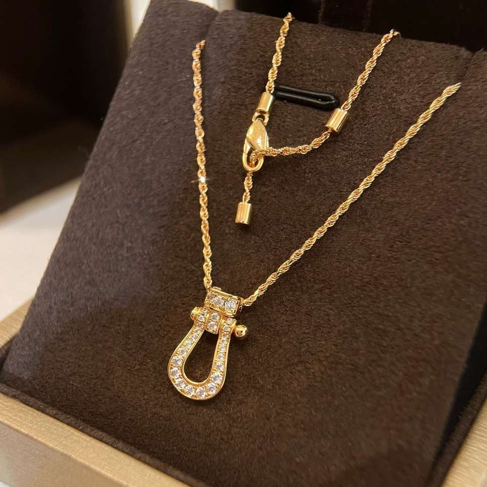 Force 10 degree medium twisted rope chain with diamond studded horseshoe buckle necklace (925 silver chain)