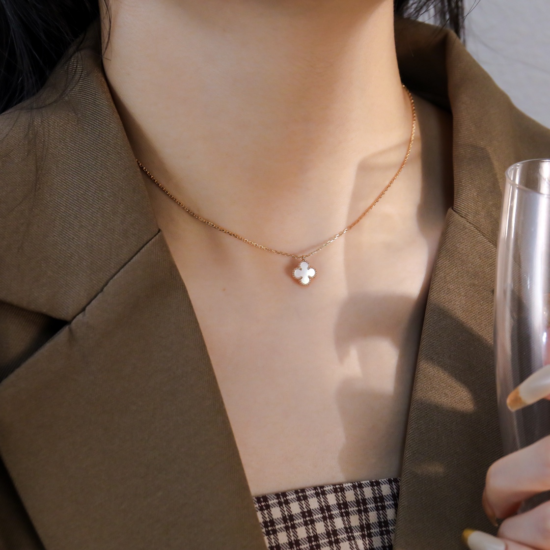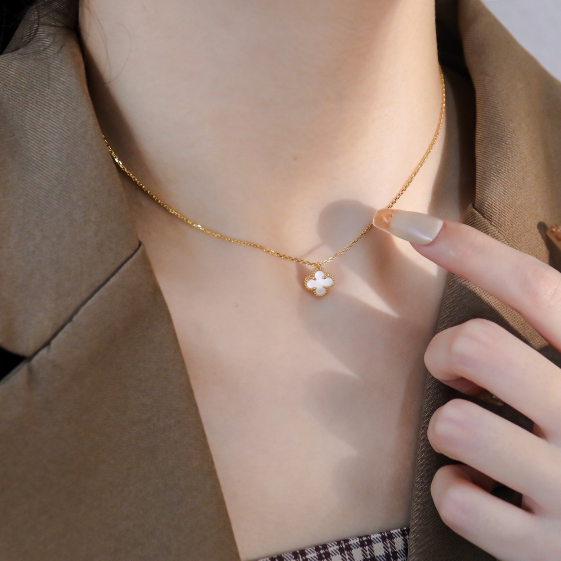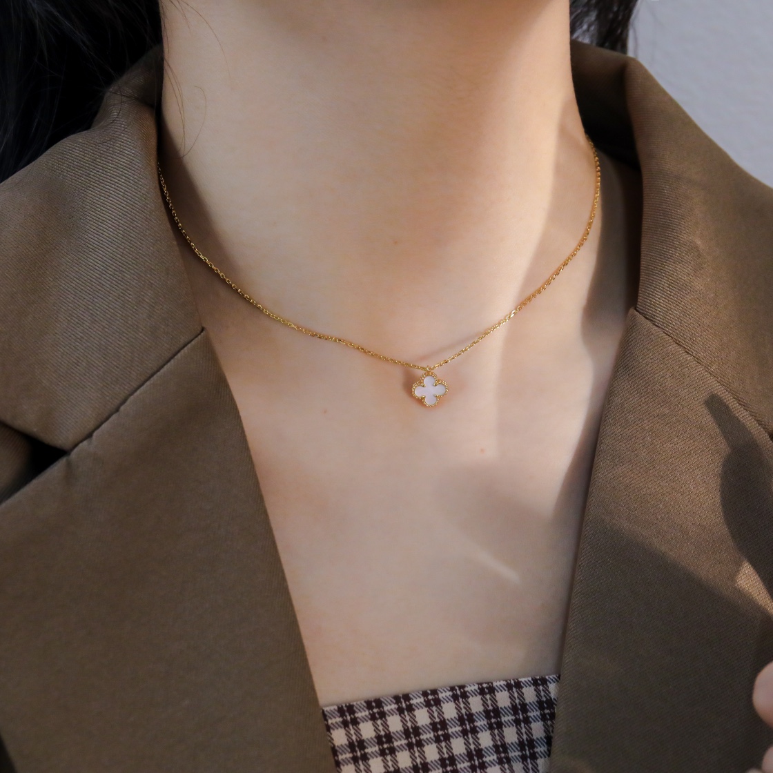 Mini Four Leaf Clover White Shell Single Flower Necklace