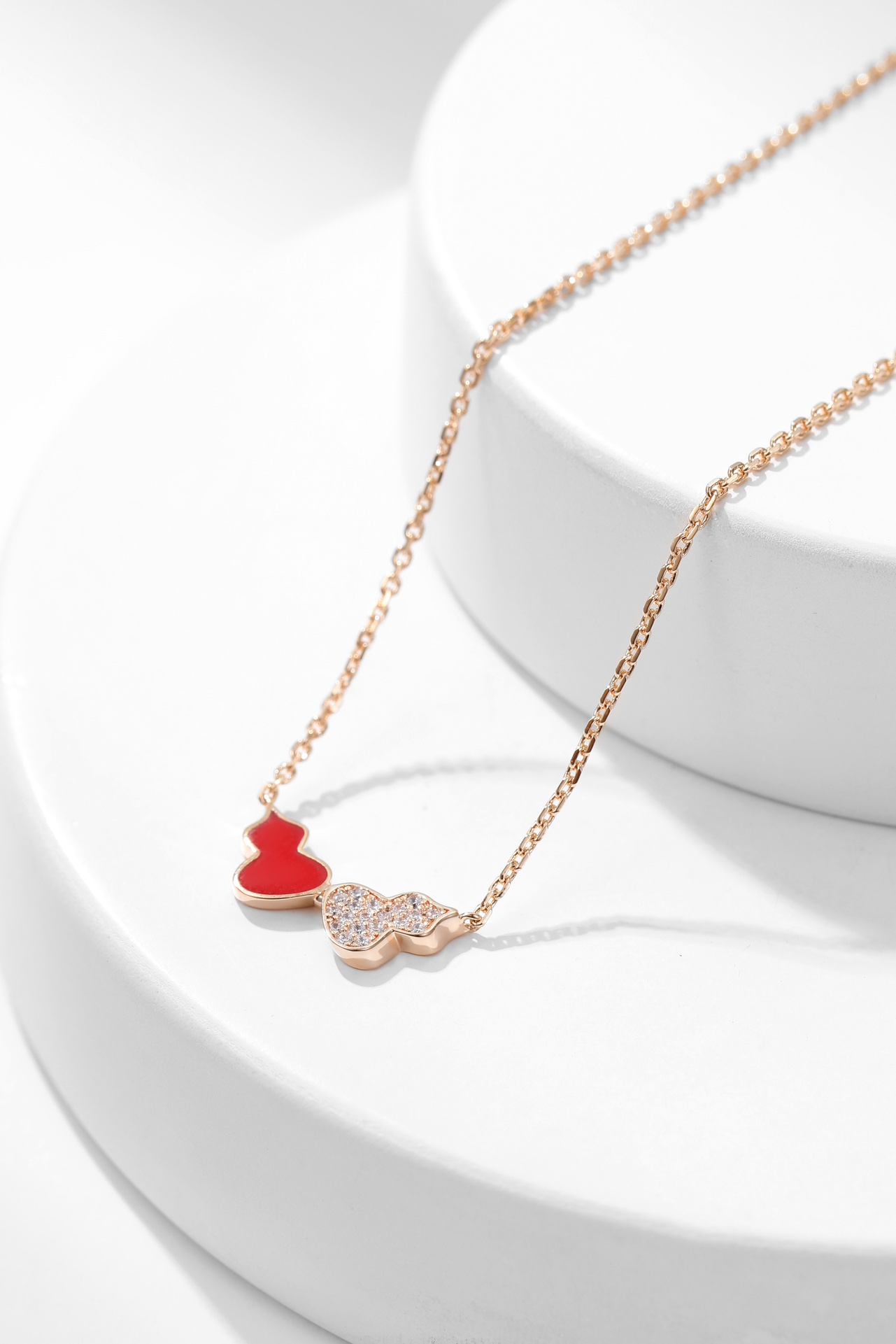 QE China Red Single Gourd Diamond Set Necklace