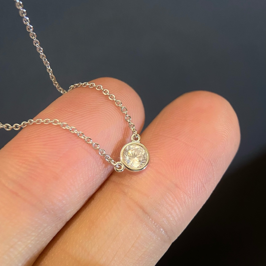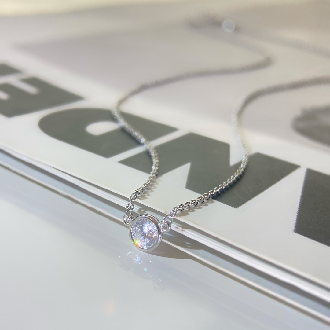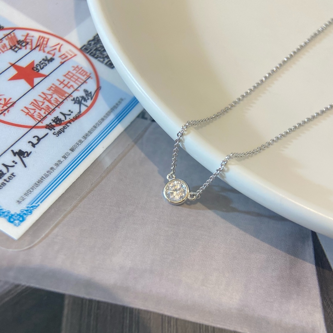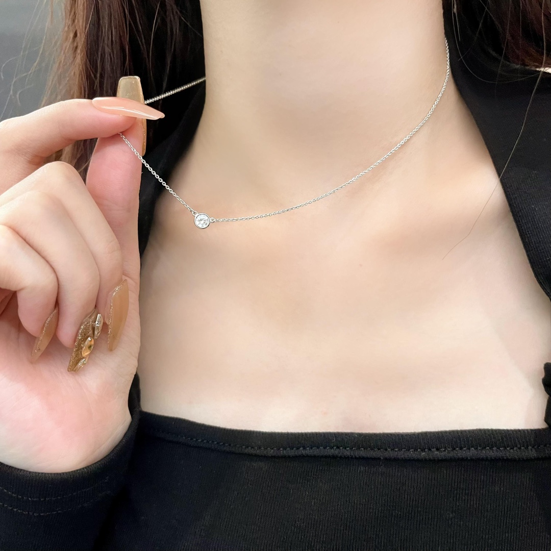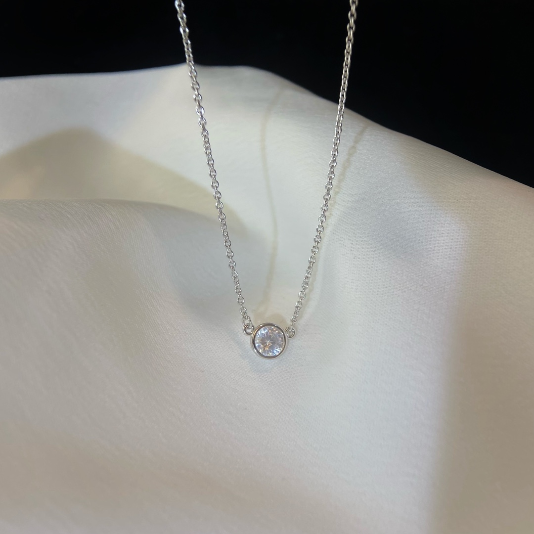 T Bubble 925 Silver Plated Platinum 30 Cent Single Diamond Clavicle Necklace (925 Silver)