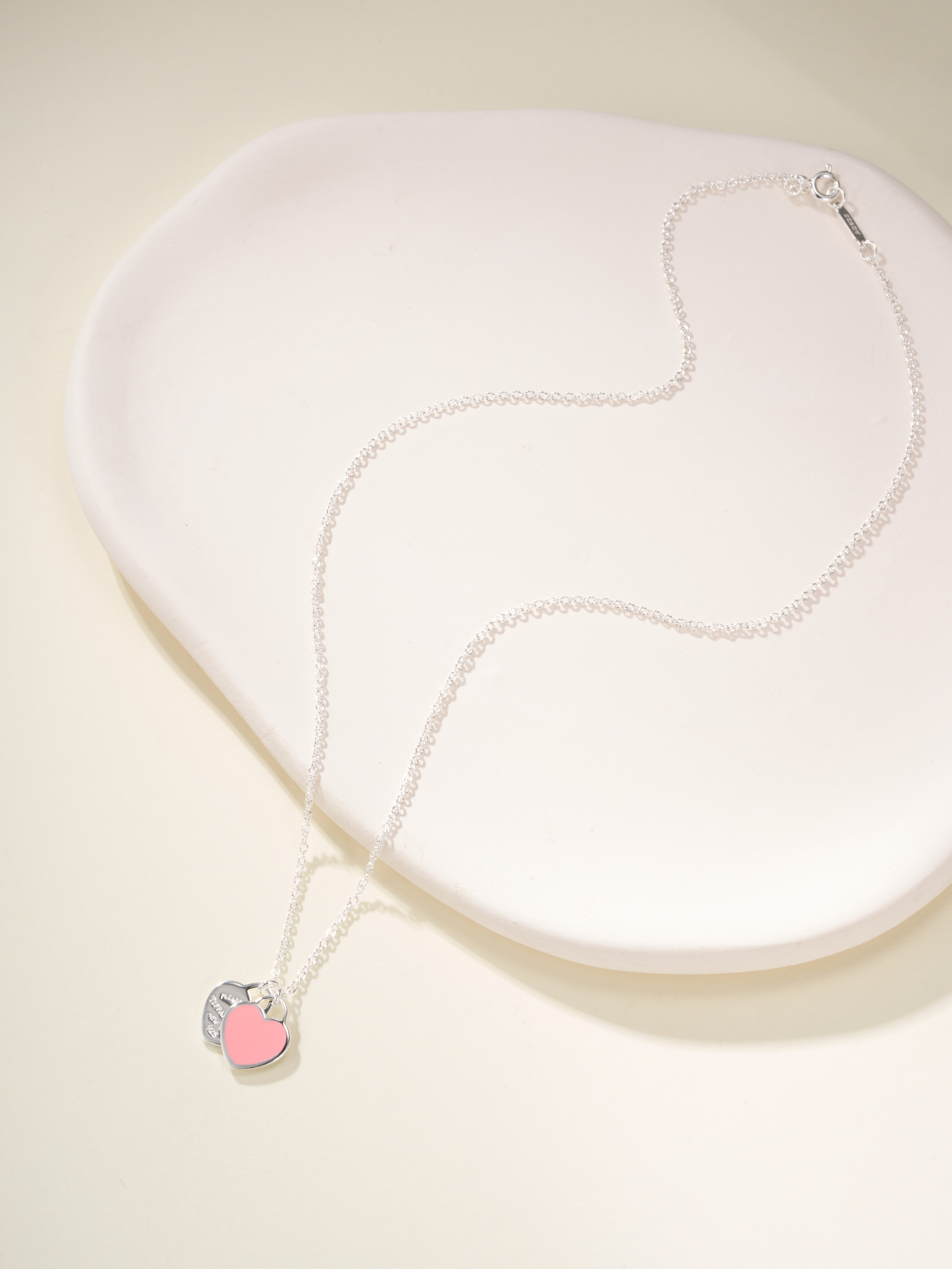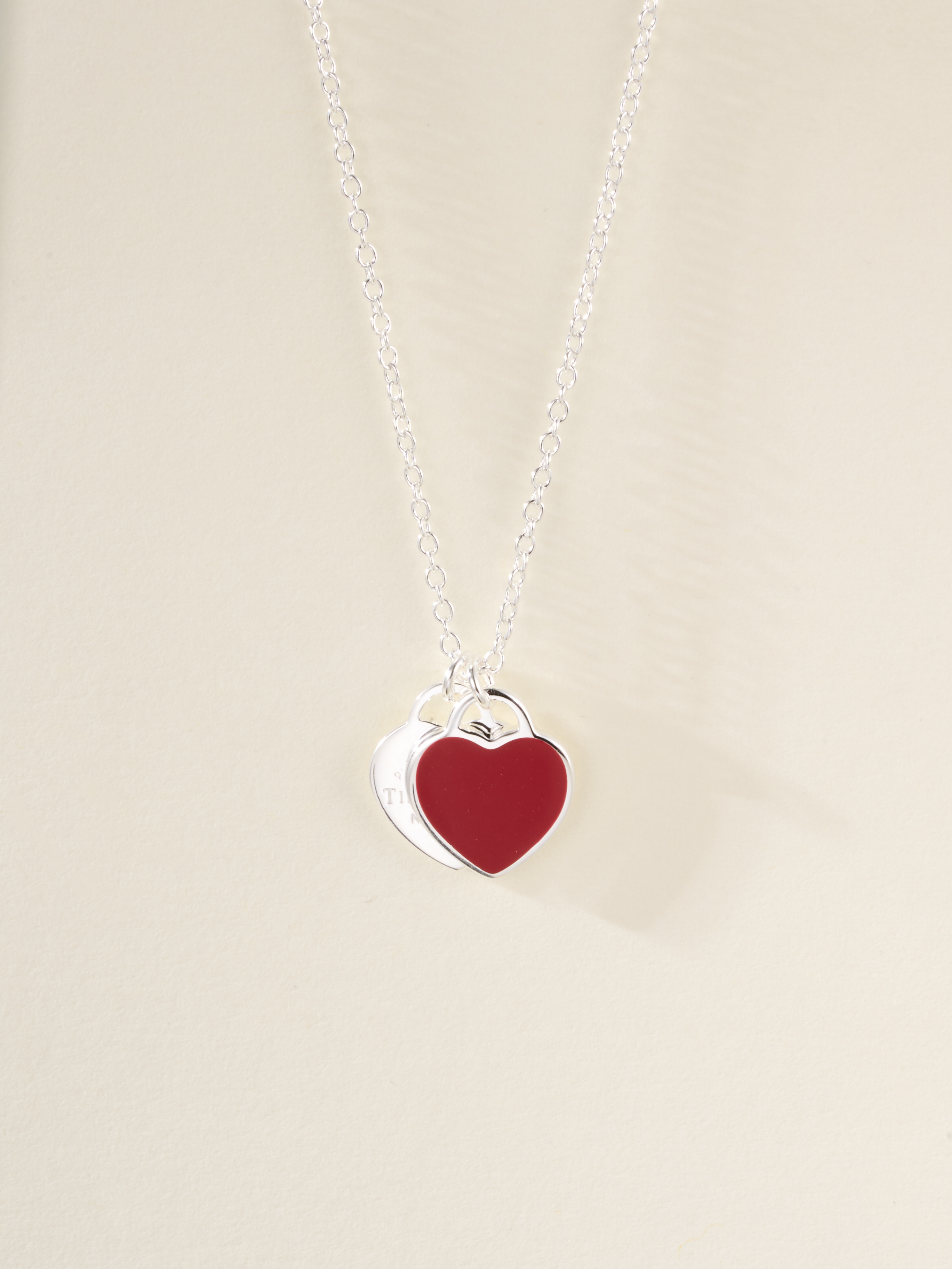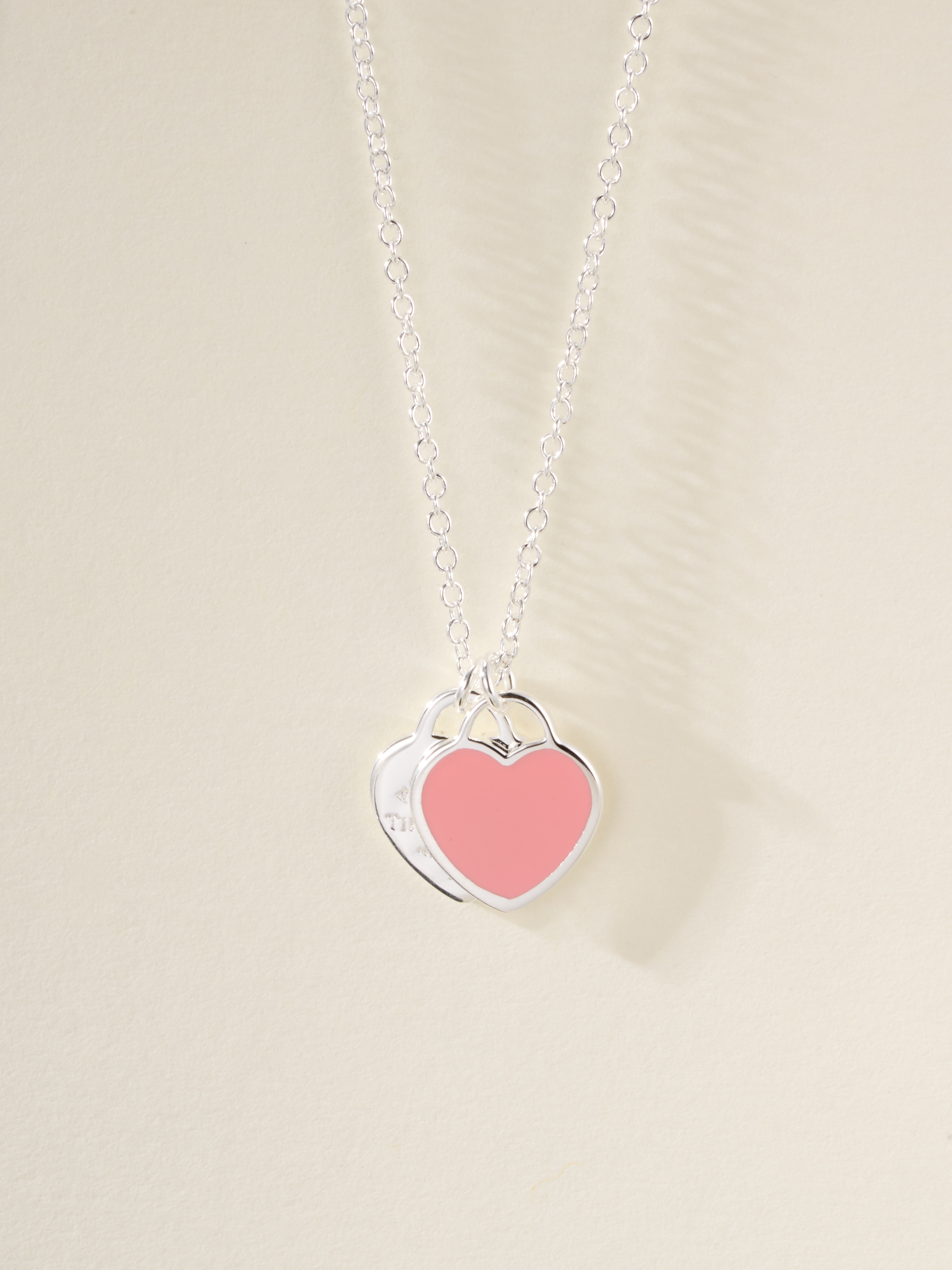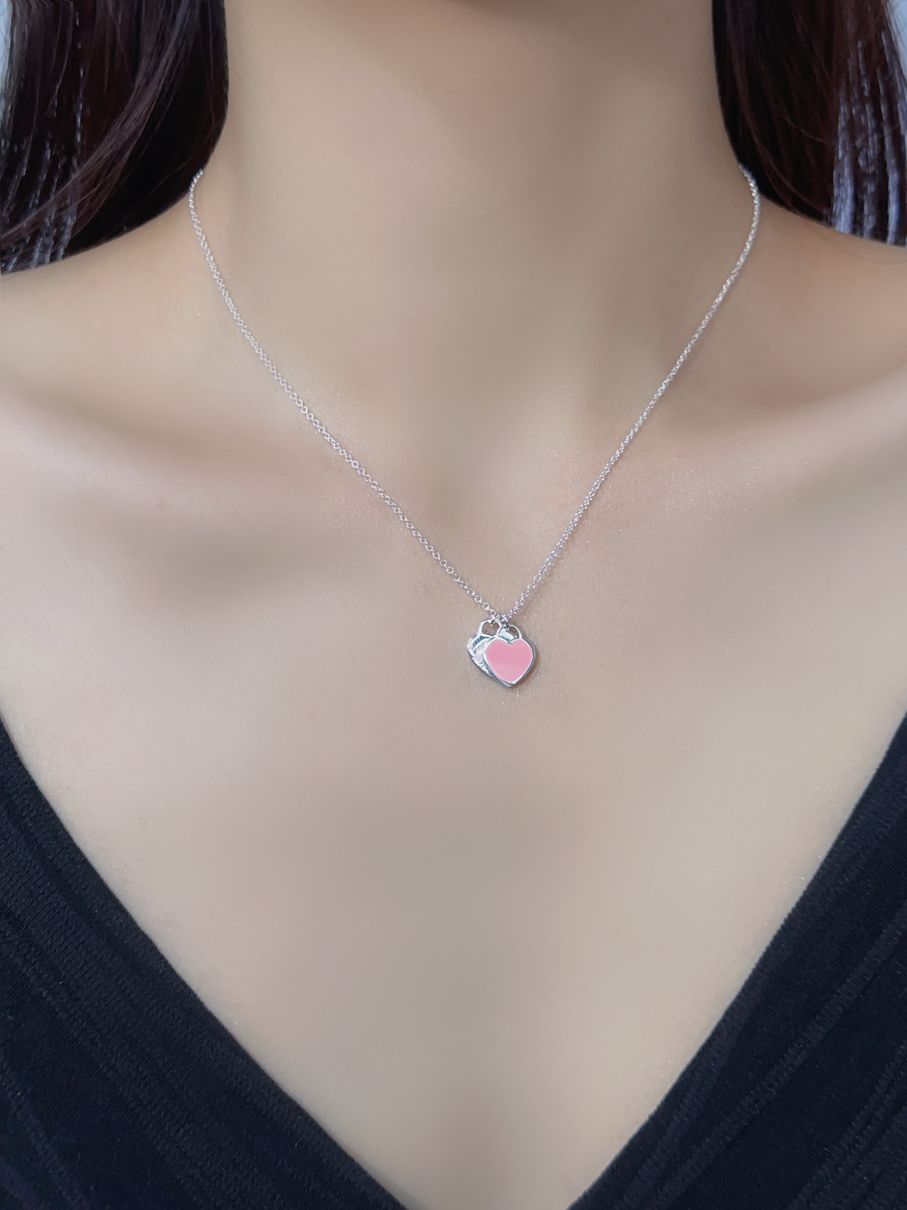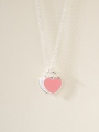 T Home Double Heart Tag Mini Enamel Necklace (925 Silver)
