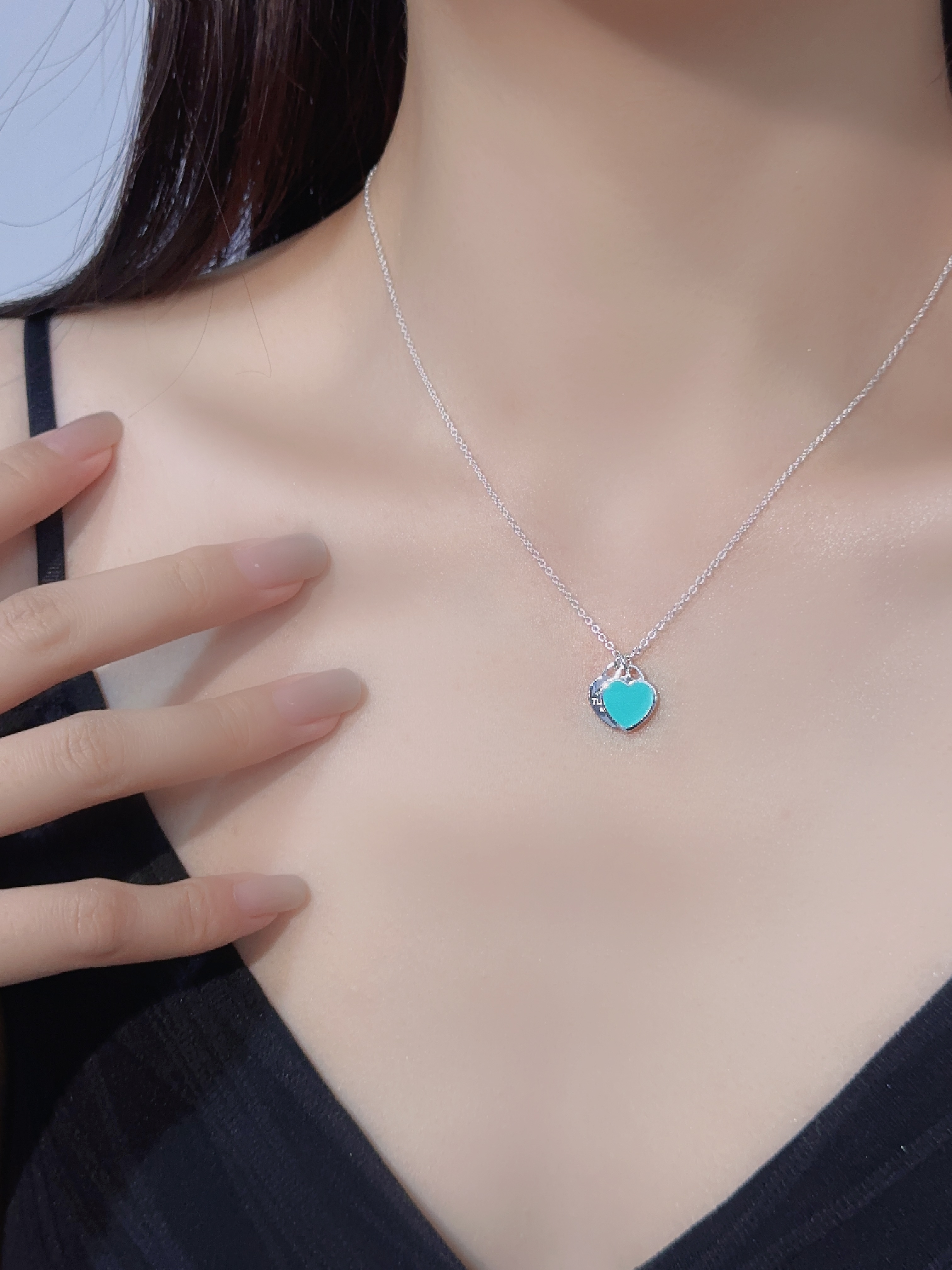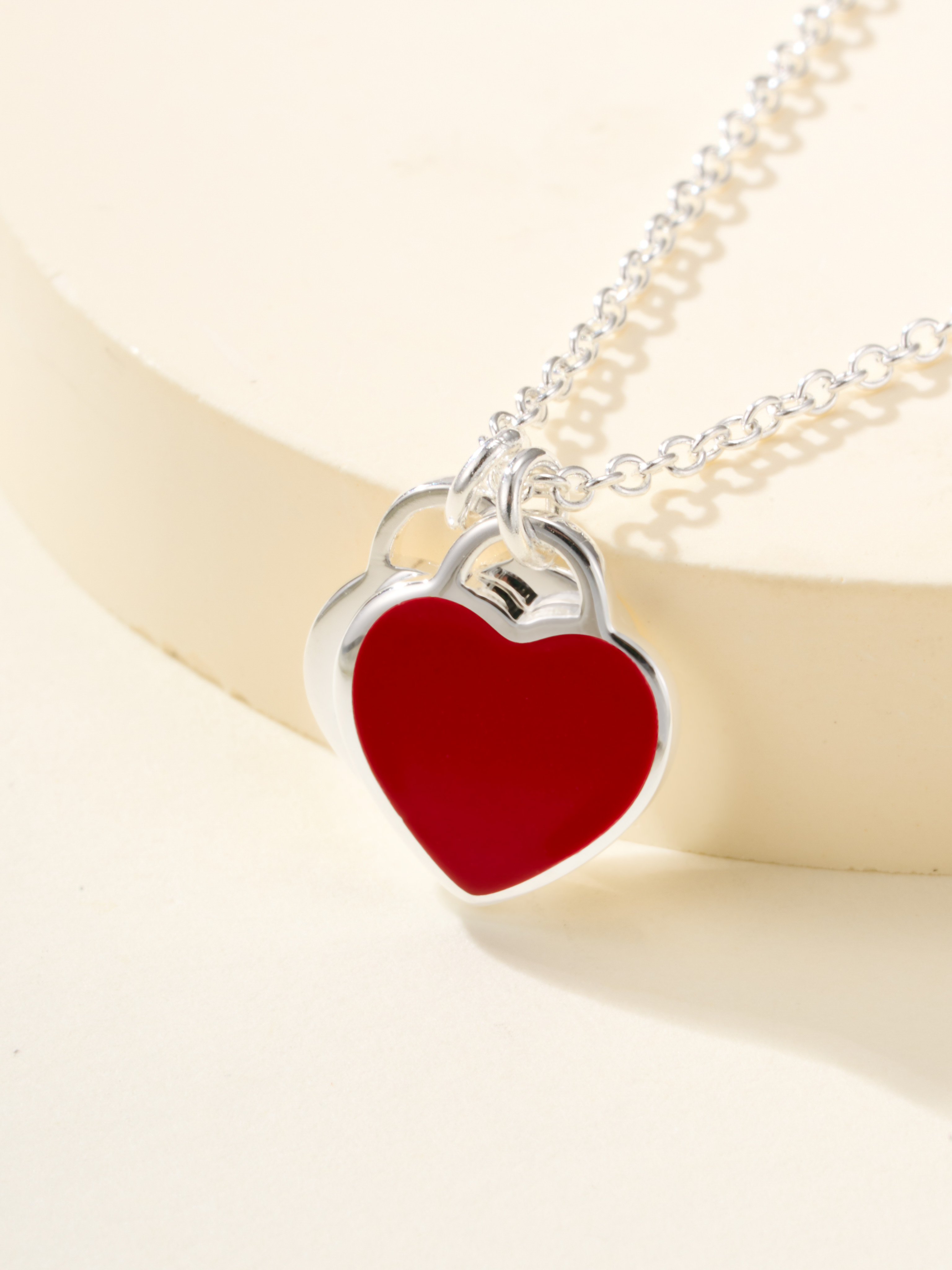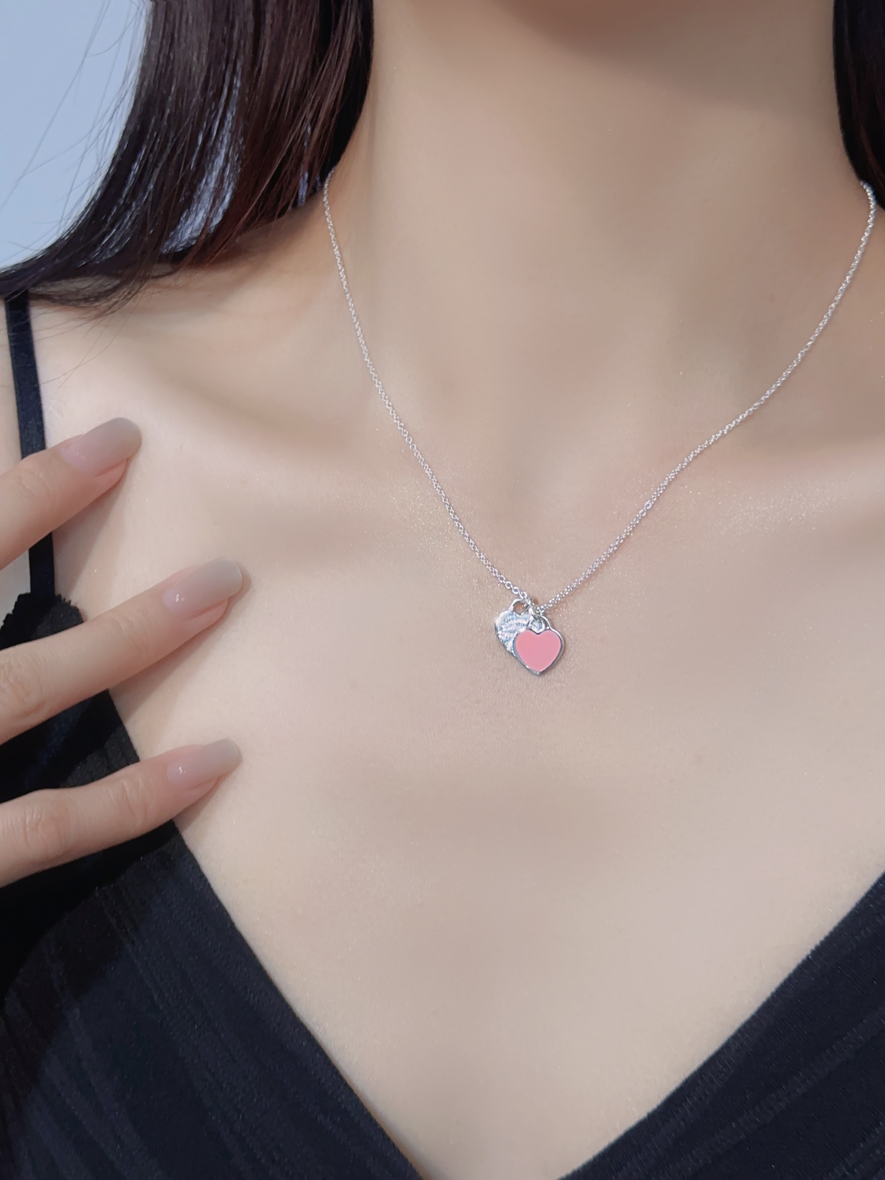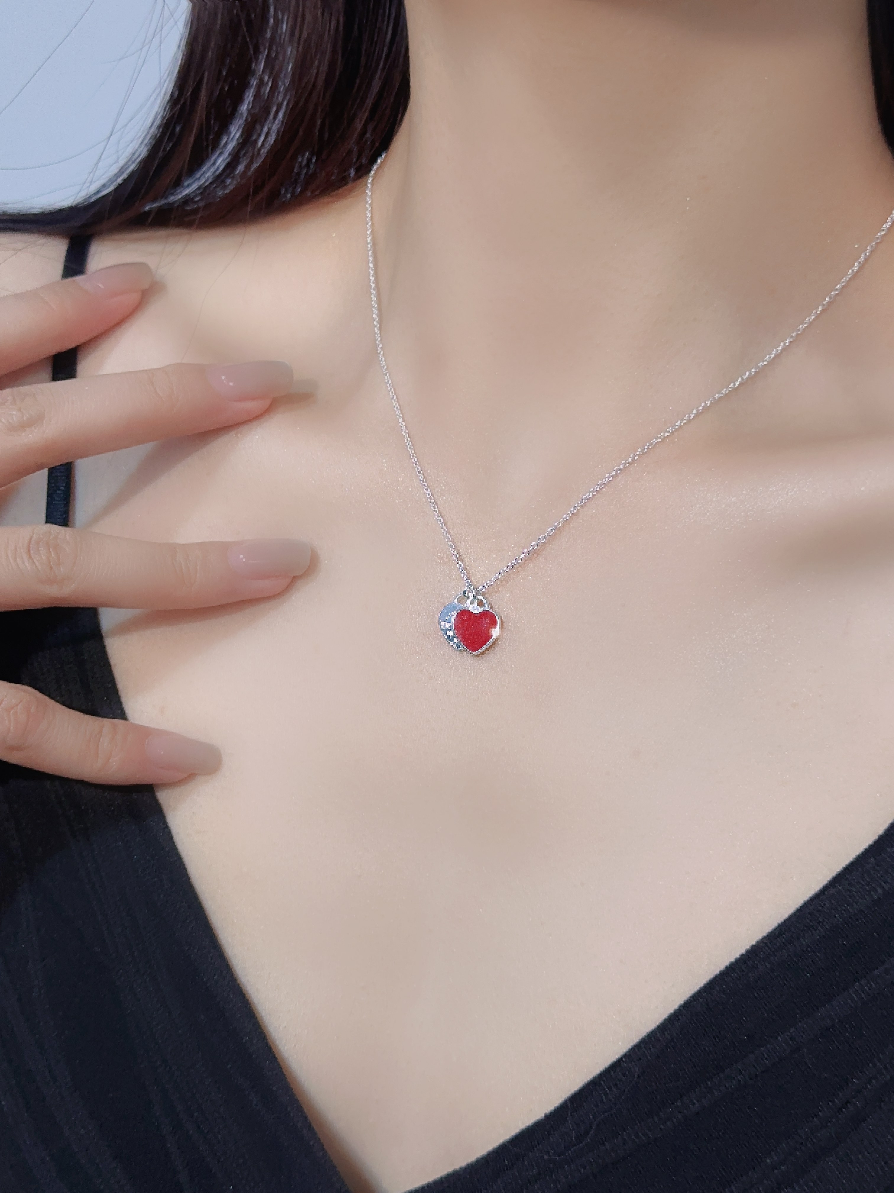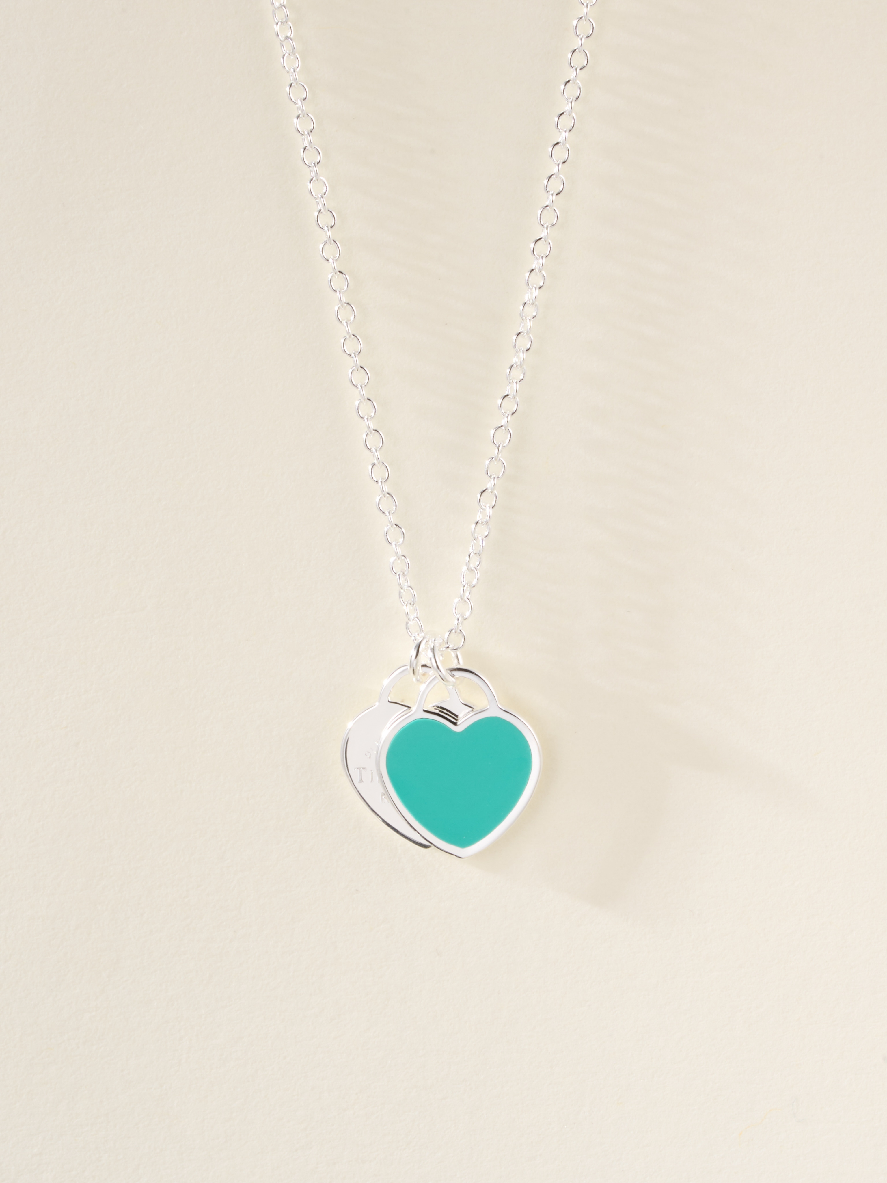 T Home Double Heart Tag Mini Enamel Necklace (925 Silver)