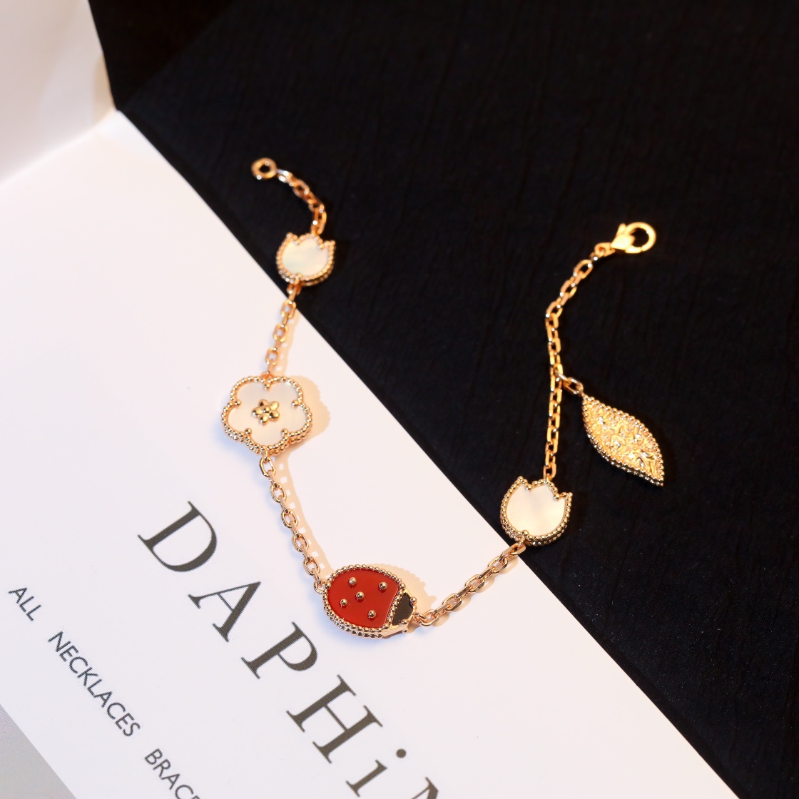 Lucky Spring Single Flower Leaping Ladybug Bracelet